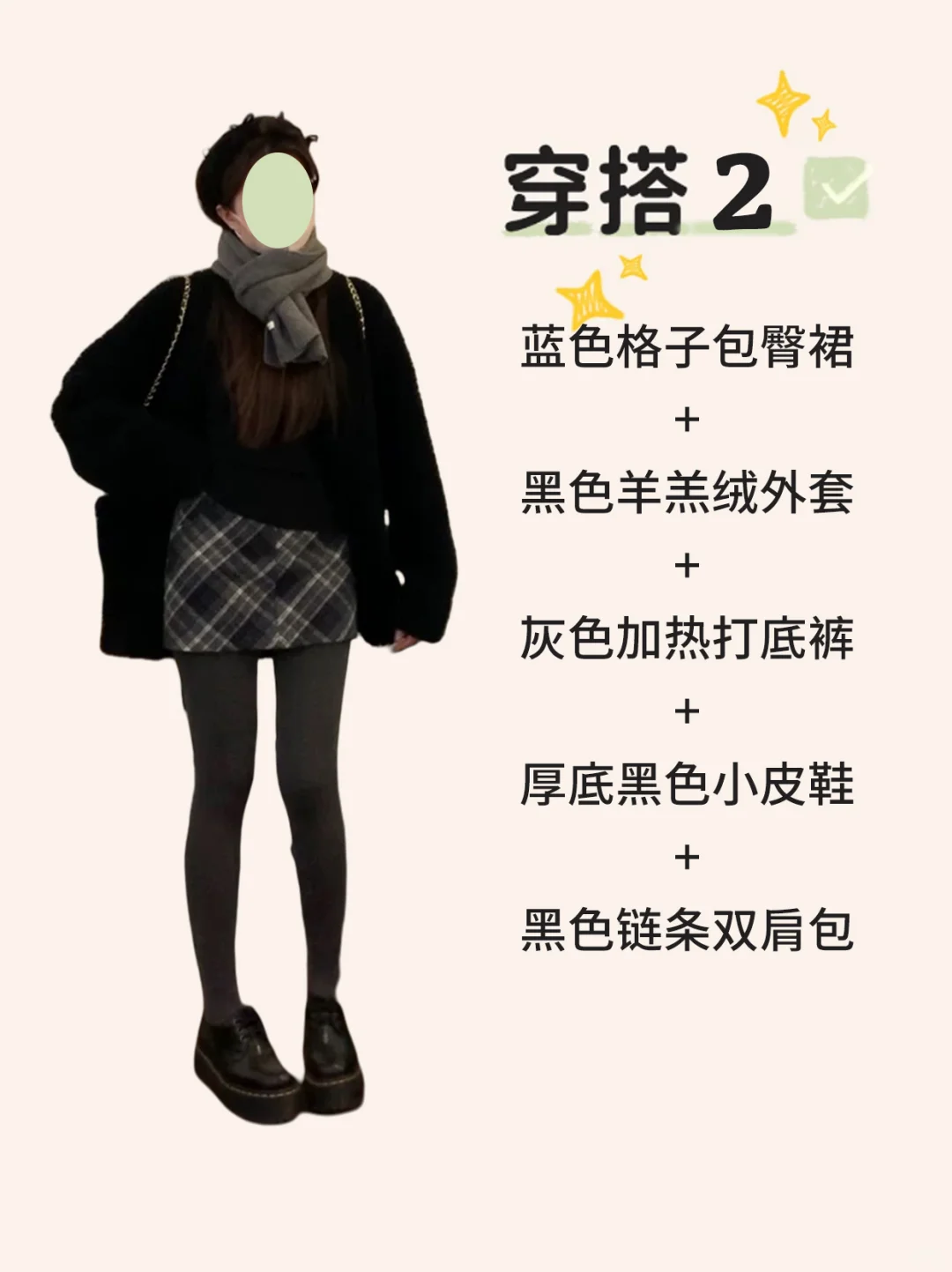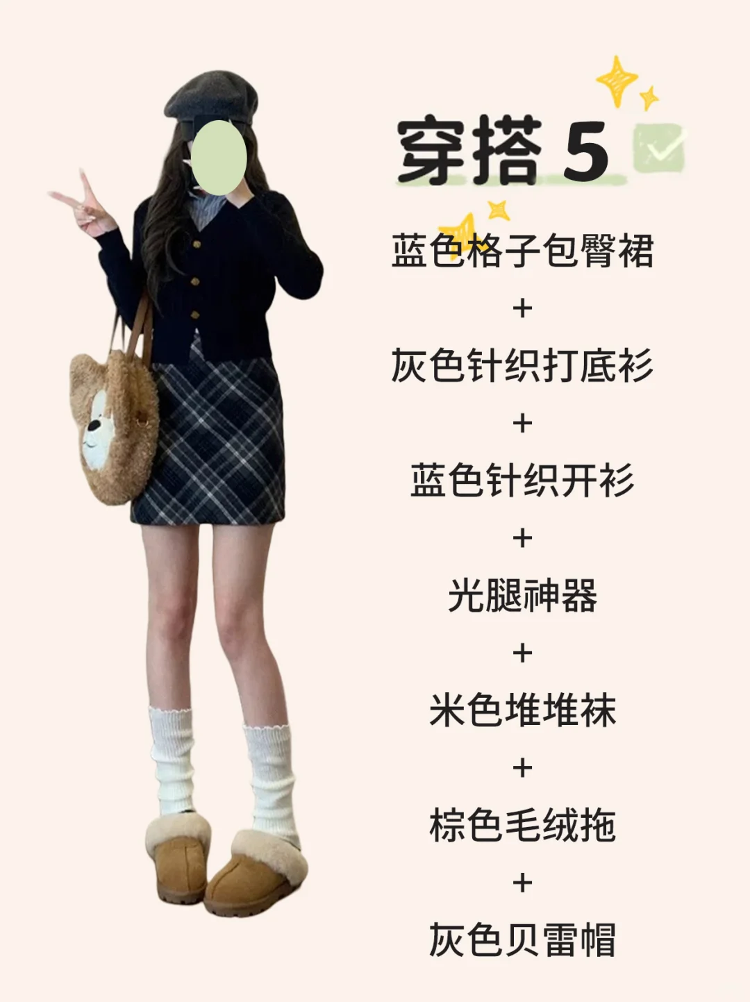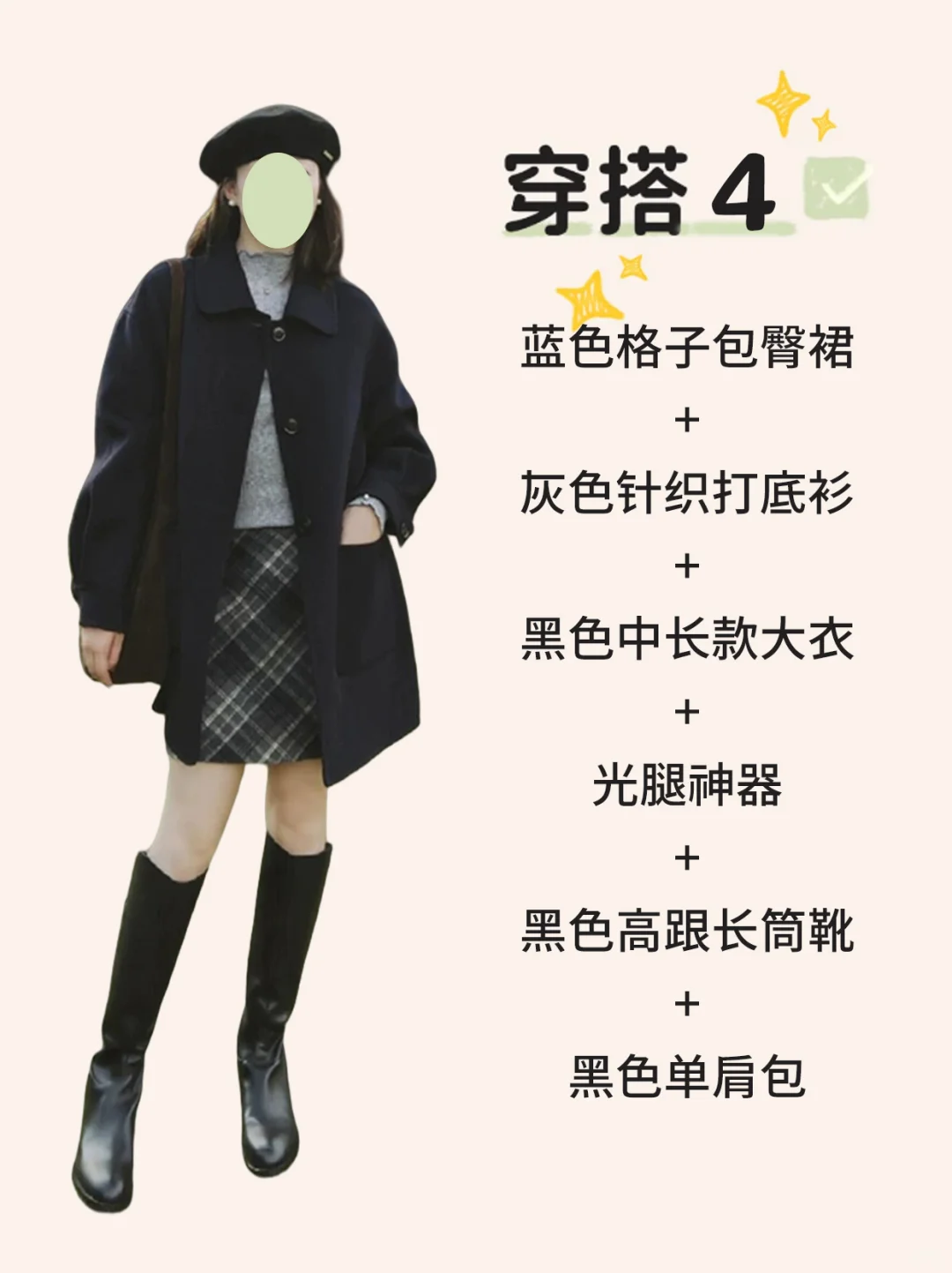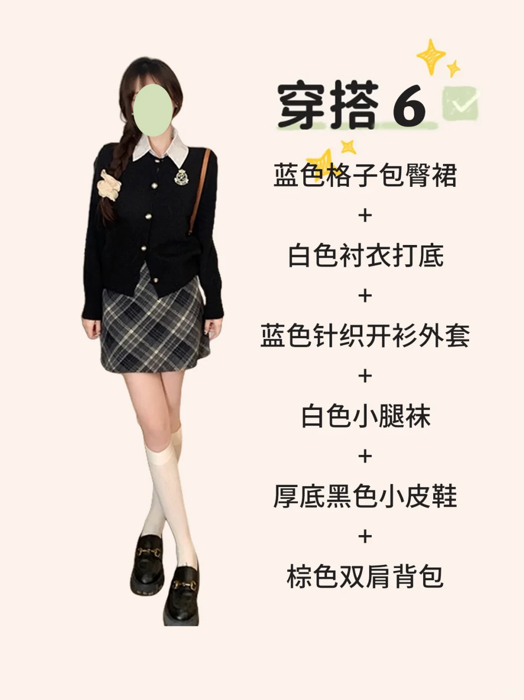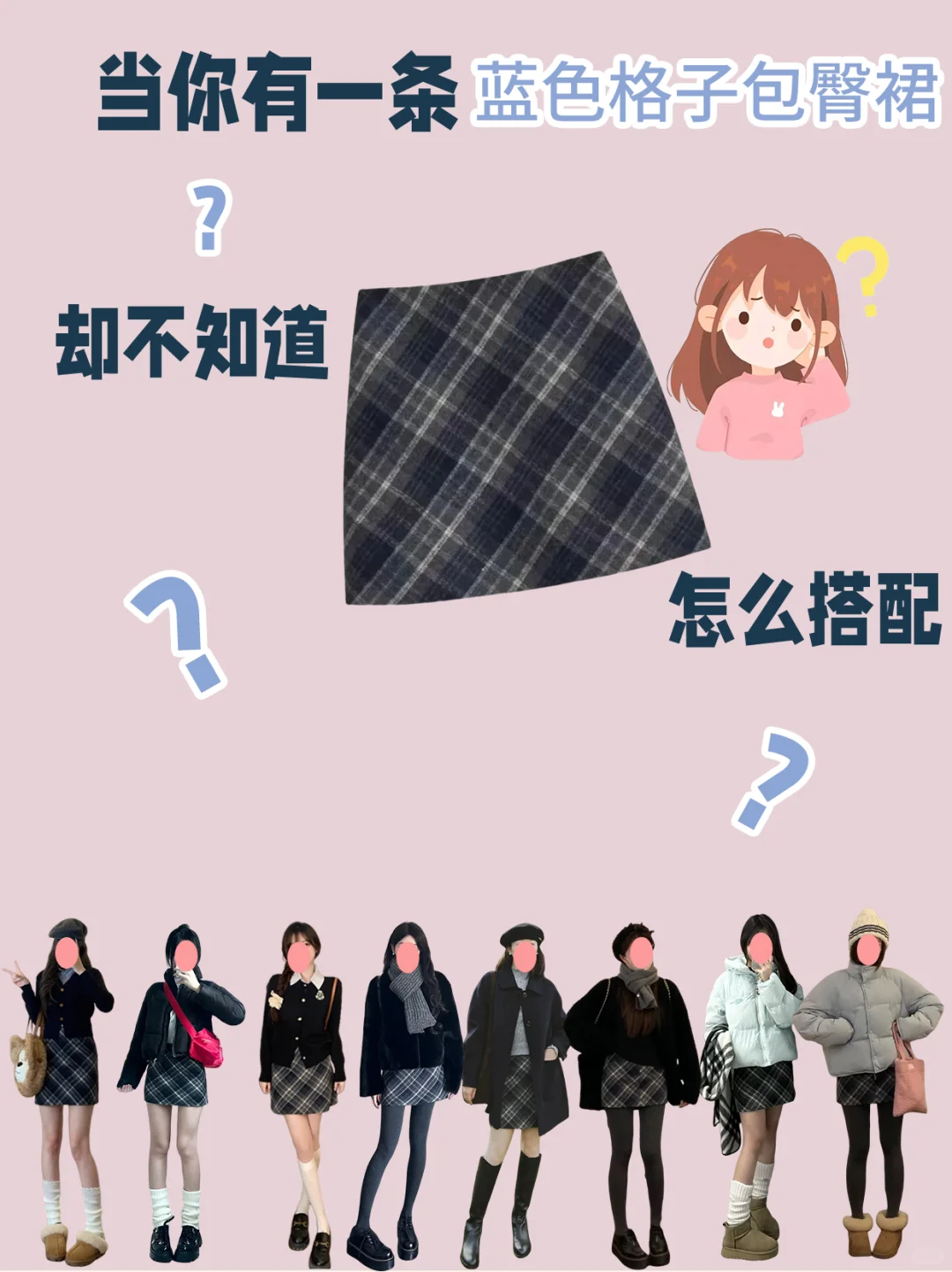🍁一衣多穿|短款蓝色格子裙秋冬百搭技巧