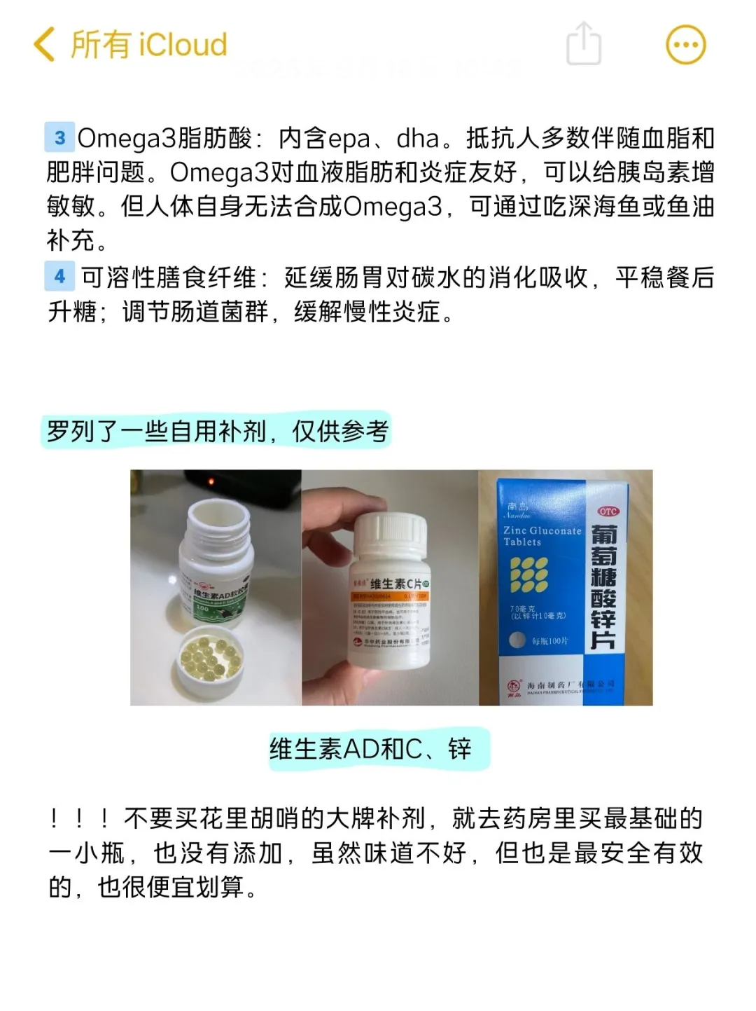所以为了不变成糖人我也是马上采取措施,这一套补剂我自用了半年后,体检查出抵抗指数无误。日均几块钱,没有什么负担,已经罗列在图里了。