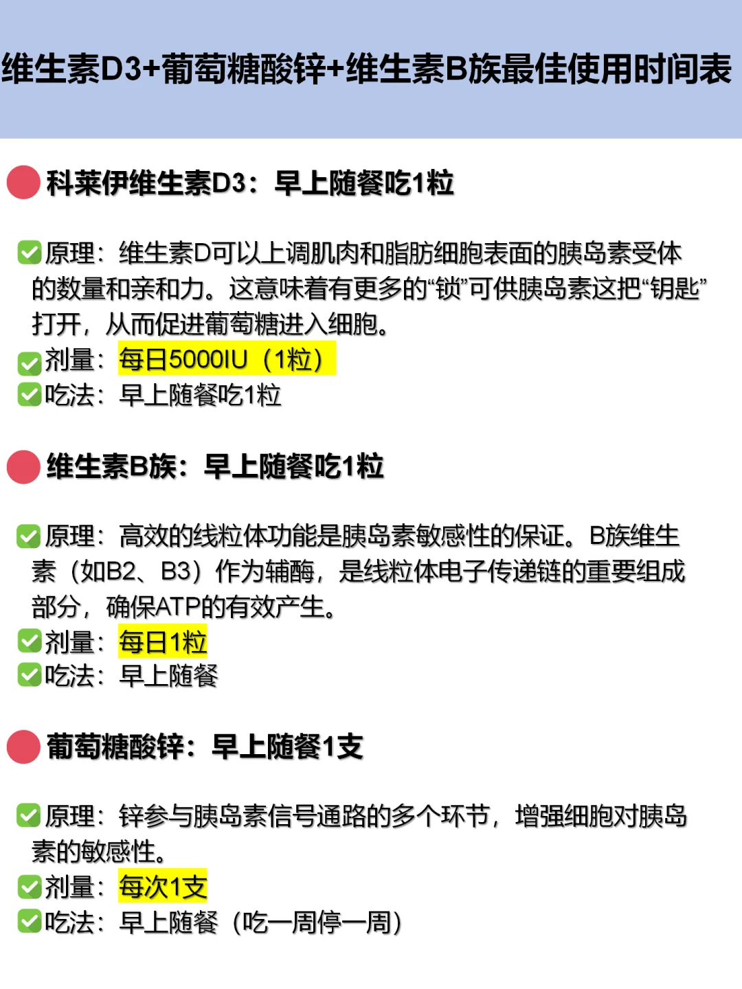 🔍原理:维生素D可以上调肌肉和脂肪细胞表面的胰岛素受体 的数量和亲和力。这意味着有更多的“锁”可供胰岛素这把“钥匙”打开,从而促进葡萄糖进入细胞
