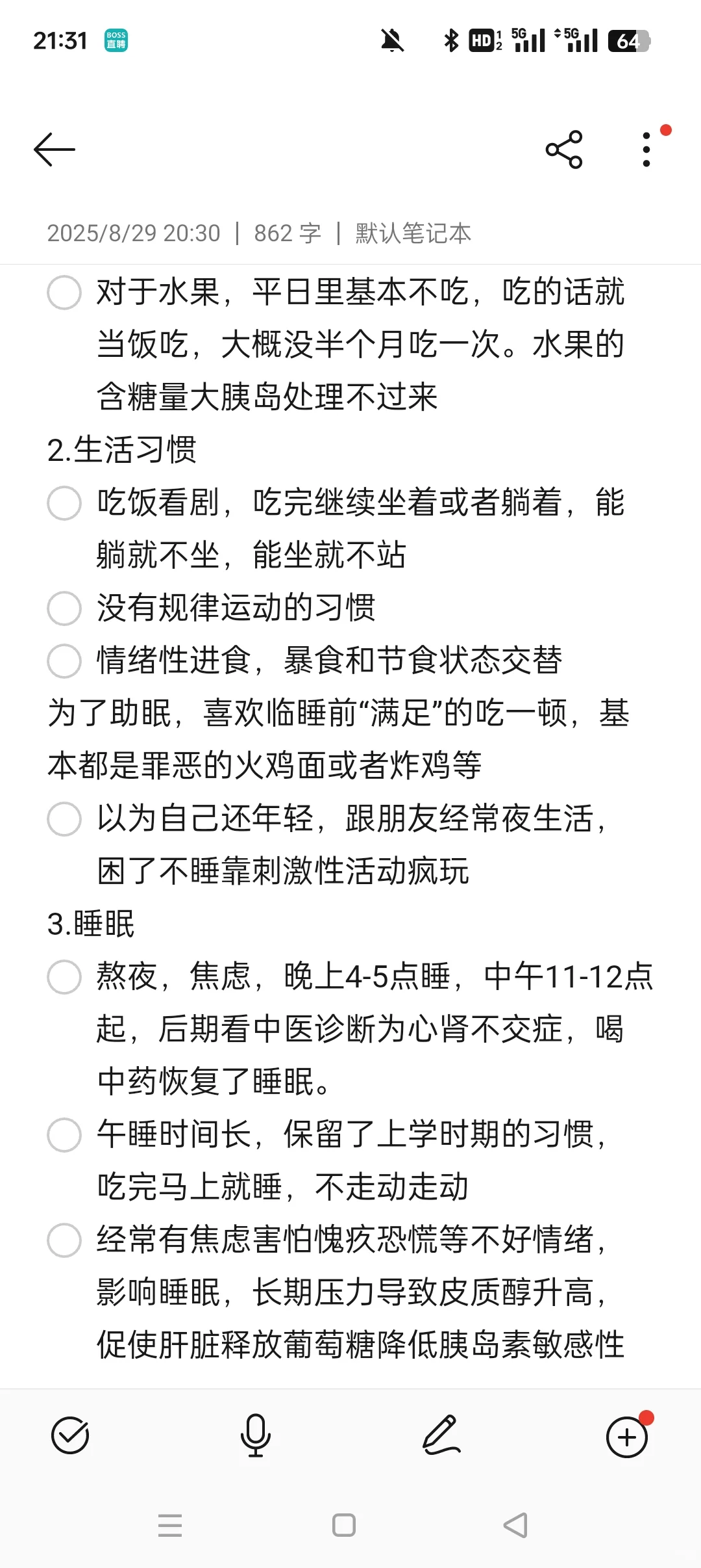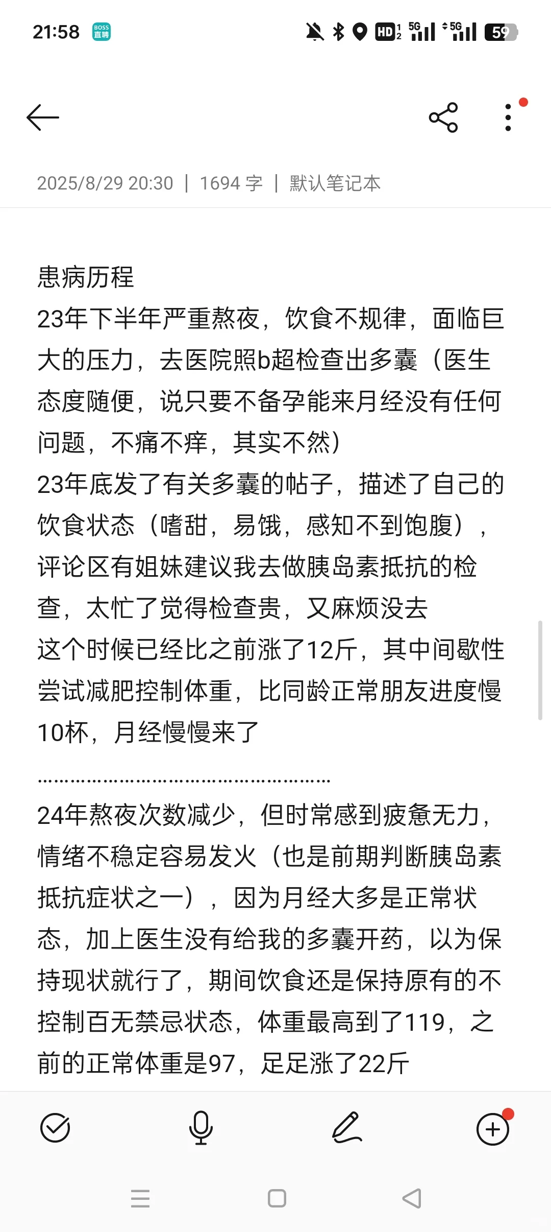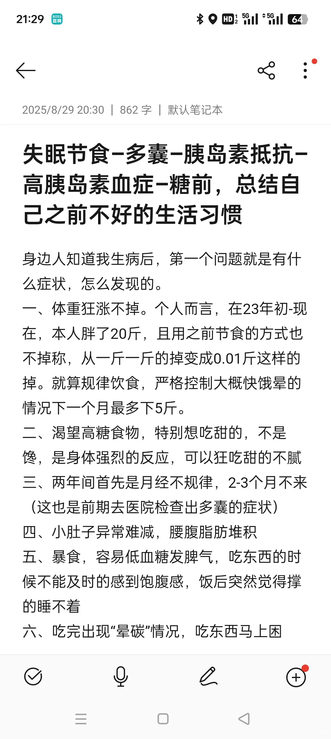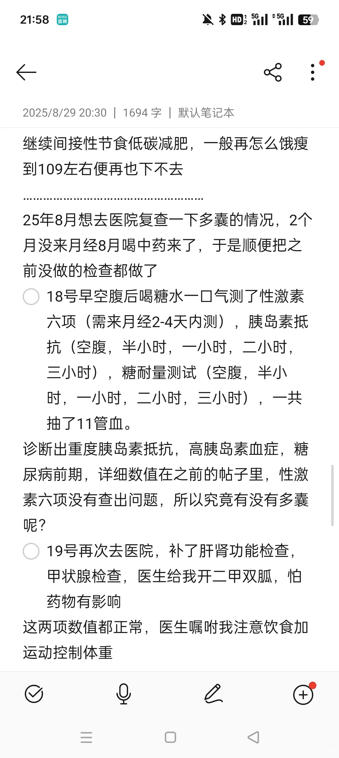 我是怎么从多囊到胰岛素抵抗到糖尿病前期状态的,分享自己的患病历程,希望自己引以为戒,有多囊的女性宝宝不放心可以去医院查查。不要过度焦虑,我是家族有过糖尿病史加上自己之前不注意生活习惯。希望通过一步步改变慢慢恢复正常,不想老了之后染上各种恐怖的并发症,丑丑的死去😖。#女性健康 #关爱女性内分泌健康 #糖前 #胰岛素抵抗 #增肌