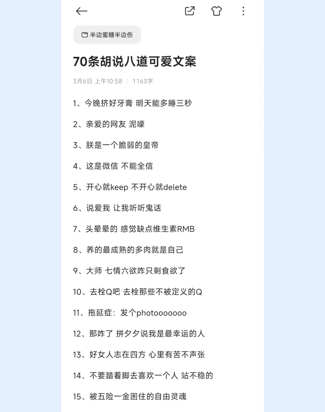 #文案 #每日文案 #朋友圈文案 #可爱文案 #创意文案 #短句文案 #趣味文案 #自由随性的小众文案 #搞笑文案 #分享文案