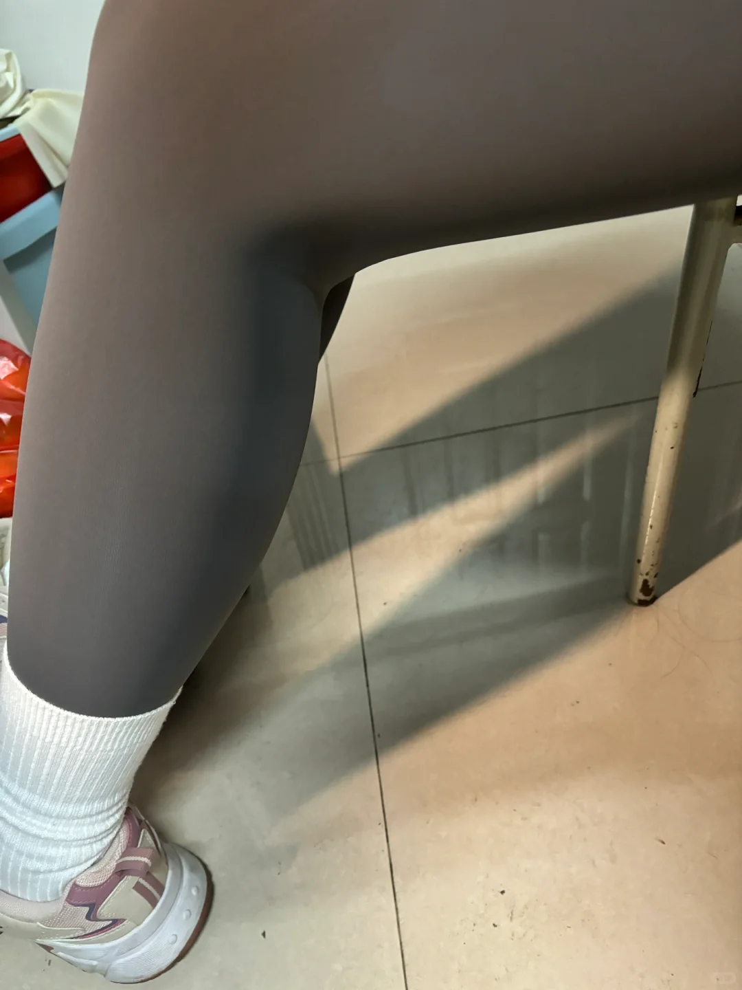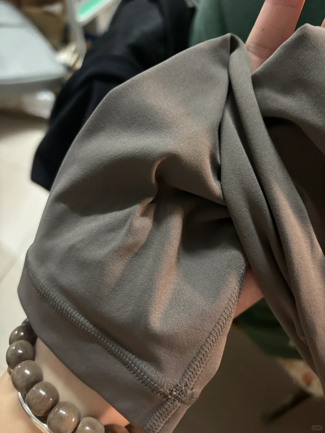 包裹性很强的一条瑜伽裤!同时也不卡裆不掉档 面料也很舒服 滑滑的很舒服的 现在这个温度穿也很合适!颜色很高级~
