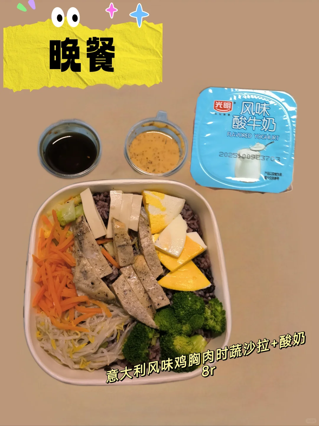 🍅晚餐:酸奶+意大利风味鸡肉时蔬沙拉 500kcal