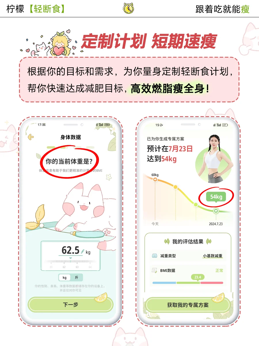 根据你的个人数据🔢和减肥目标等,为你量身制定个性化的减肥计划📑,快速达成减肥目标,短期内速瘦~💃