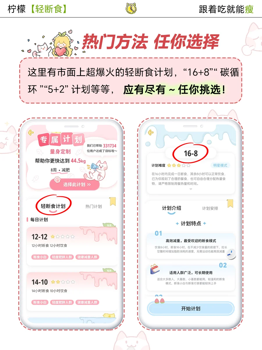 这里有全网爆火的轻断食计划,“16+8”“碳循环”“5+2”计划💞等等,应有尽有~任你选择!