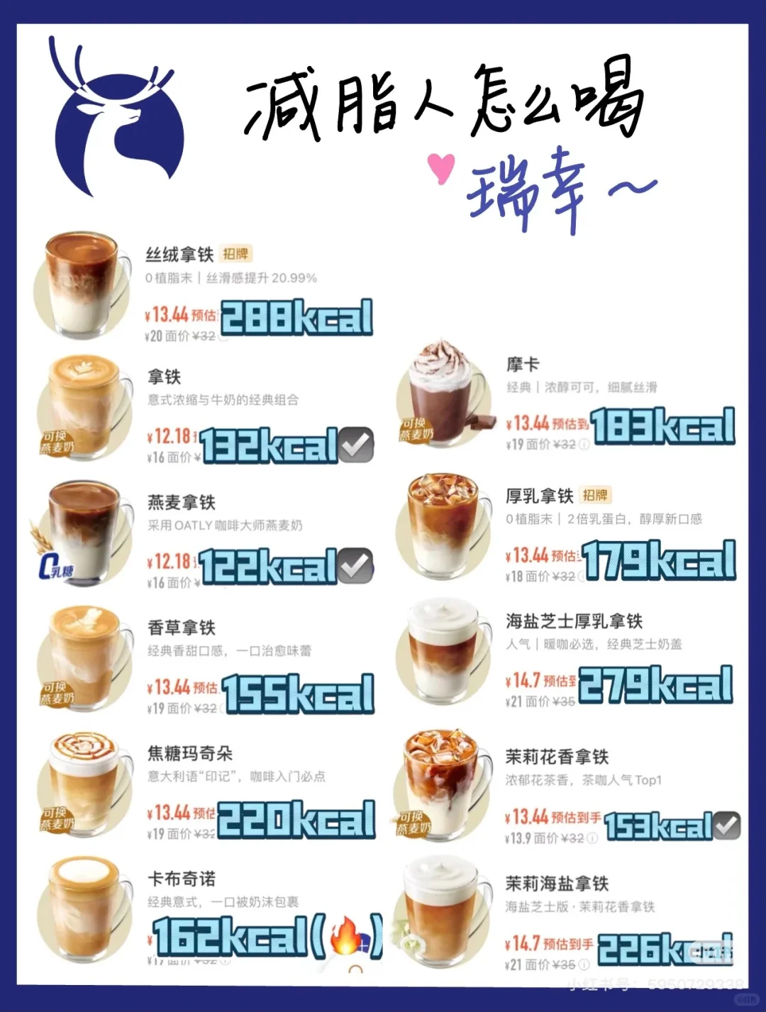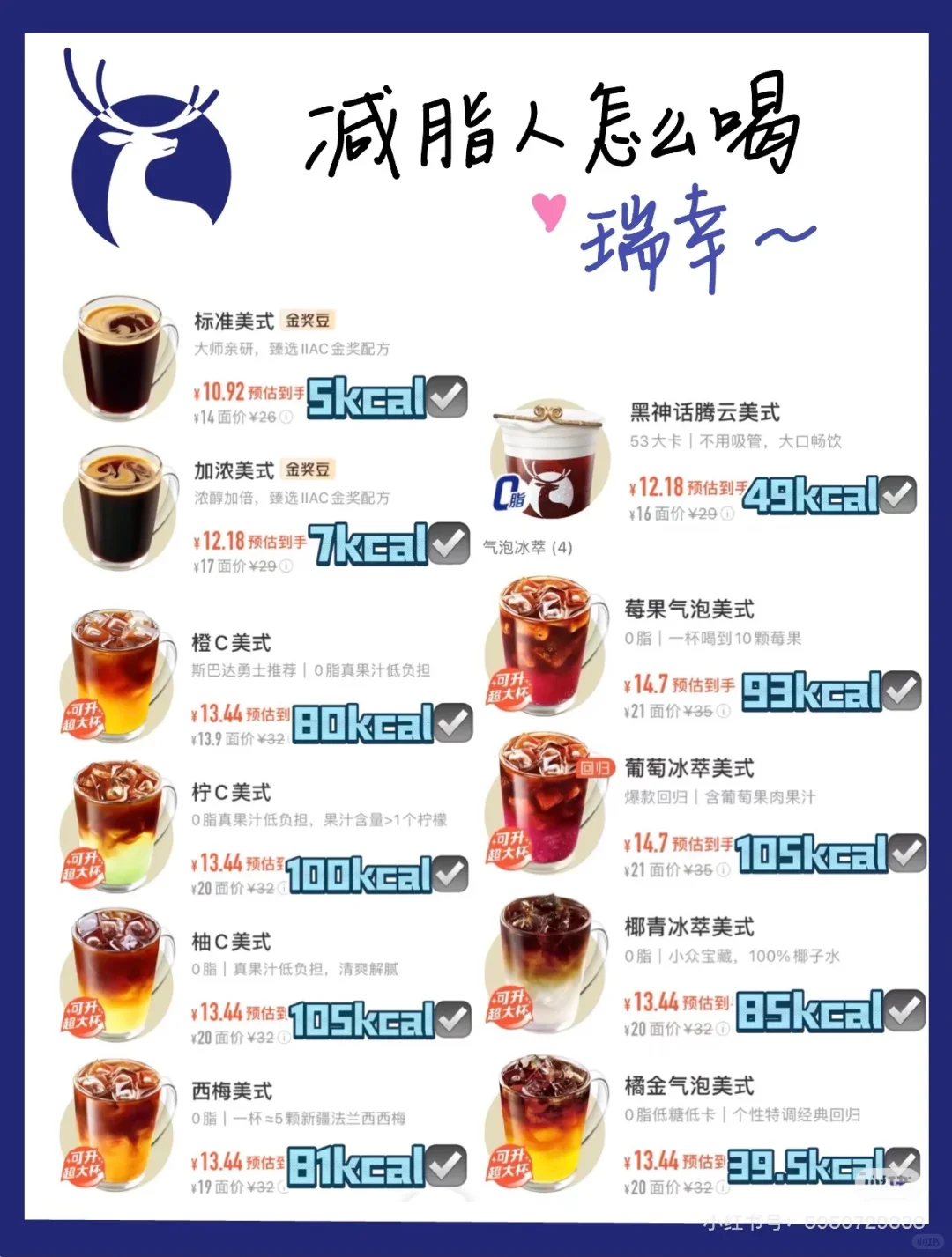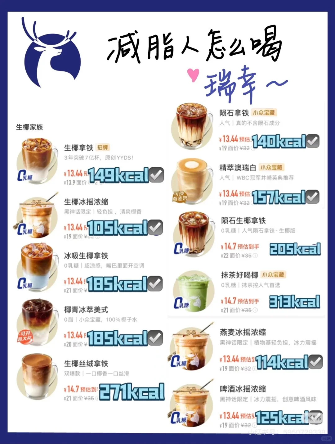 这篇是我整理出来瑞幸咖啡热量排名,