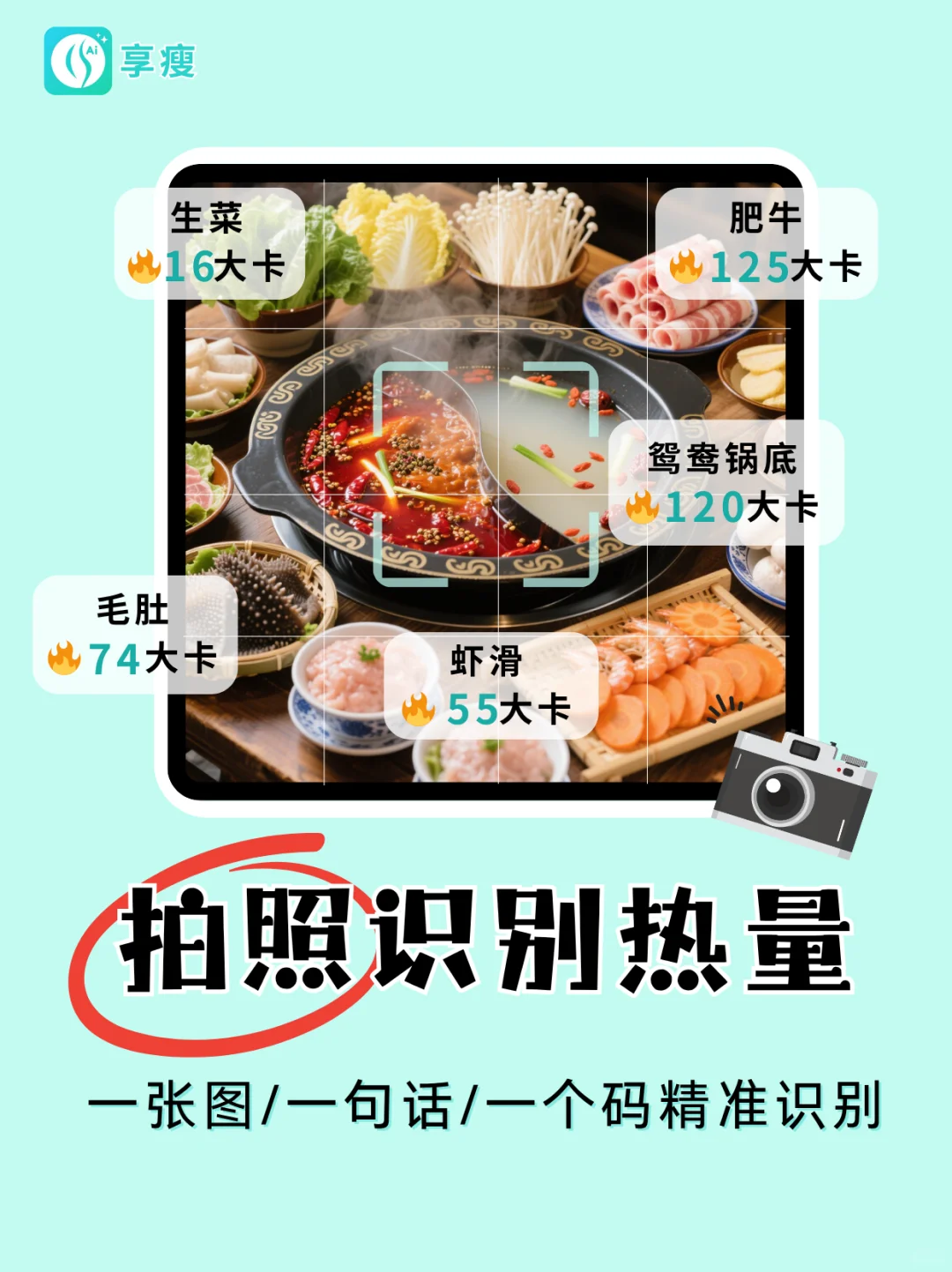 享瘦app多种识别方式大大节省了时间和精力,饮食热量一目了然,让热量记录更高效,减脂之路更加稳扎稳打🌟🌟