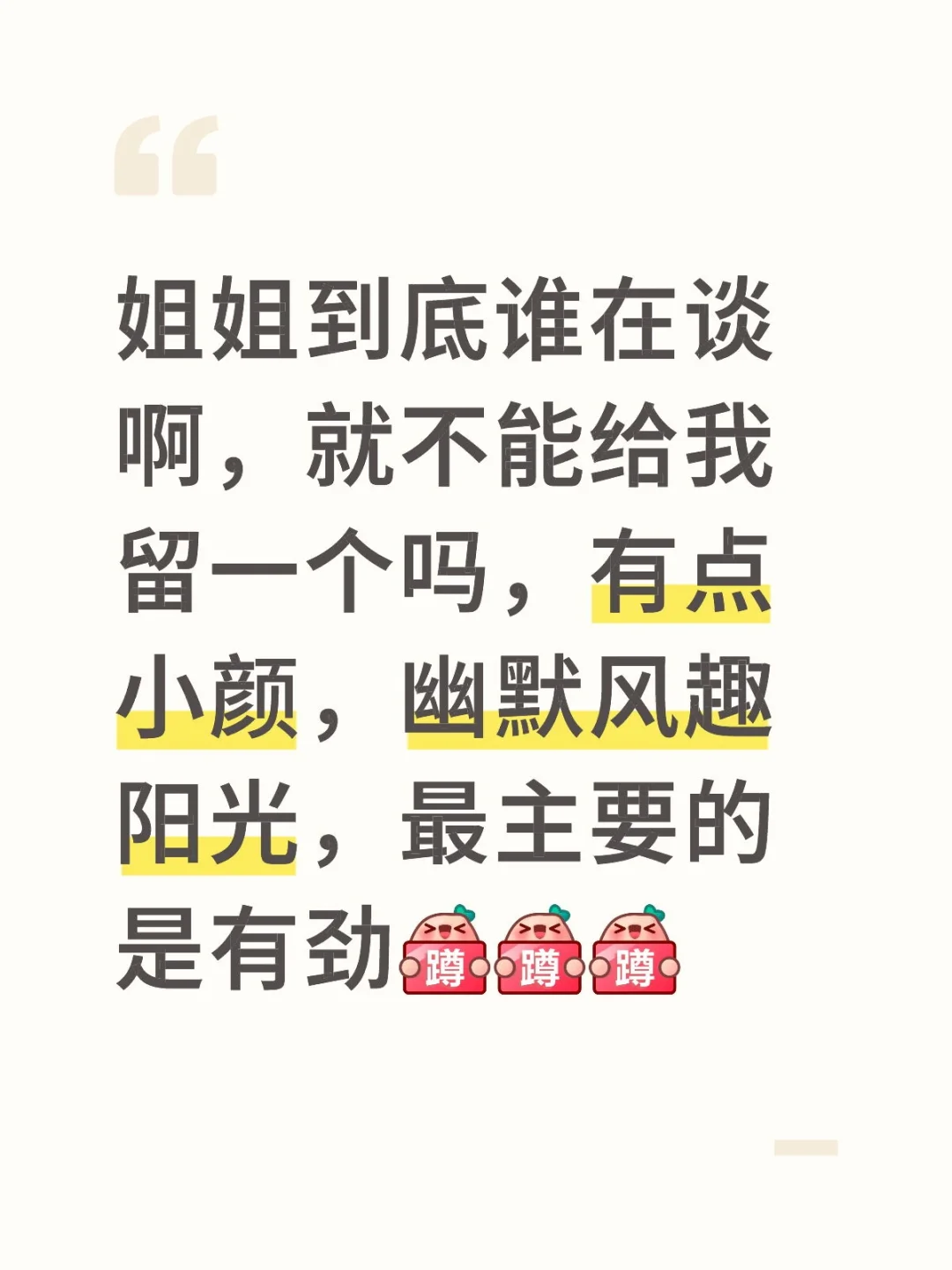 姐姐到底谁在谈啊,就不能给我留一个吗,有点小颜,幽默风趣阳光,最主要的是有劲