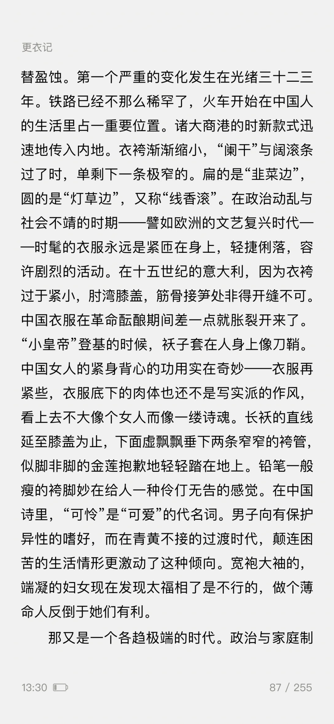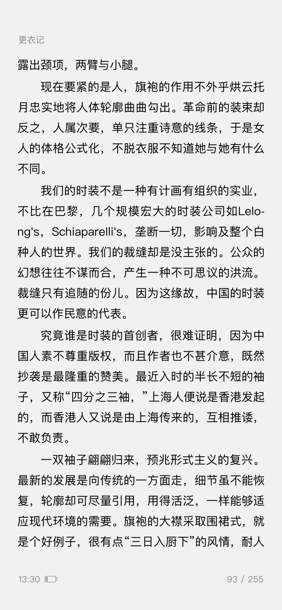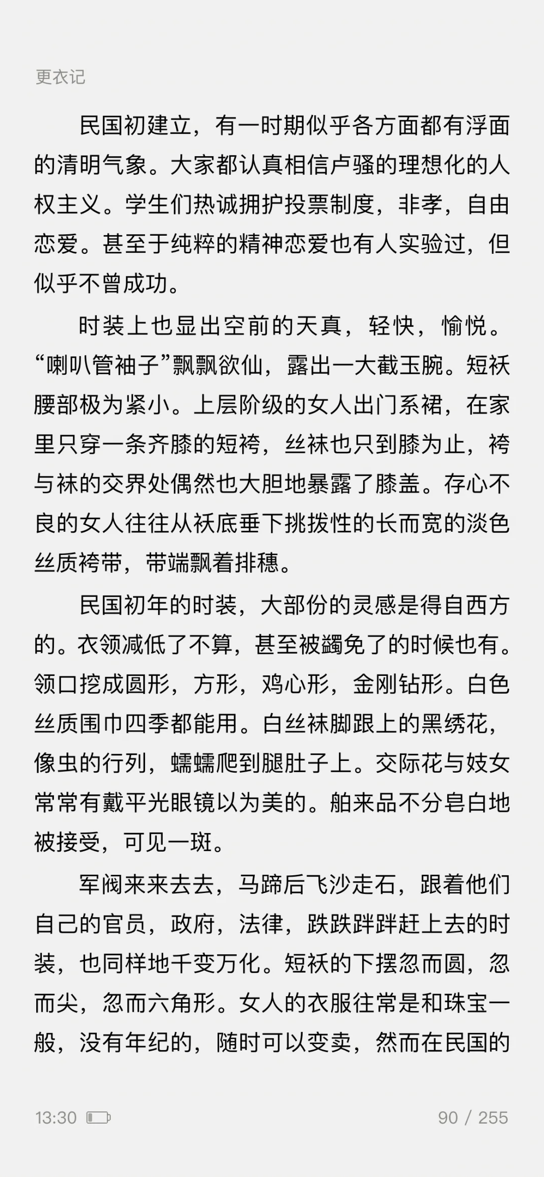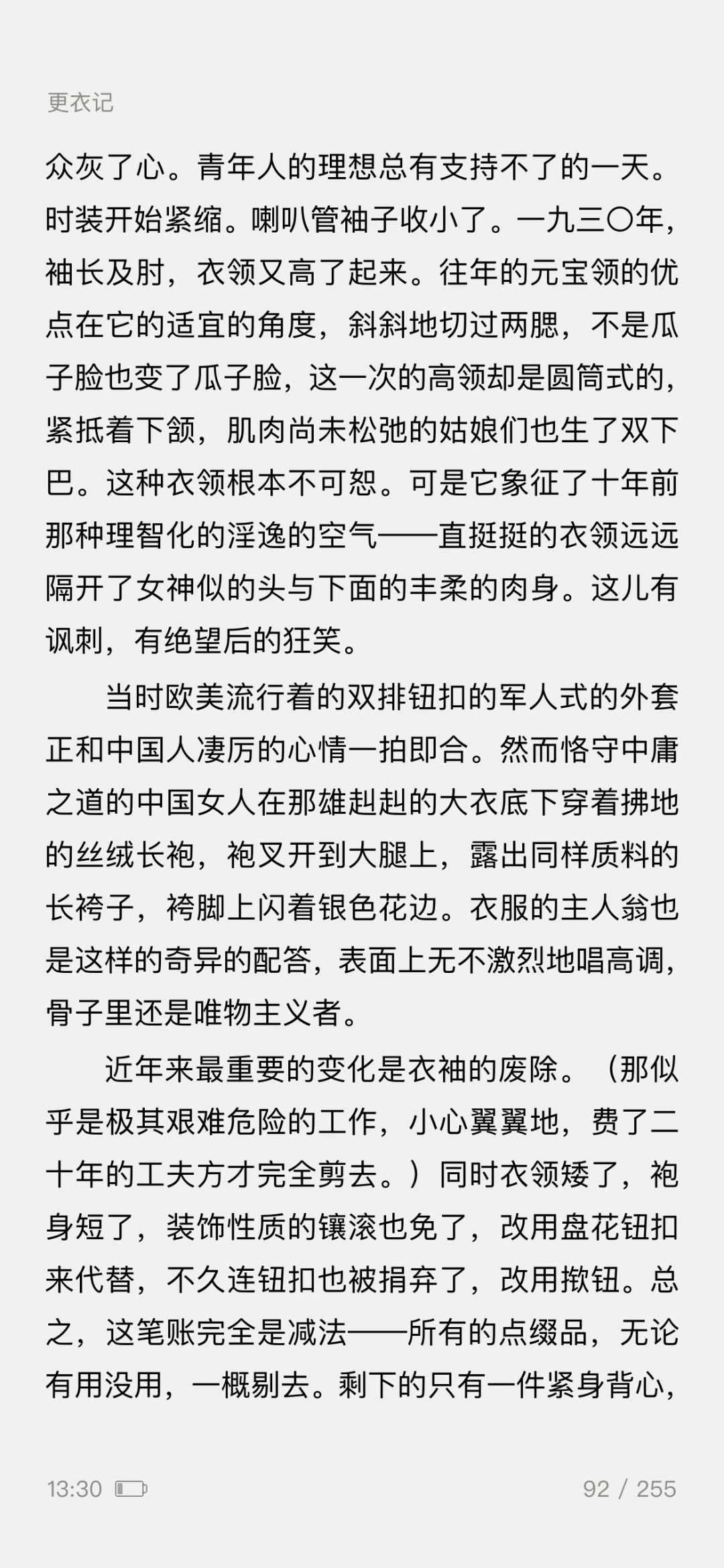 ——一篇5000余字的《更衣记》,写尽了服装潮流的变迁,既有一个女人对服装难以言喻的迷恋之情,更有一般女人难有的对服装千变万化的智慧之思。