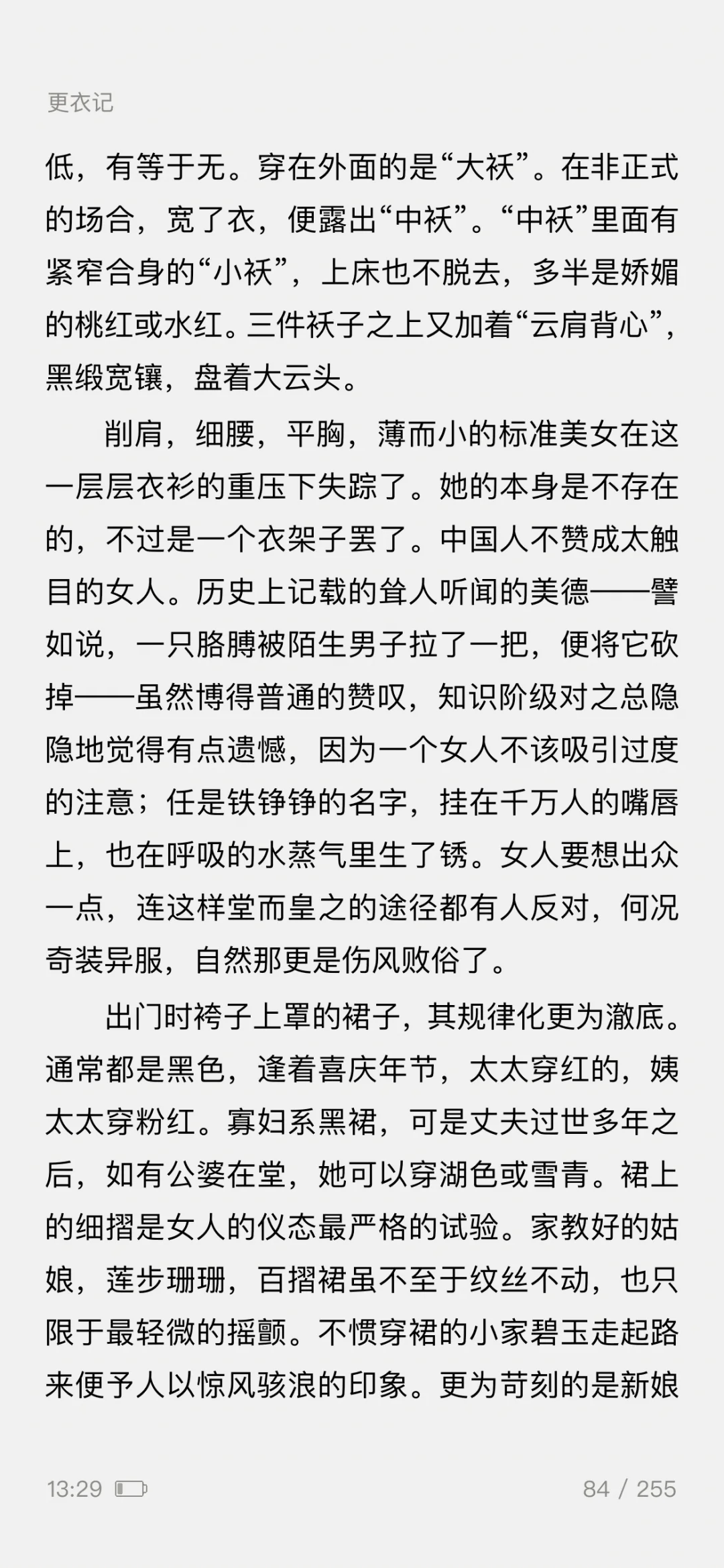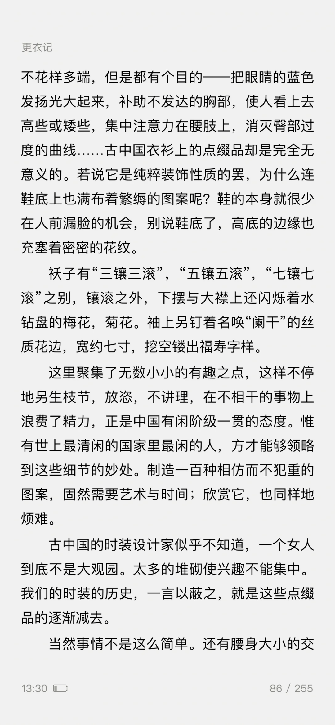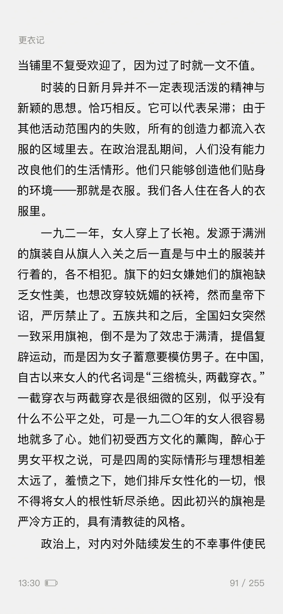——一篇5000余字的《更衣记》,写尽了服装潮流的变迁,既有一个女人对服装难以言喻的迷恋之情,更有一般女人难有的对服装千变万化的智慧之思。