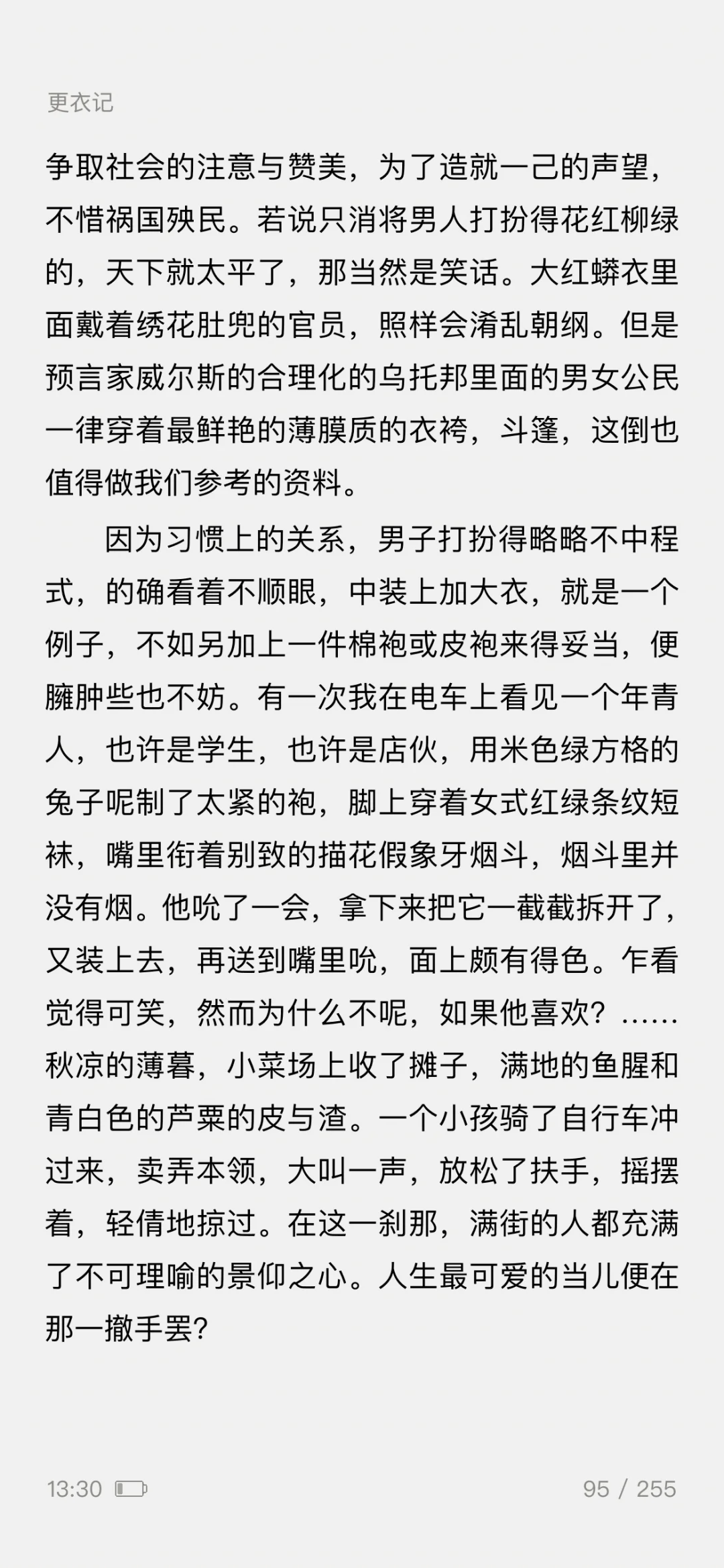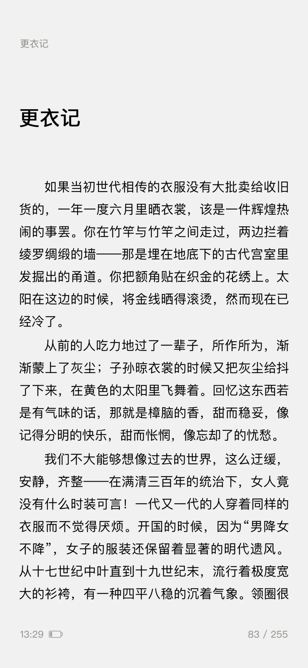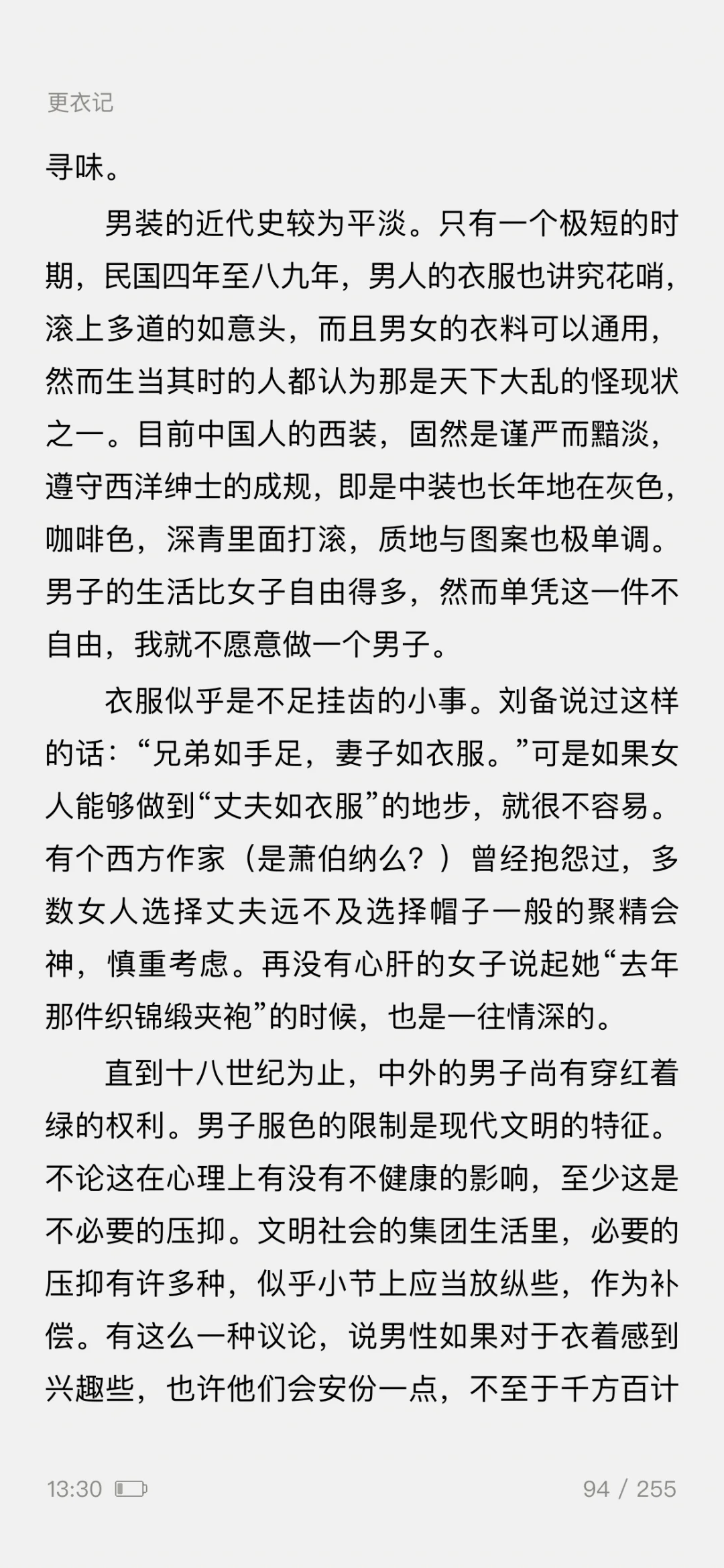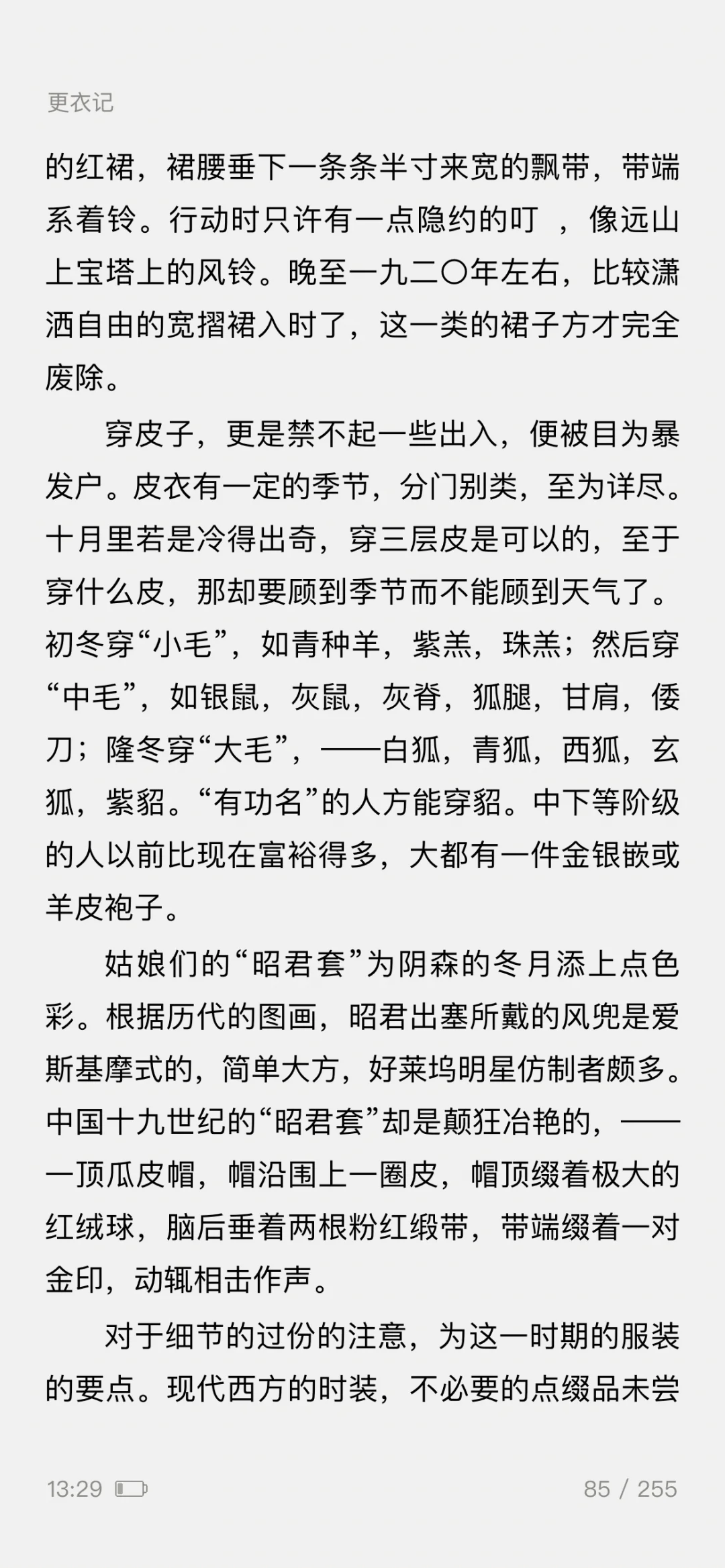 ——一篇5000余字的《更衣记》,写尽了服装潮流的变迁,既有一个女人对服装难以言喻的迷恋之情,更有一般女人难有的对服装千变万化的智慧之思。