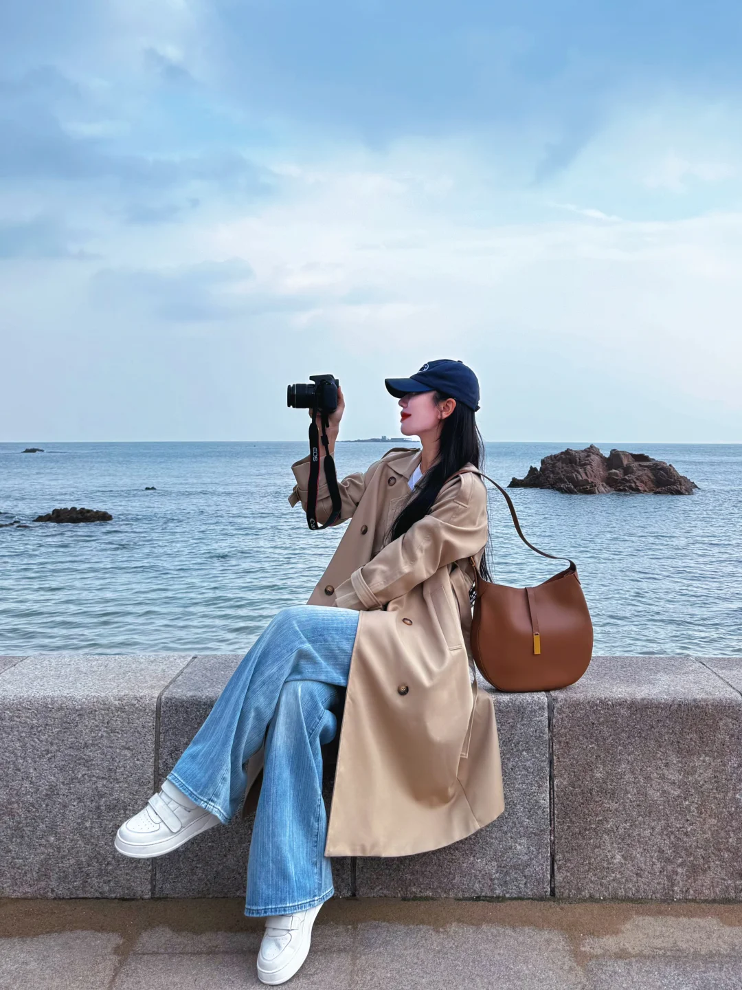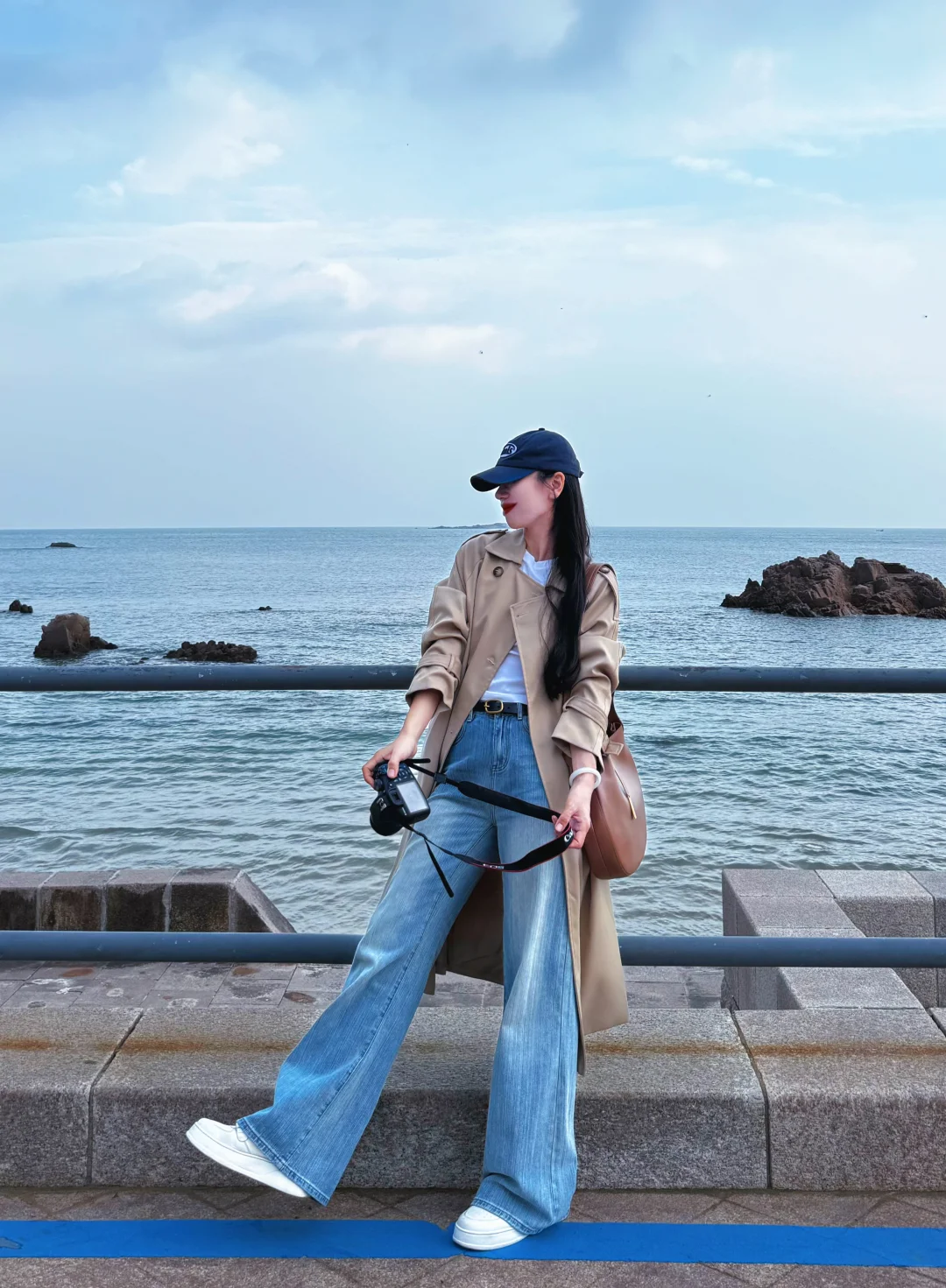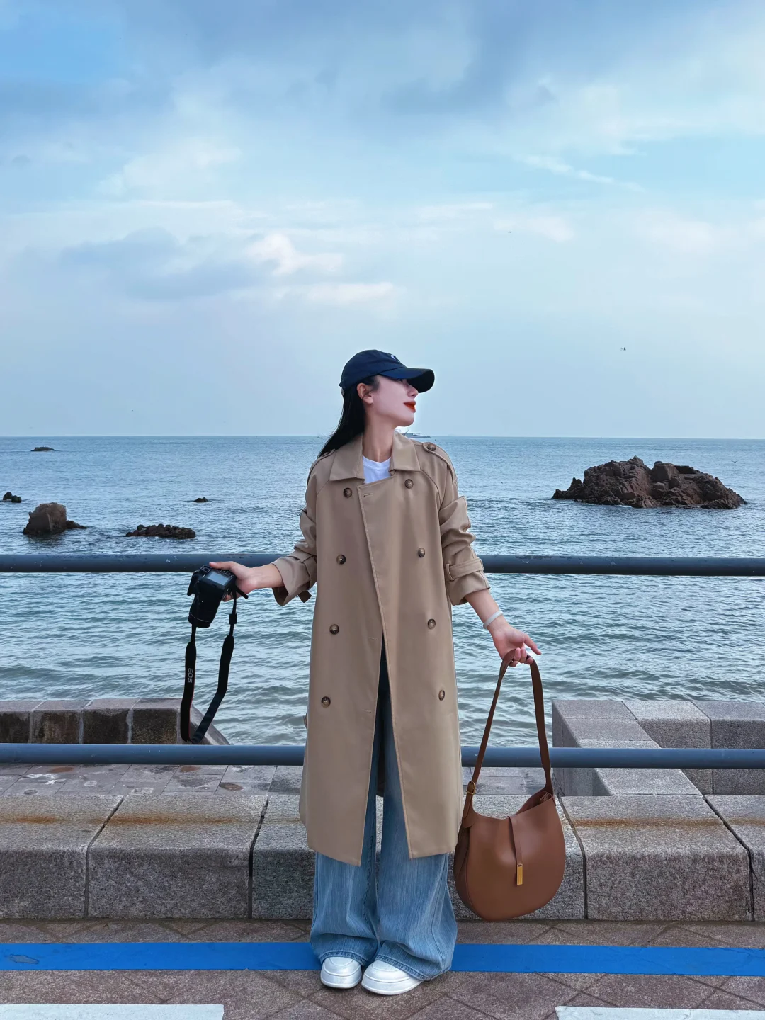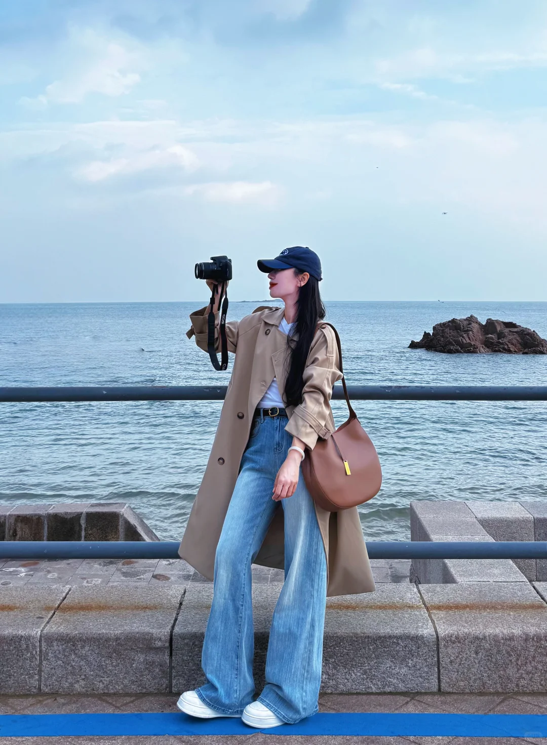 #海边拍照 #出游穿搭 #通勤穿搭 #当我真正开始爱自己 #风衣 #宽松牛仔裤 #小白鞋 #hobo #托特包 #过好每个阶段的自己