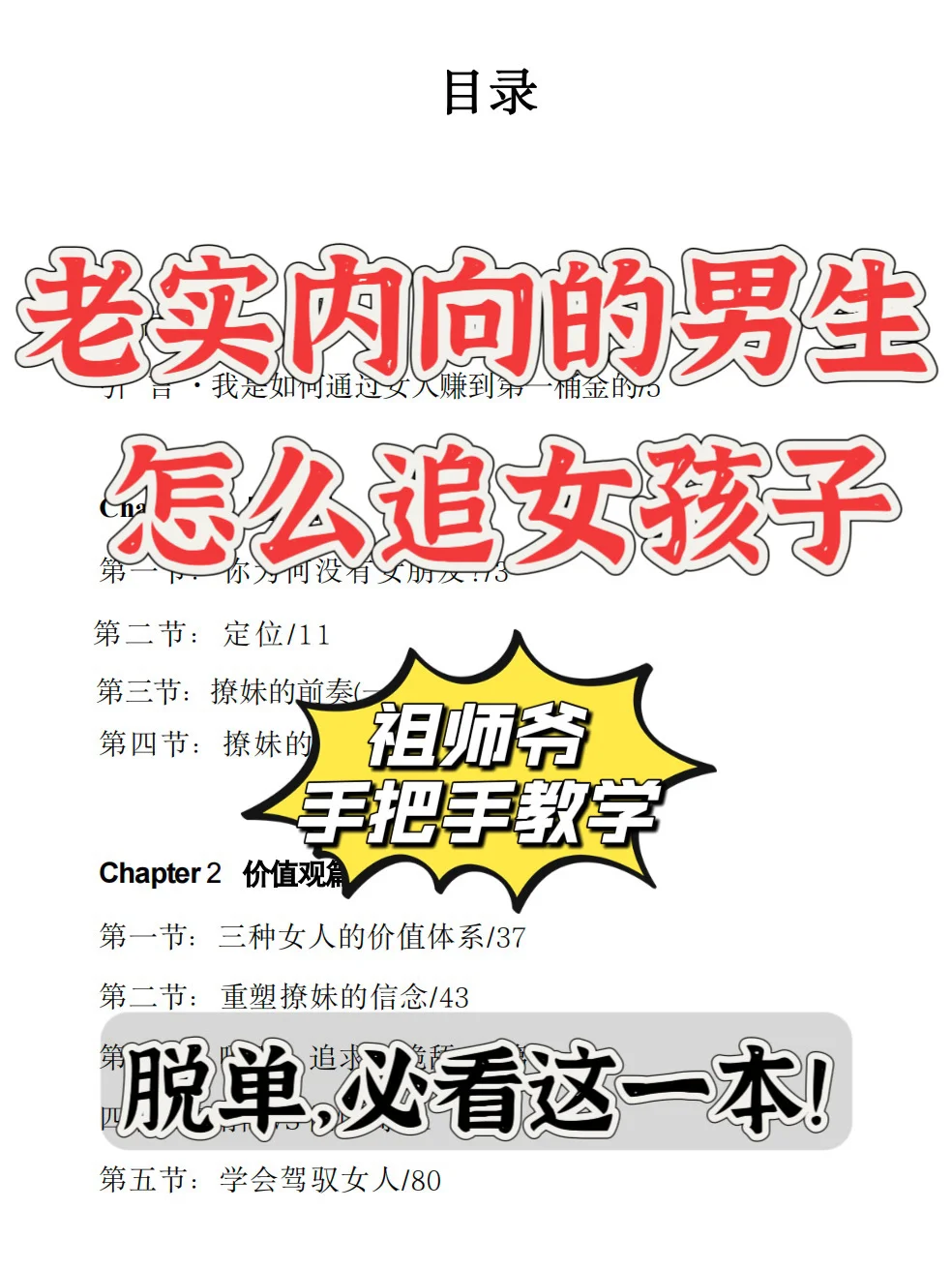 兄弟们!性格老实内向,追女生总没头绪?这本脱单宝典,直接“祖师爷级”手把手教学——