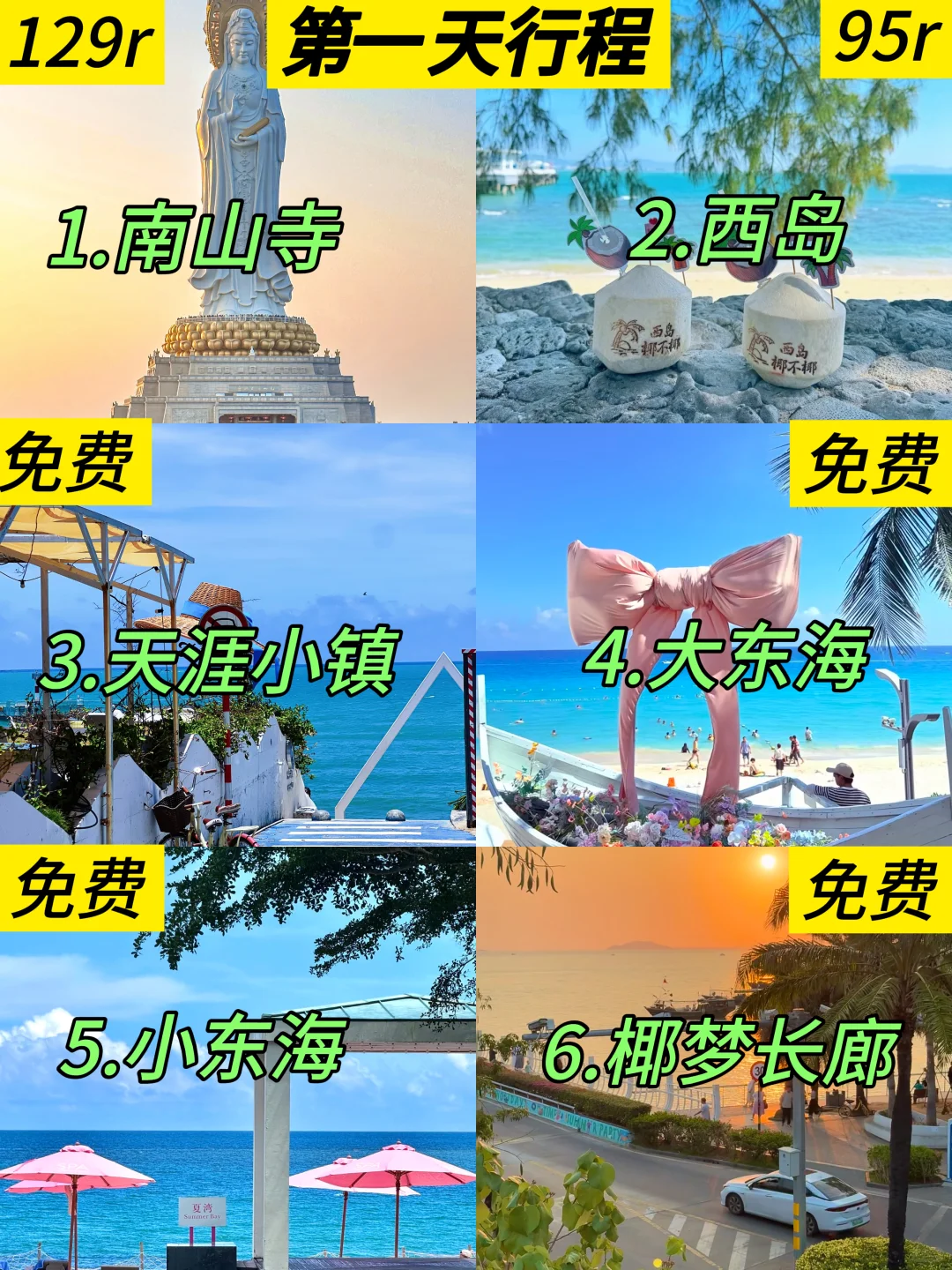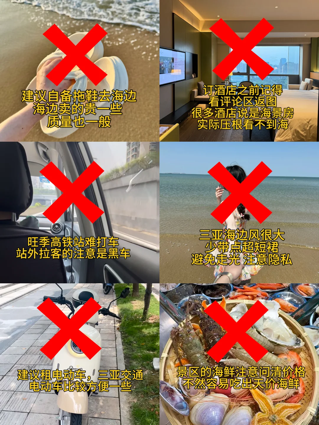 ✅配饰:帽子选带绳的!三亚风大,普通帽子很容易吹飞;墨镜必备(阳光刺眼)、护脖防晒面罩安排上(后颈超易晒伤)。