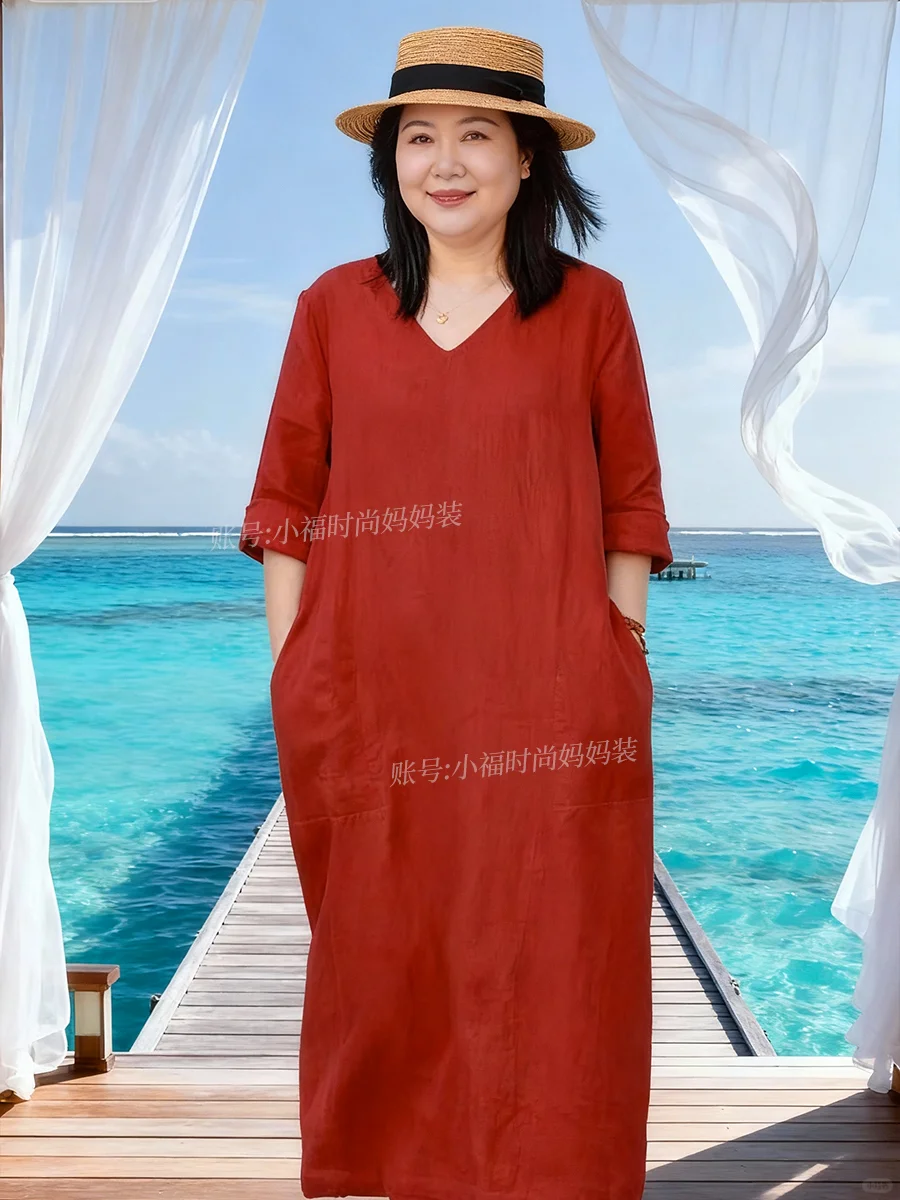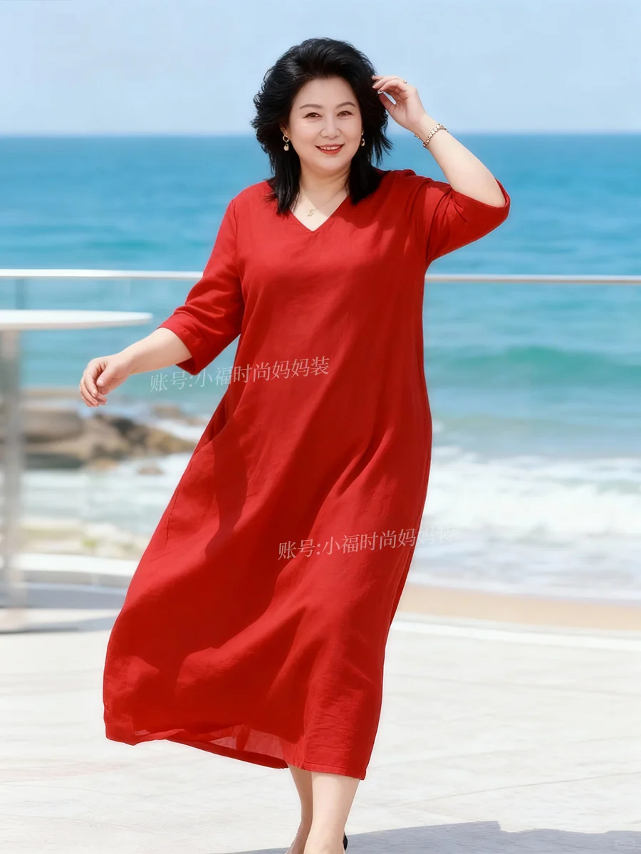 60岁女人穿搭|海边度假一定要穿红色连衣裙