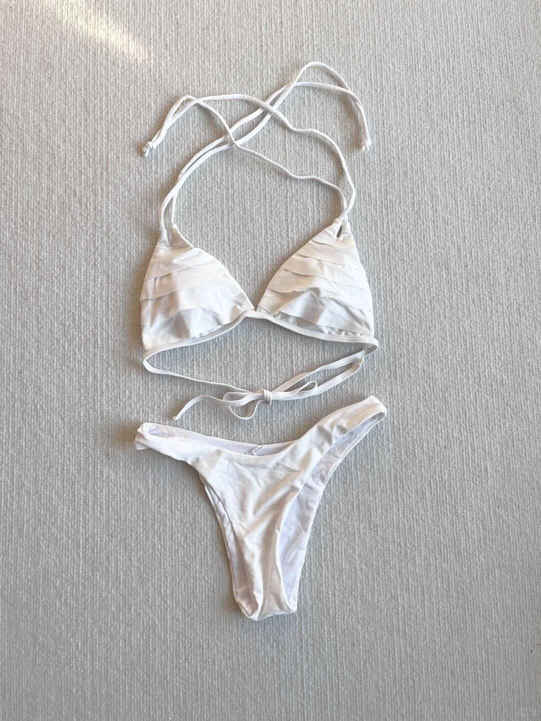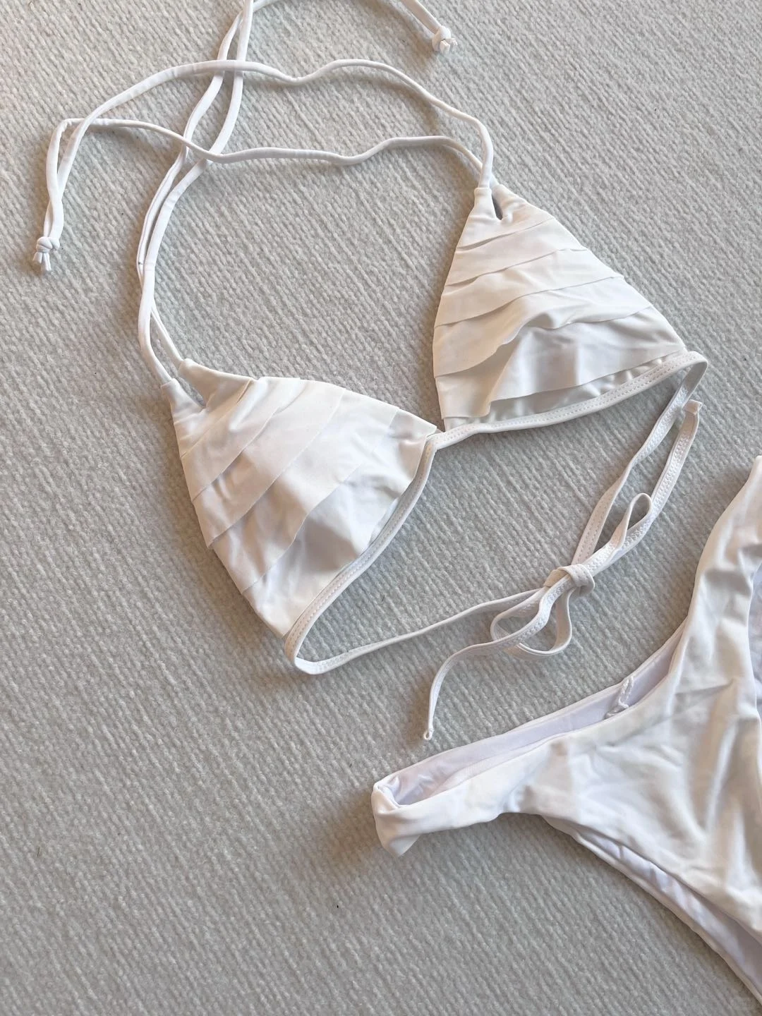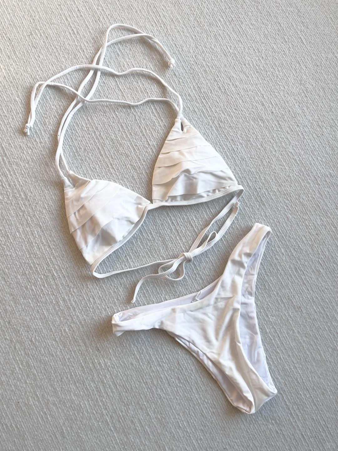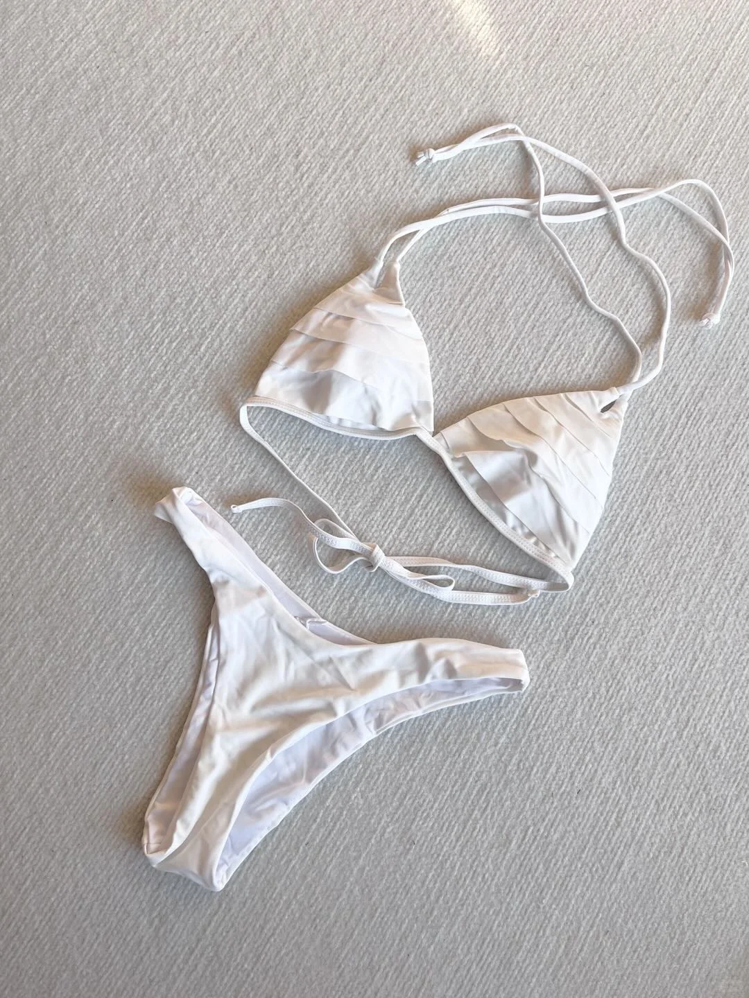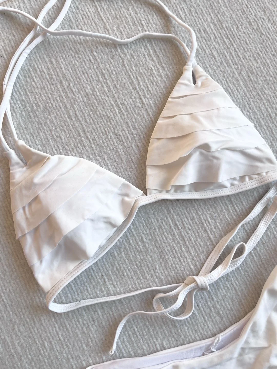 🤍白色纯欲风三角杯褶皱设计小蛋糕比基尼🤍