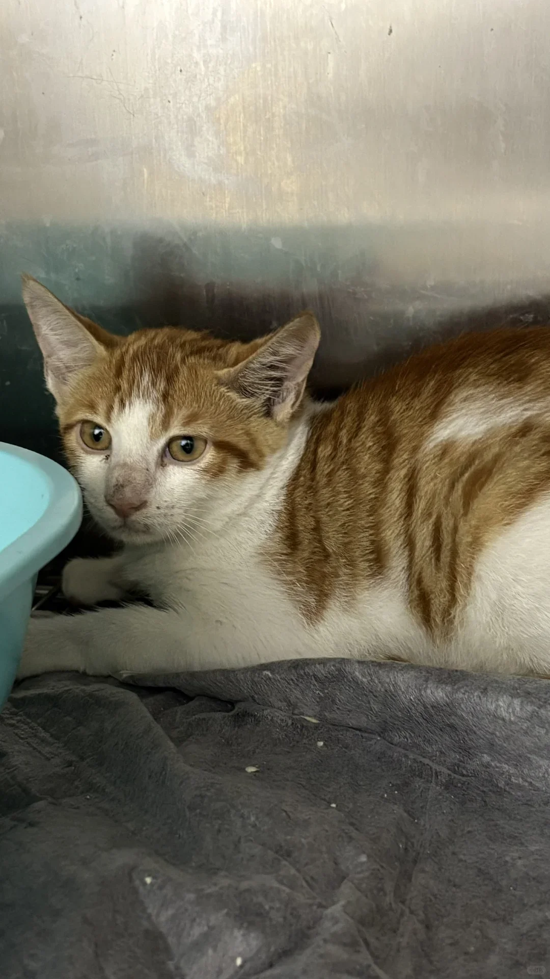 小橘白三四个月,正处于尴尬期可能有点尖嘴猴腮。但宝宝超级能吃,已经预选一个卡车位了。性格亲人,会用猫砂吃猫粮,不乱拉乱尿的好宝宝。