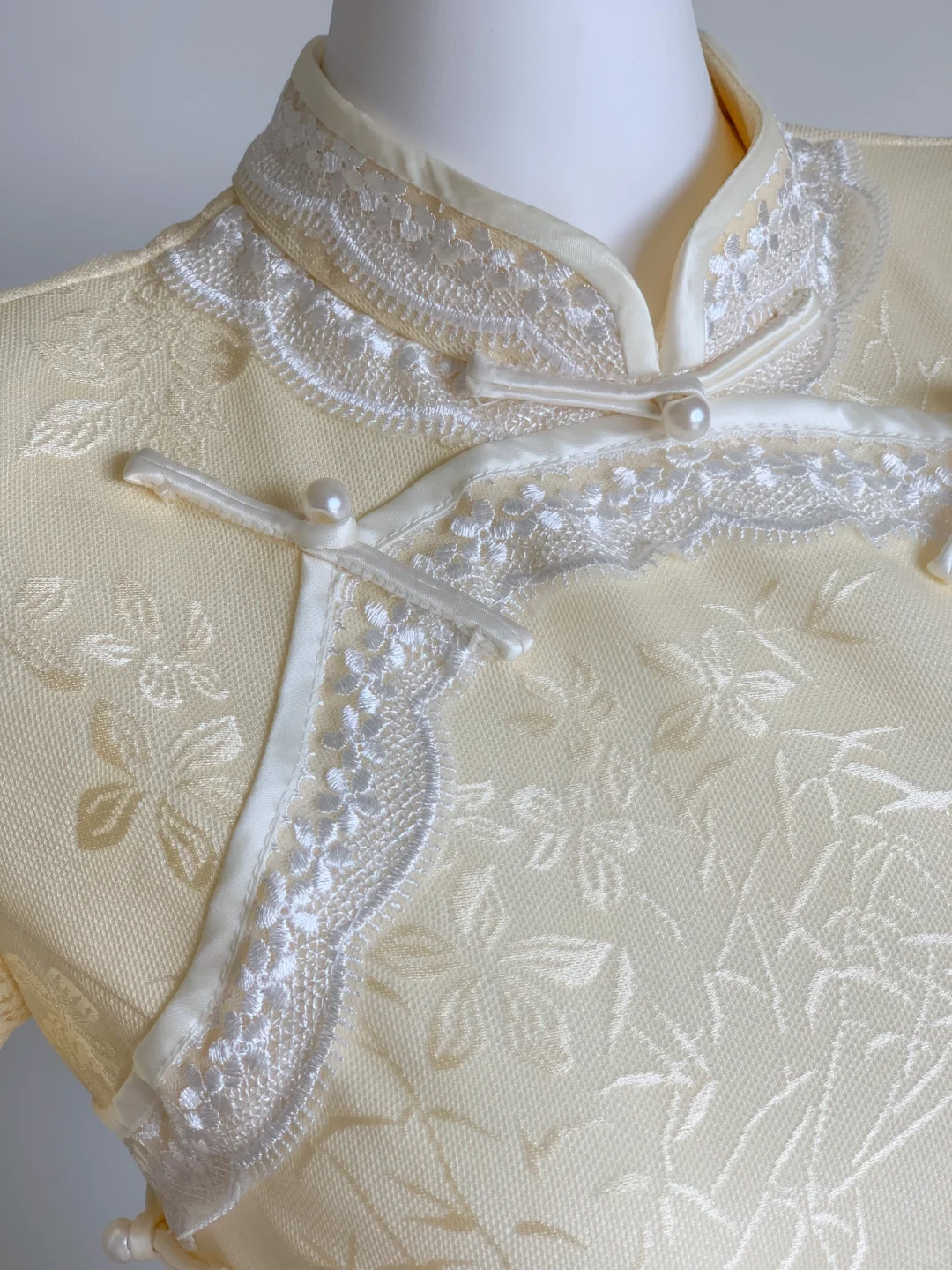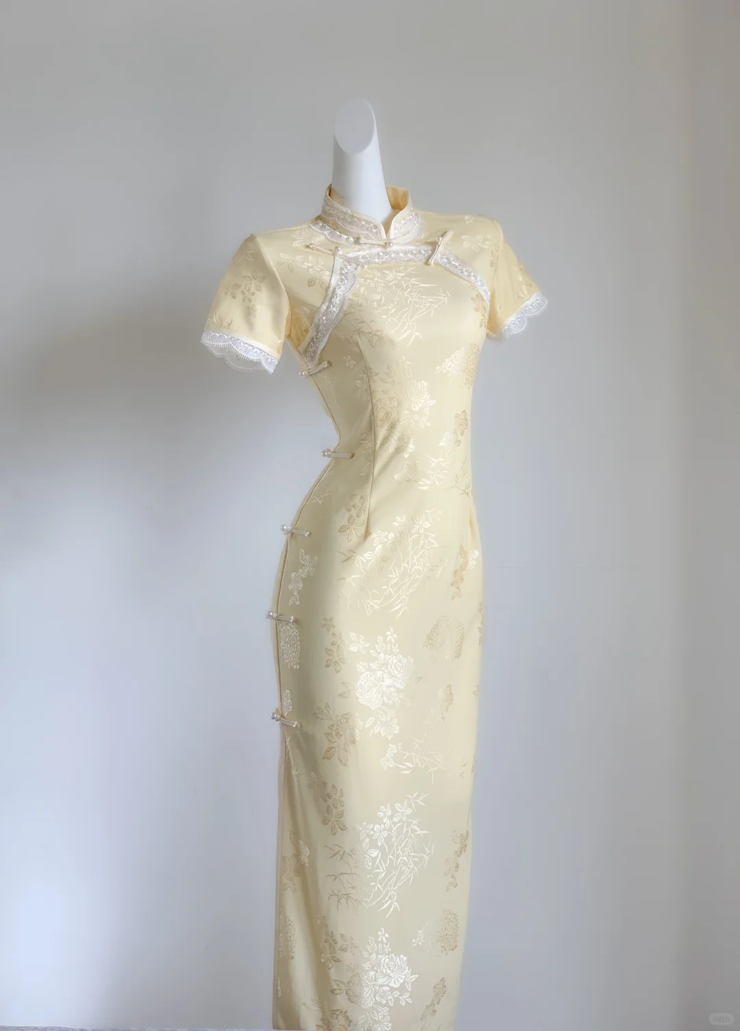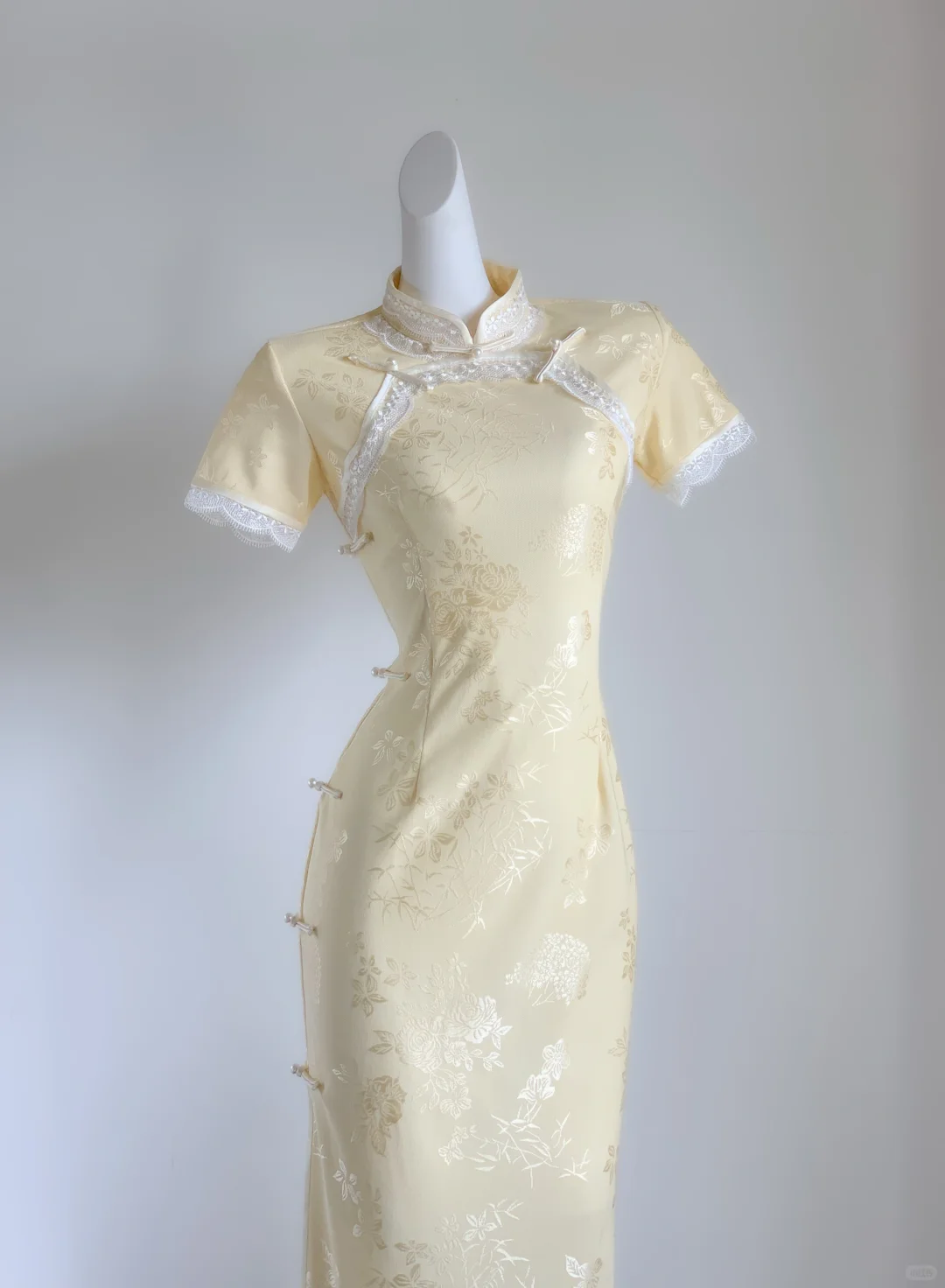 这件奶霜溶进阳光里的嫩鹅黄旗袍