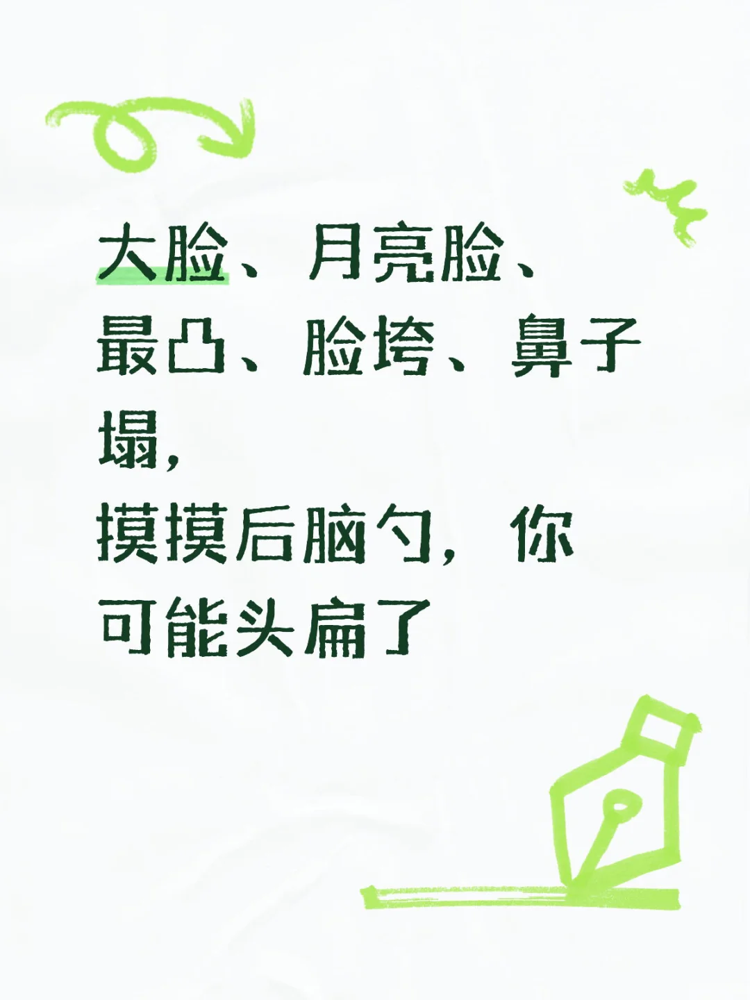扁头大脸,扁头月亮脸,扁头菱形脸,扁头山根凹,扁头驼背,扁头嘴凸,扁头犄角,扁头鼻基底,扁头法令纹