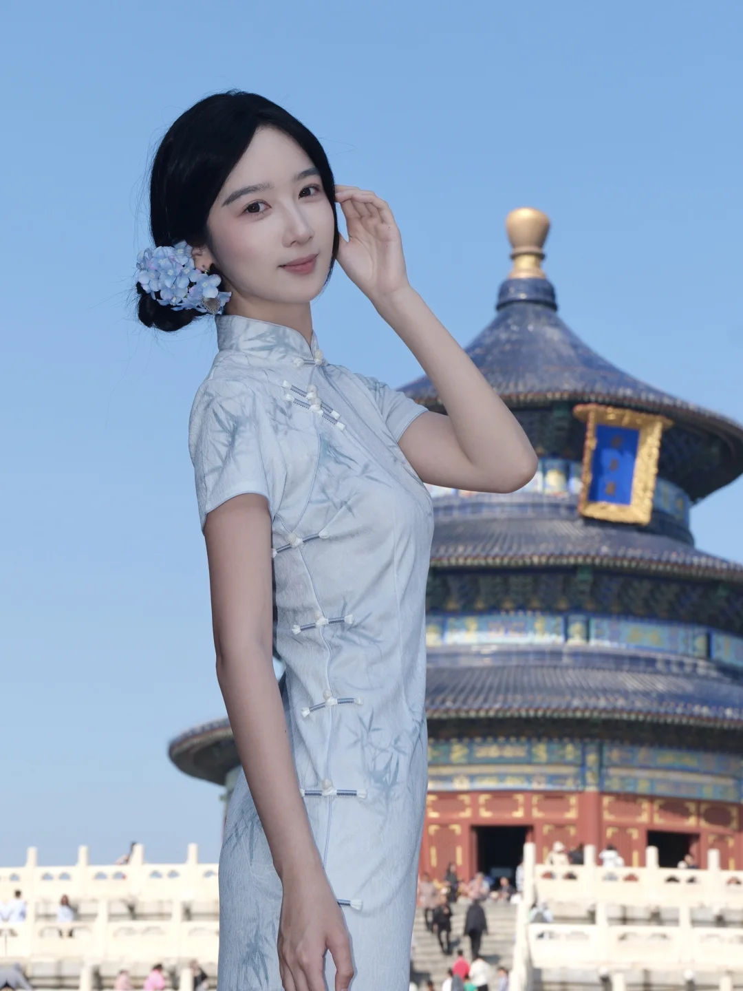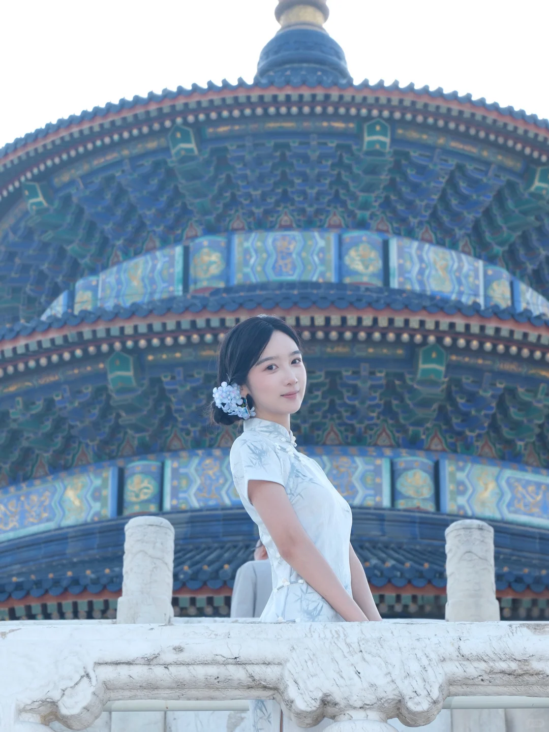 谁能拒绝在天坛穿一身旗袍,拍一组国风大片啊!红墙蓝瓦与传统服饰的碰撞,每一帧都是岁月沉淀的美~ 配上最后的滤镜自带冷白皮,太好看啦!🥰