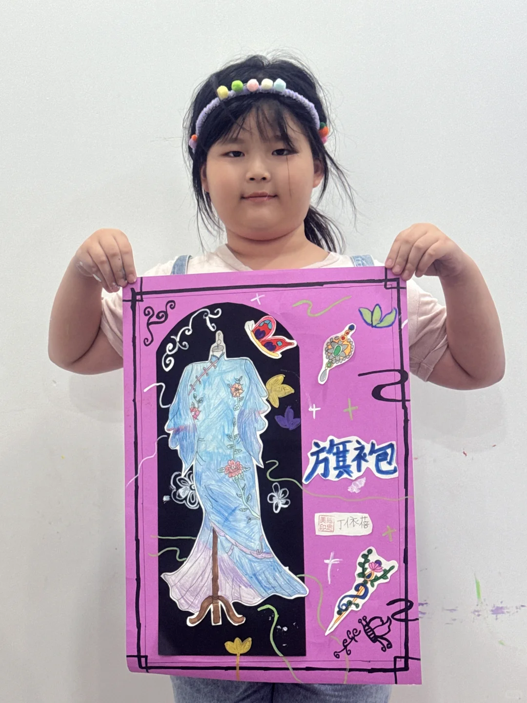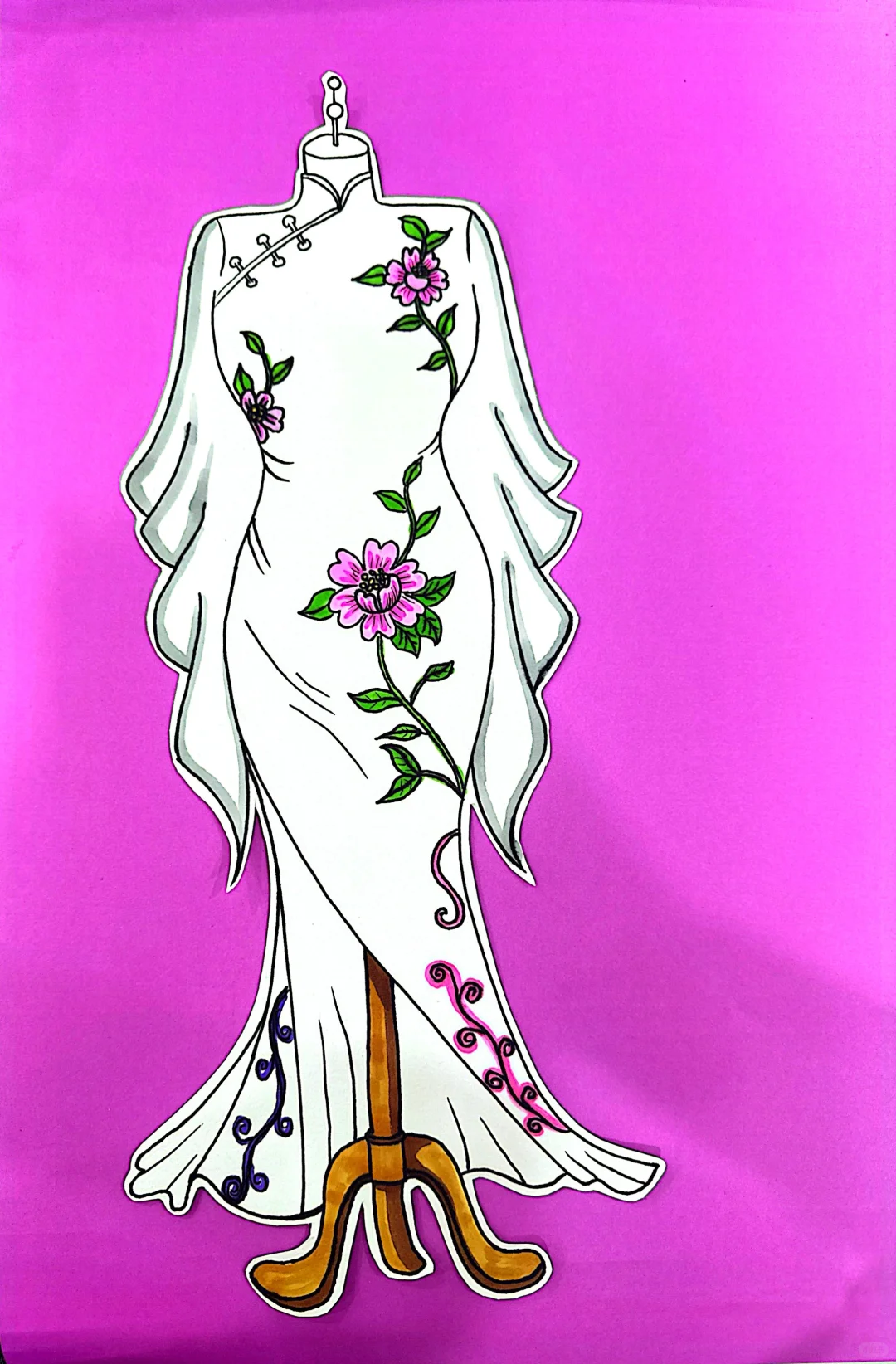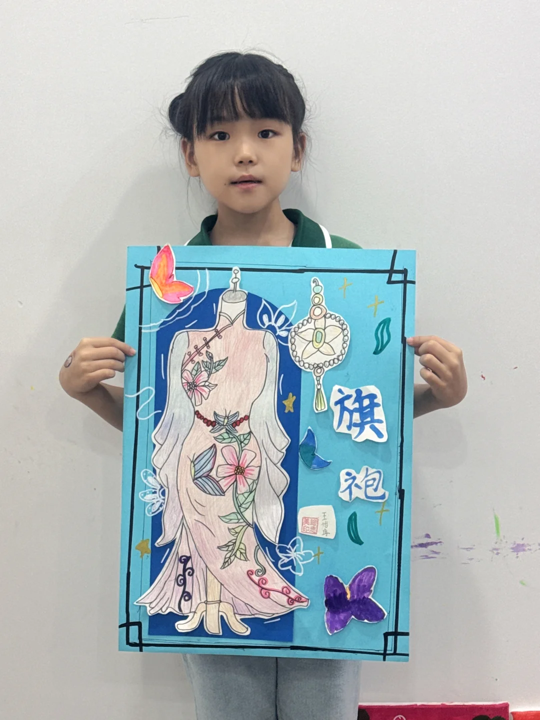 掌握旗袍的造型结构并学会绘画,结合拼贴元素进行绘画创作。