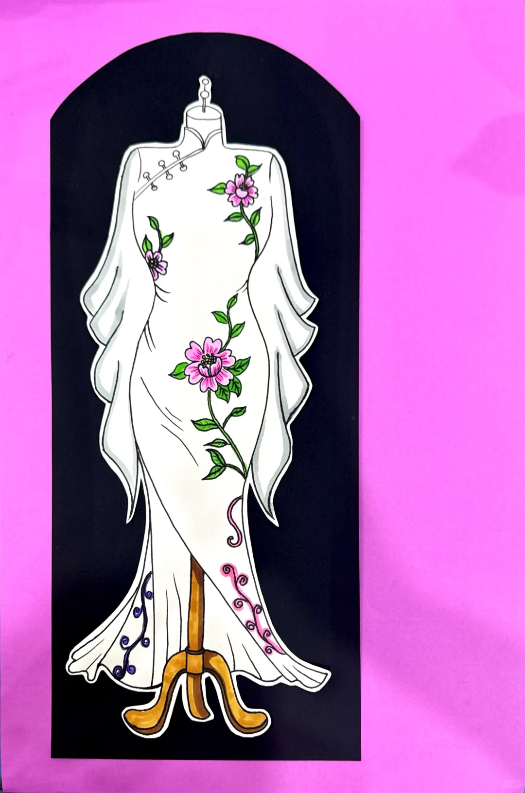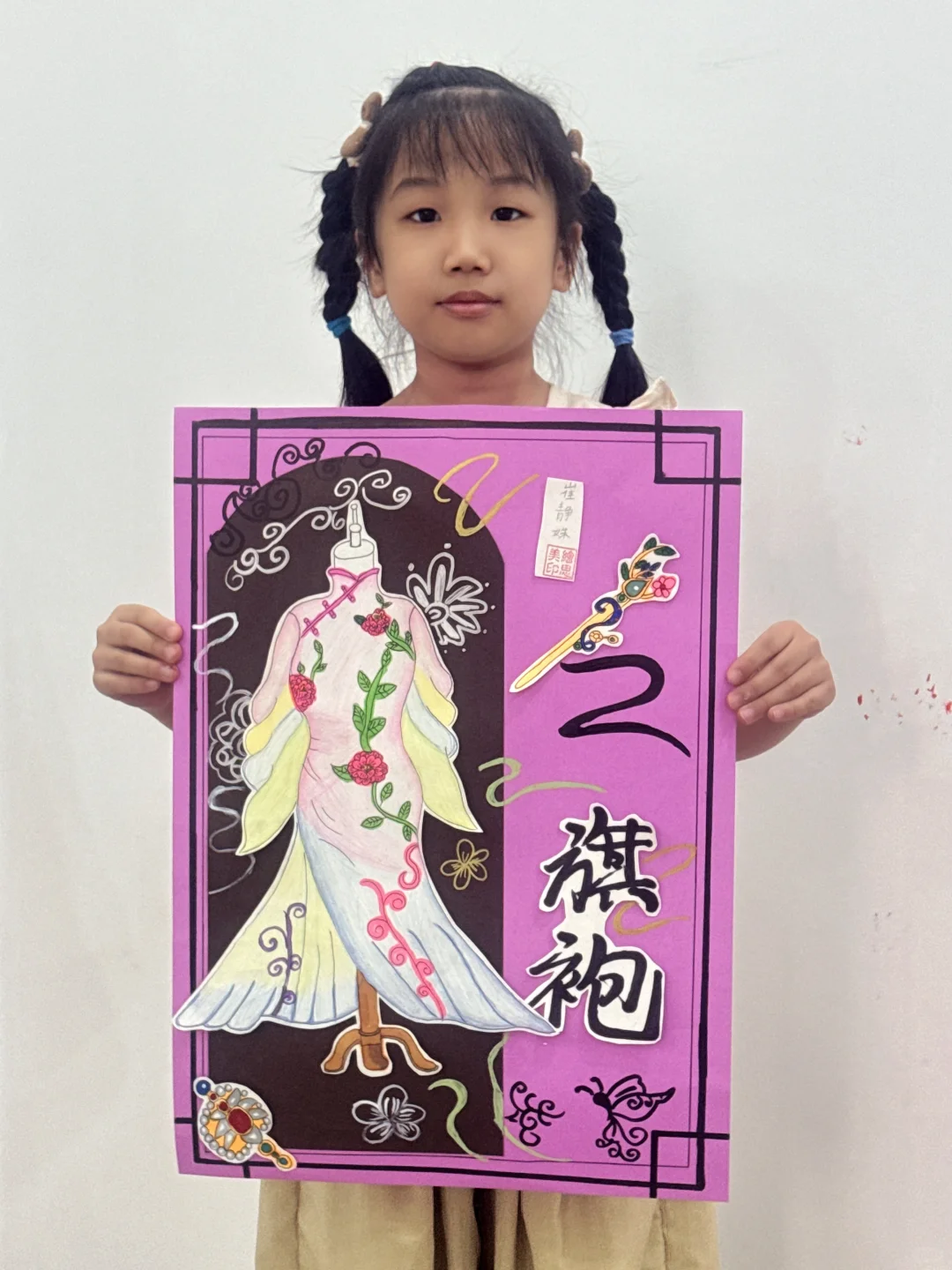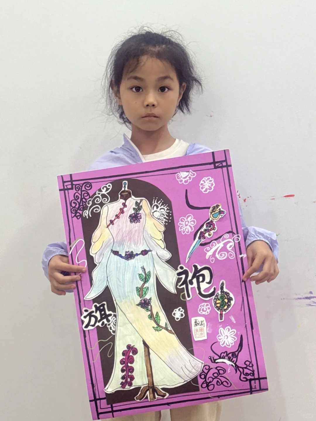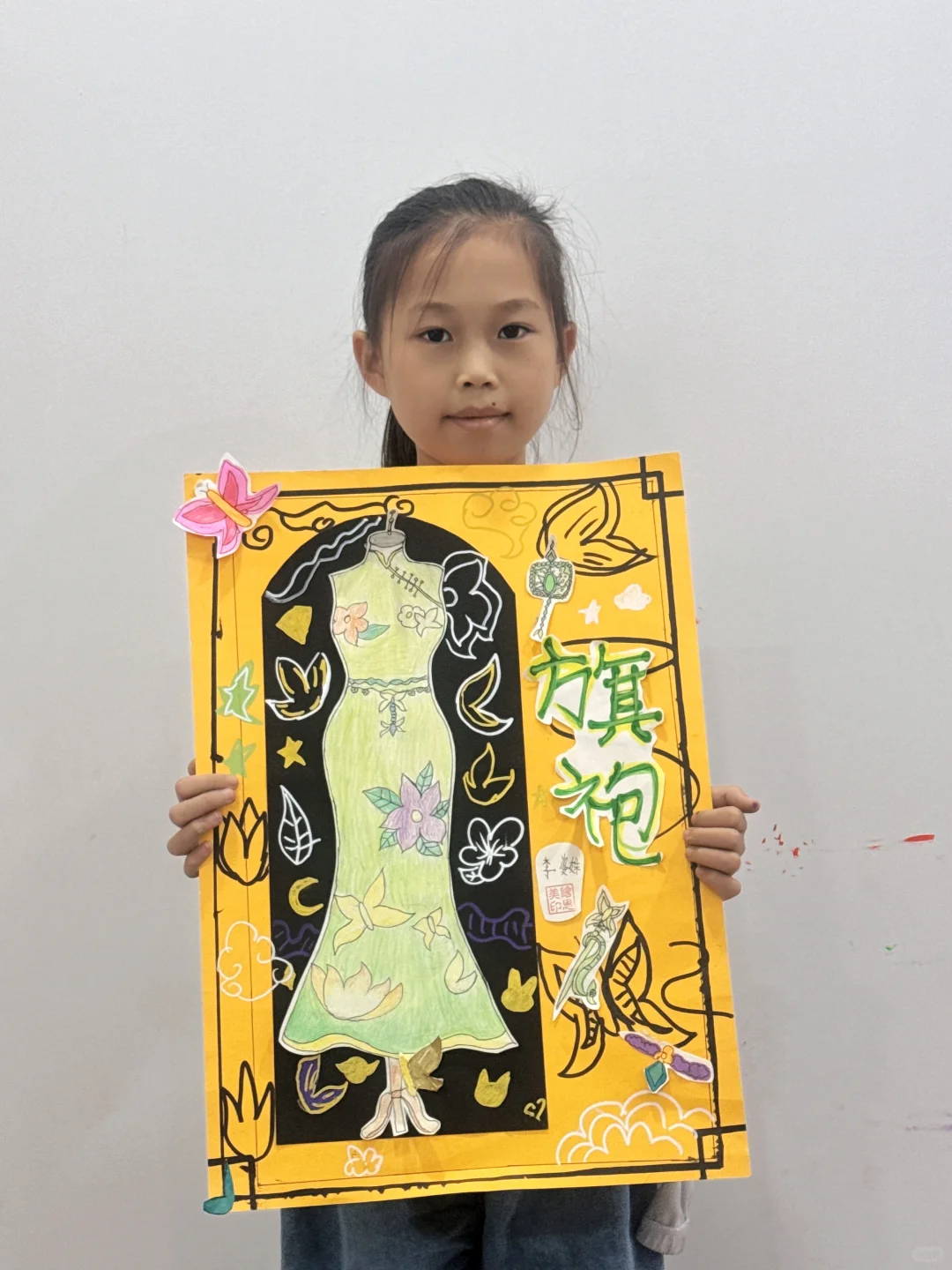 掌握旗袍的造型结构并学会绘画,结合拼贴元素进行绘画创作。