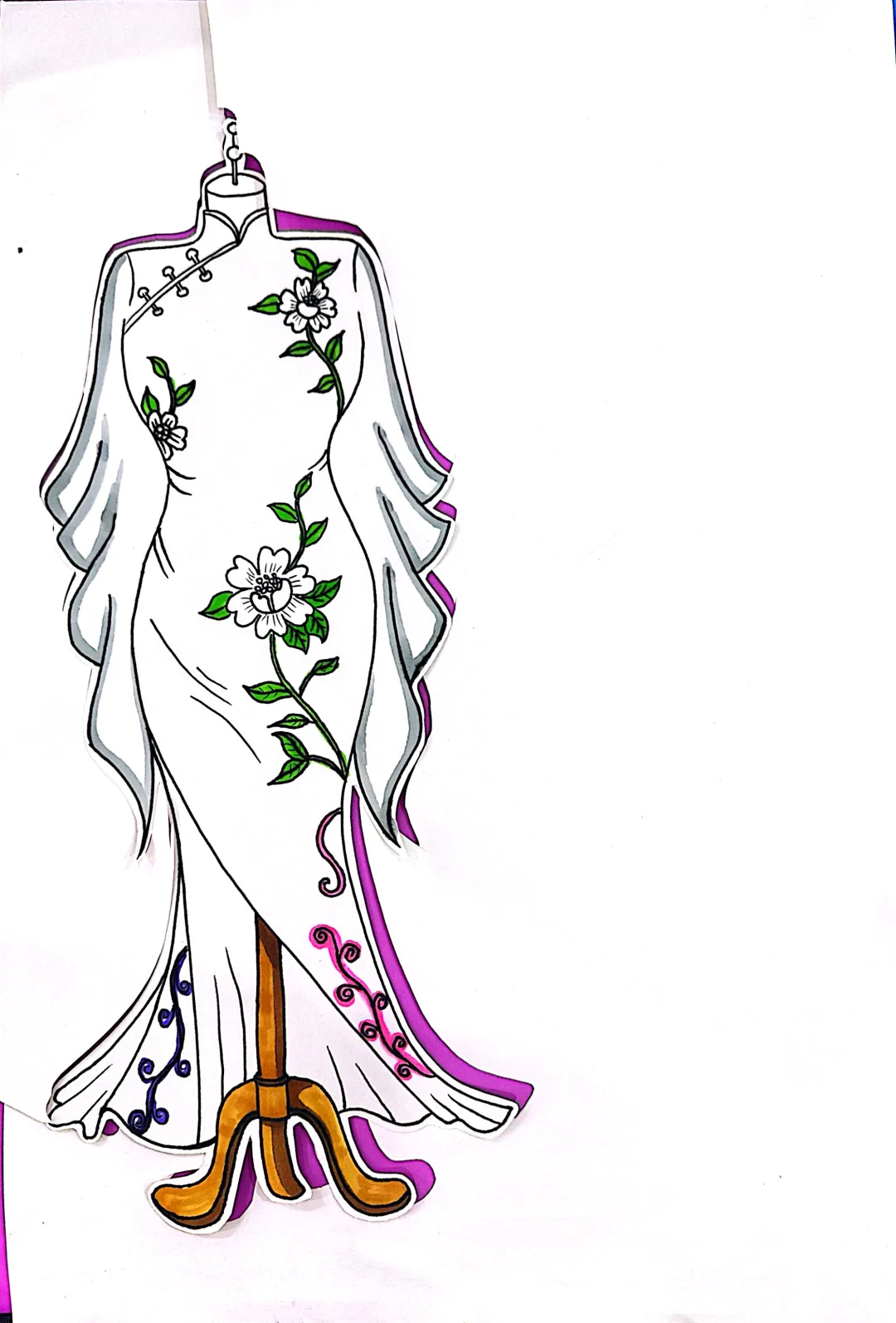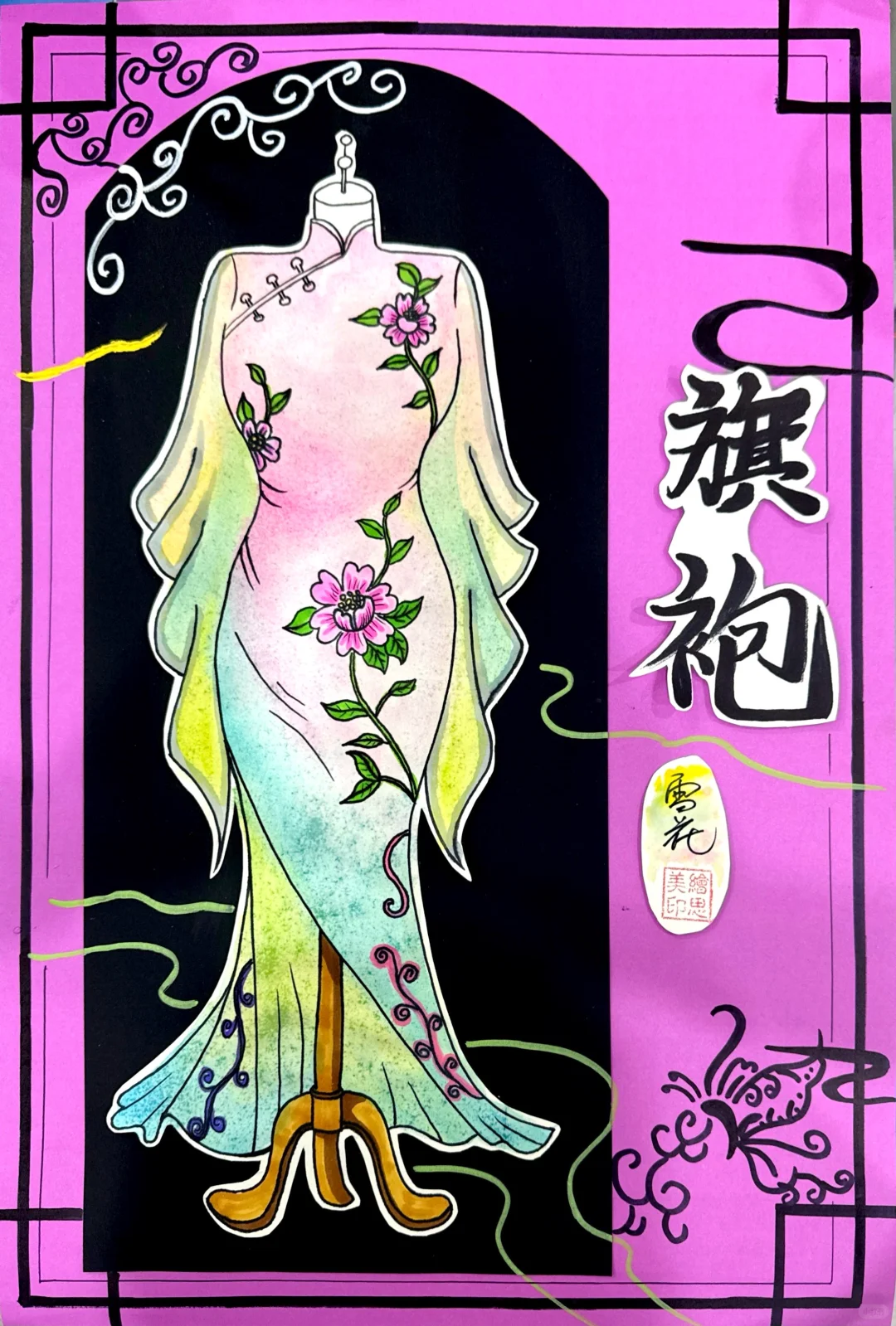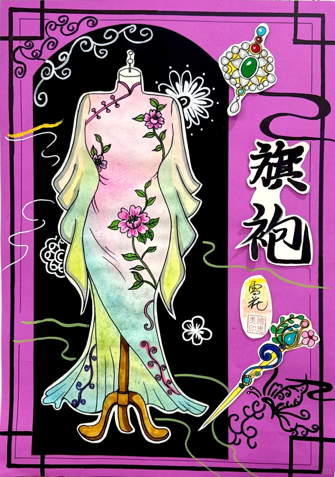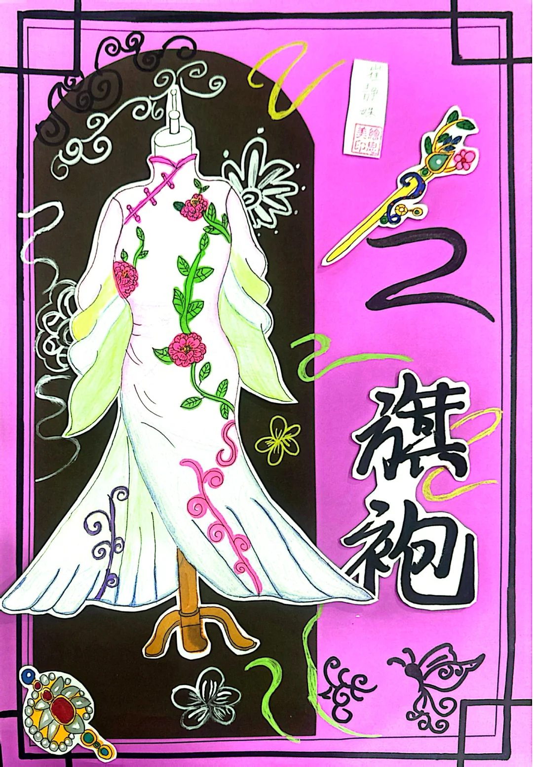 2.学习了有关旗袍的百科,欣赏了精美的旗袍图片,对此有基本的了解,并巧妙的运用相关绘画技法进行绘画创作。