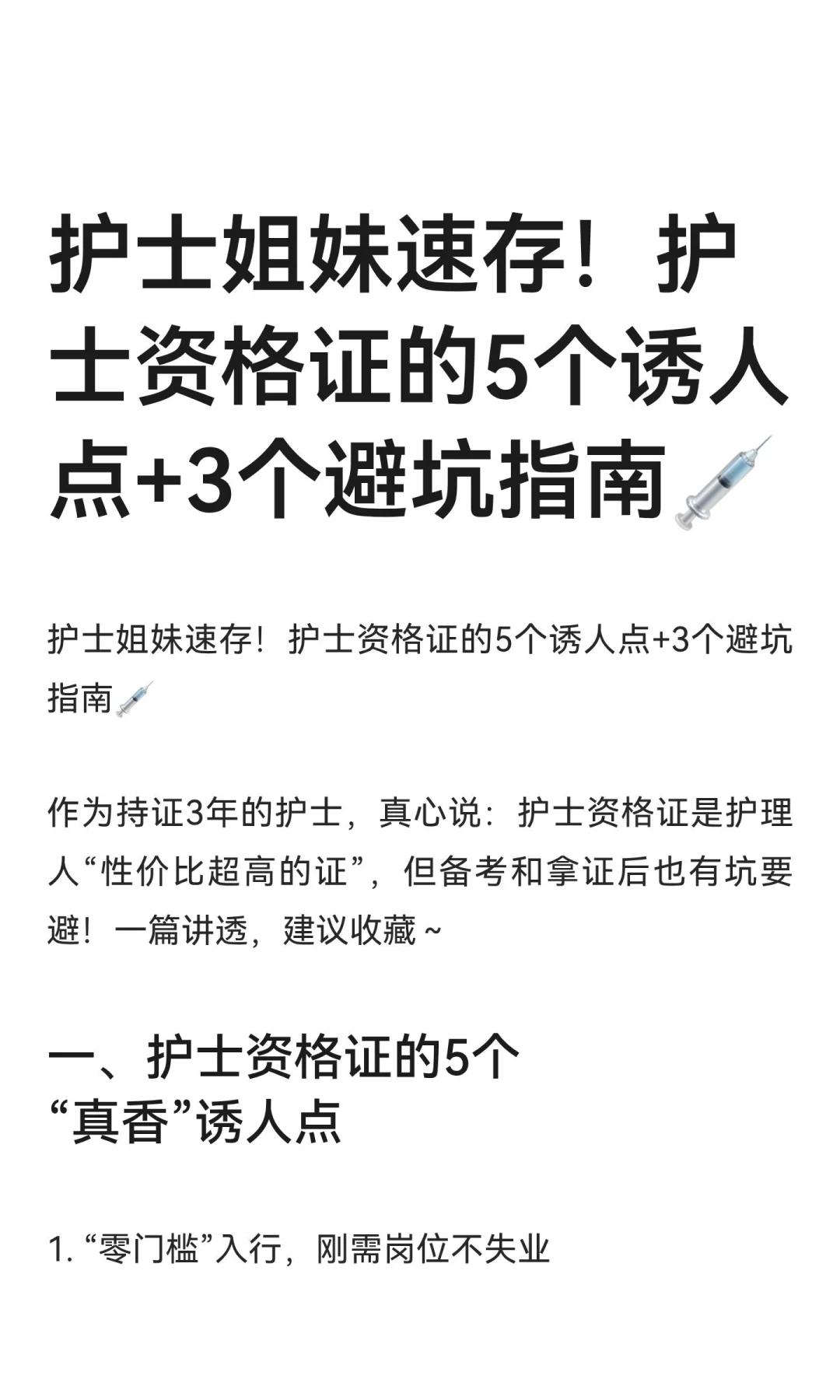 护士姐妹速存!护士资格证的5个诱人点+3个