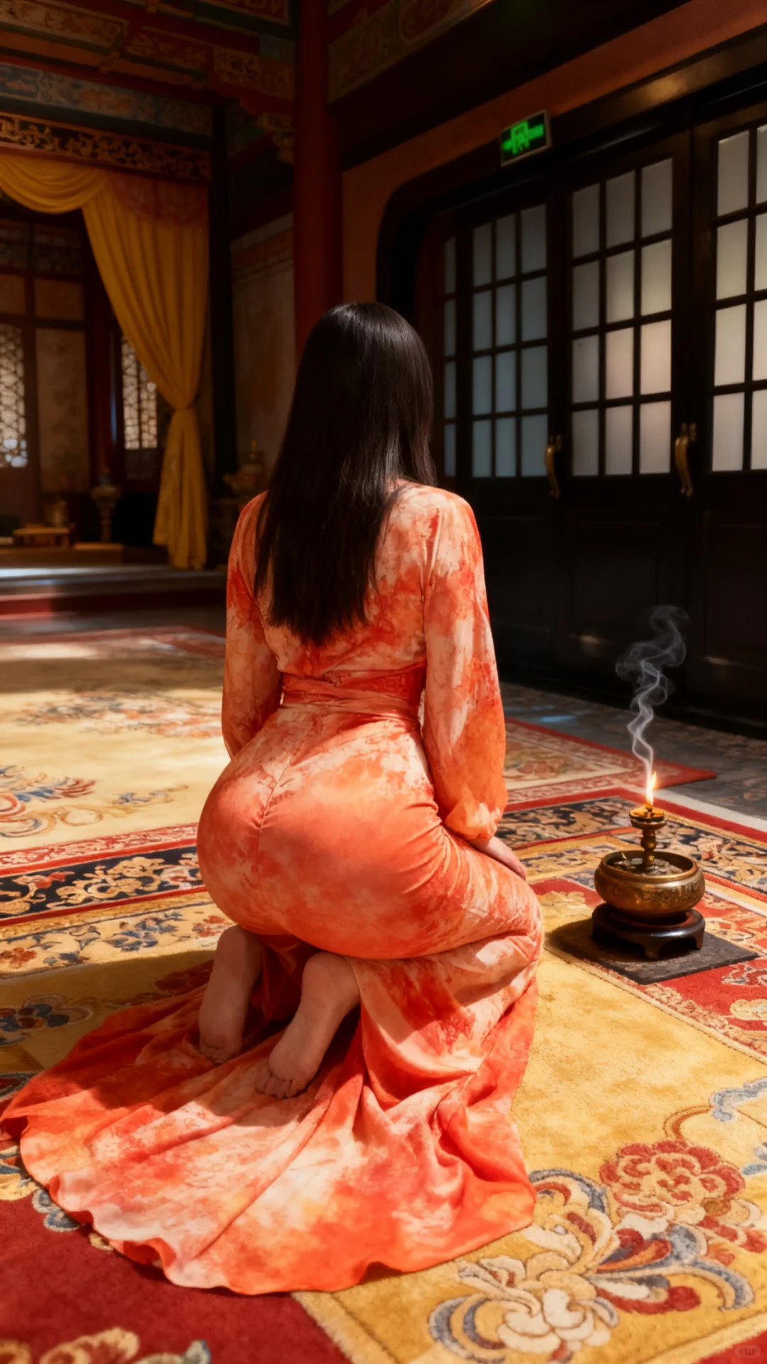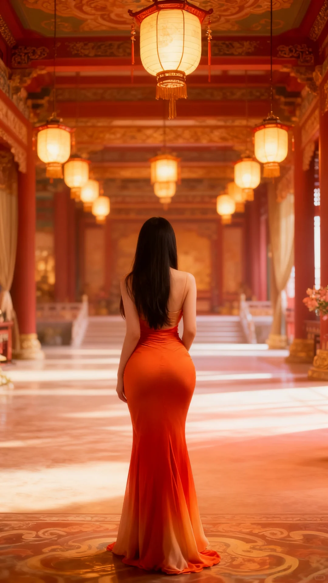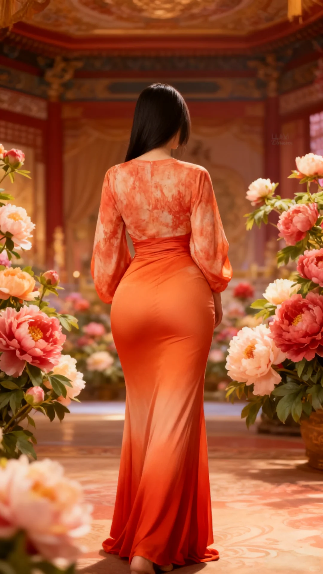 梦回唐朝,一抹艳丽的橙色在宫殿大厅中悄然绽放。她身穿一袭长裙,鲜亮的橙色由肩部渐变至裙摆,宛如夕阳余晖,温暖而迷人。乌黑的长发如瀑布般披散在背后,随着微风轻拂,散发出淡淡的芳香。露背的设计恰到好处地展现出她优雅的颈线与柔美的背影,既性感又不失高贵。华丽的宫殿装饰映衬出她的身影,金碧辉煌的琉璃瓦、雕刻精美的柱子,仿佛带人穿越时空,回到那个繁华盛世的唐朝。她静静伫立,似在思索古老的诗篇,又似在感受宫廷的繁华与宁静。那一抹橙色在金光中熠熠生辉,仿佛是唐朝盛世的象征,既热烈又典雅。她的背影,定格在那一瞬间的永恒,诉说着古韵今承的美丽传说。穿越千年,她的身影依旧迷人,宛如一幅流动的画卷,让人心生向往,梦回那个繁华而神秘的唐朝盛世。#我的休闲时光十月激励计划 #我的休闲时光蜗居物语 #盛世需要美人点缀 #一袭优雅醉了千年 #唯美古风带你一起穿越 #穿越时空的浪漫 #倾国倾城的女孩 #古典 #妩媚勾魂风情万种 #生活美学