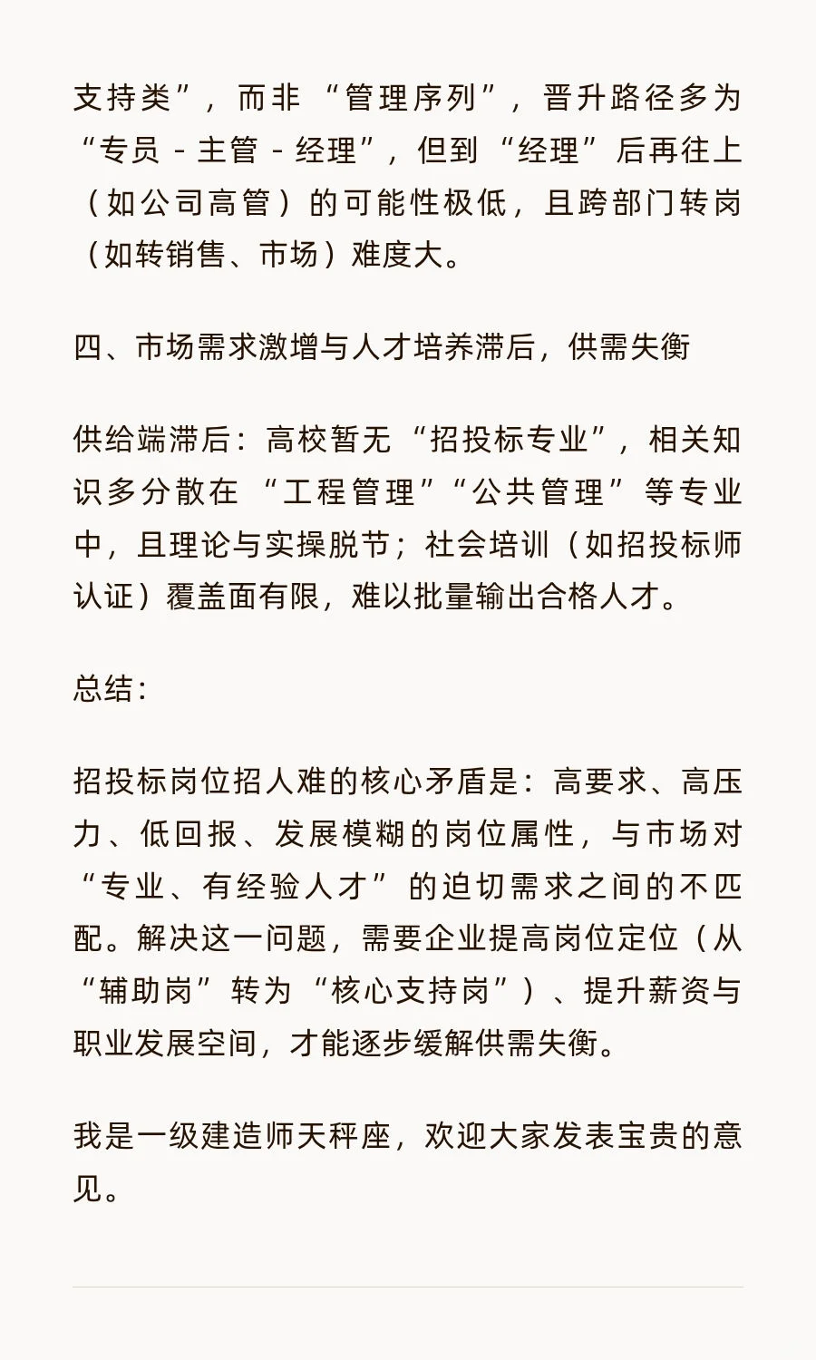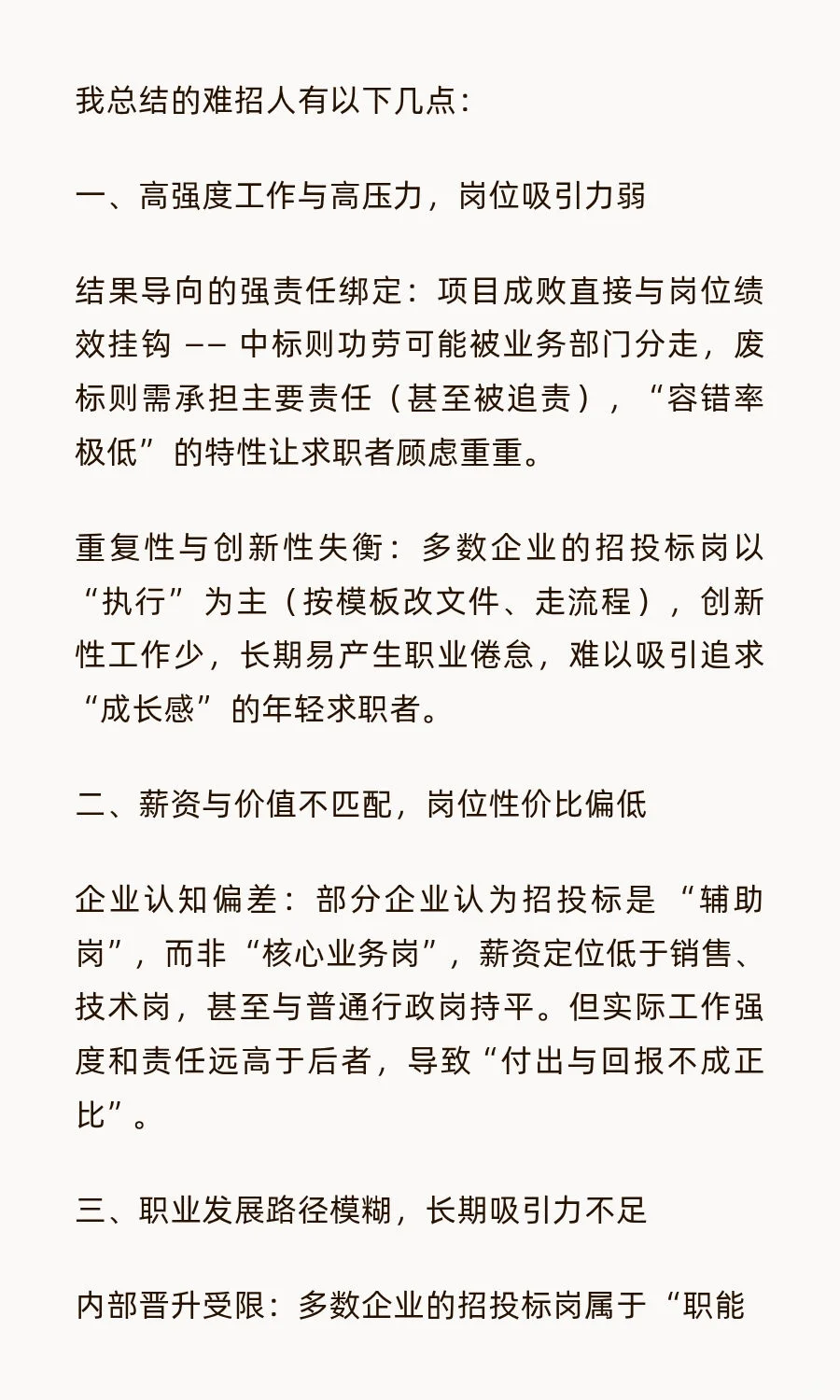 为什么招投标岗位很难招人