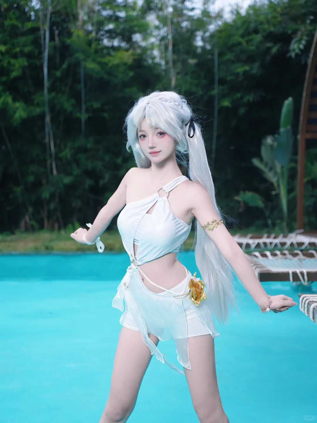 总算赶在最后一个30度天气拍了泳装。。这个地方拍泳装真不错景都挺好,虽然整体不大,但小景都很好看,可能是已经入秋的原因,水池没什么水了有点可惜。模特:兔兔 摄影:本人#泳池拍照挑战