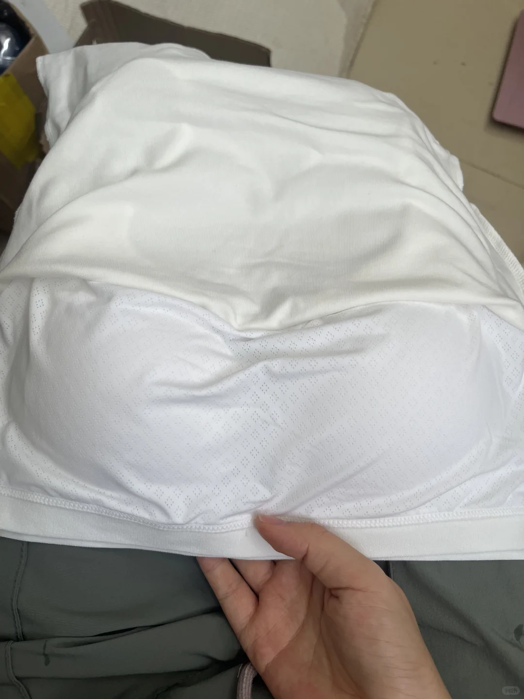 大家最担心的透胸垫的问题,我在自然光下,强光下,远拍近拍都有拍动图,其实真的不透,侧边还会有印迹,之前说过这个问题,解决方法就是,穿的时候注意把胸调整一下确保侧边的罩杯边缘在乳房下面,就真的不是很明显了