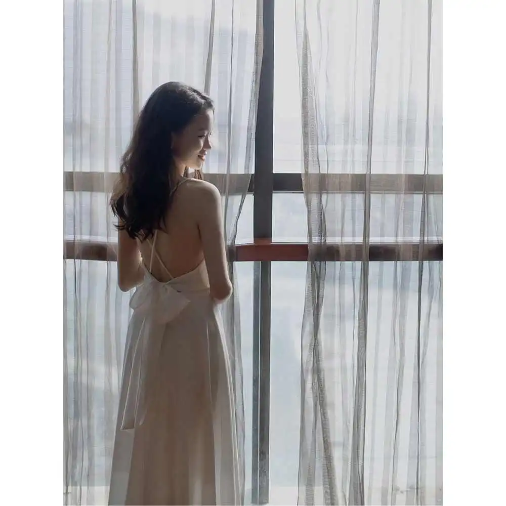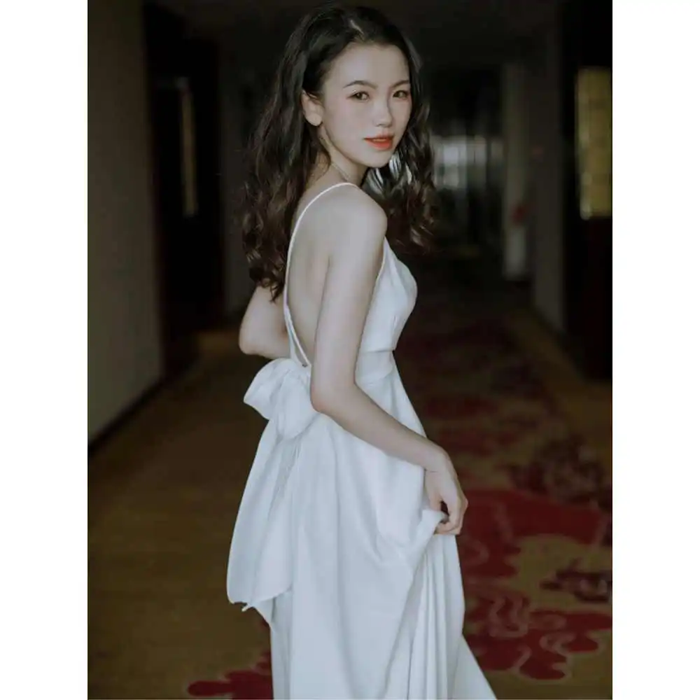 婚礼晨袍女新娘礼服结婚拍照吊带连衣裙露背