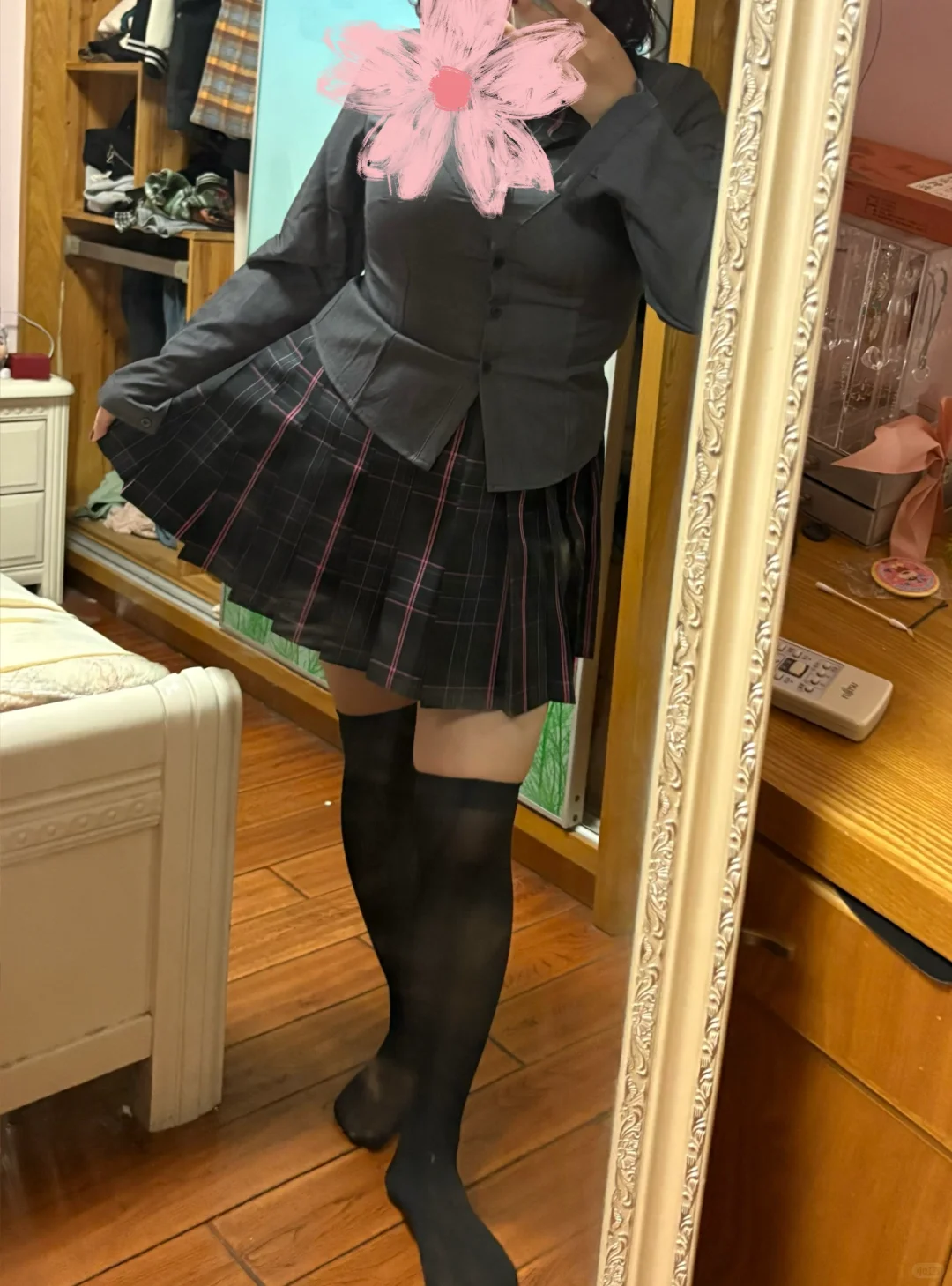 新买了一套jk加过膝袜 灰粉配色会显得格外的漂亮可爱