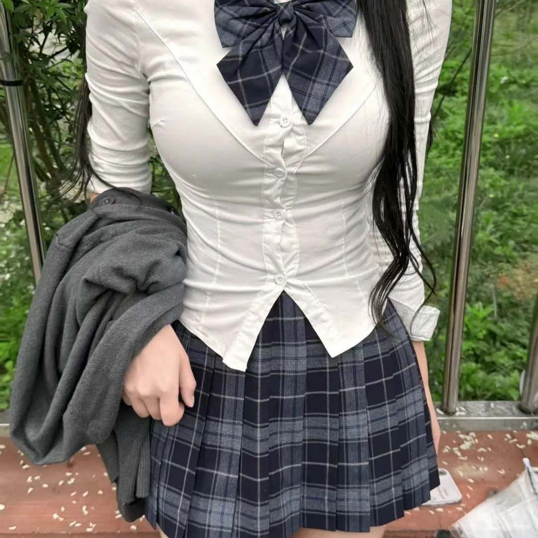 宝子们,这套JK穿搭真的是经典又吸睛~简约的白色长袖衬衫,干净又清爽,搭配上黑色的小领结,瞬间增添了几分俏皮感🎀