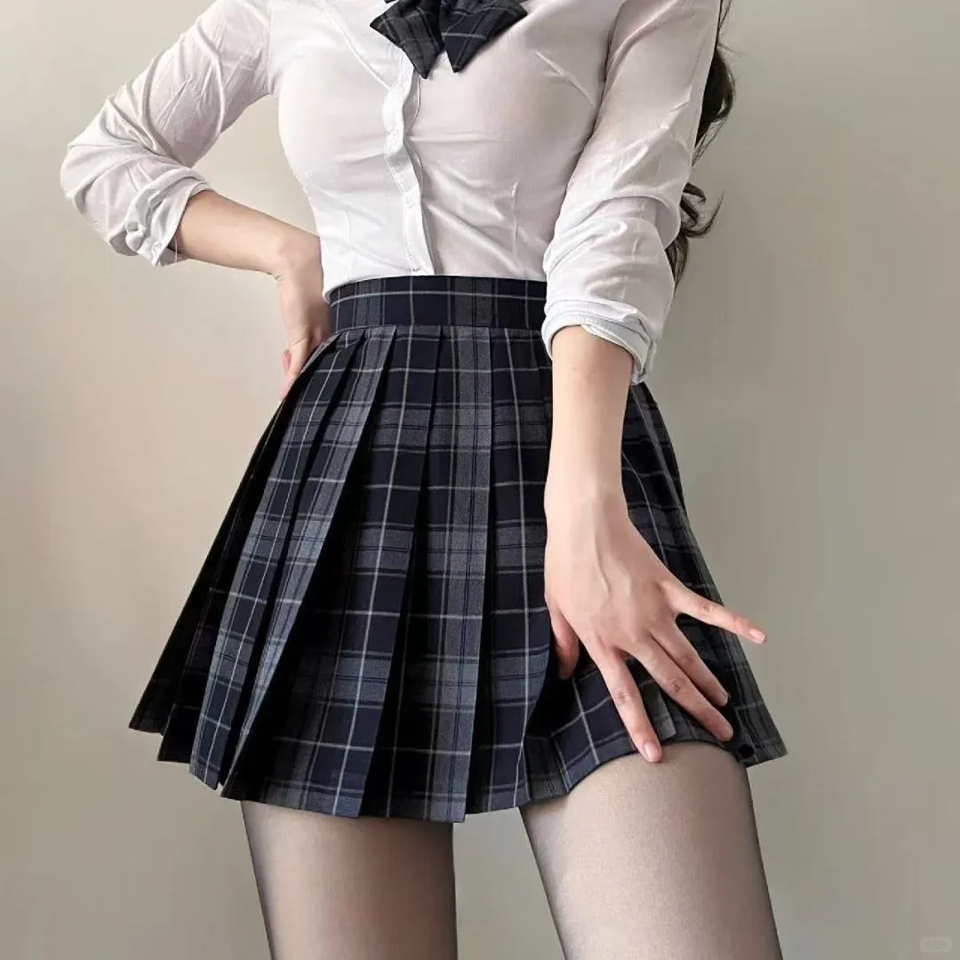 下身的深色格纹百褶裙,褶子锋利,走动间灵动飘逸。再配上若隐若现的黑丝,甜酷氛围直接拉满。不管是去校园还是逛街,穿上它,你就是人群中亮眼的存在✨