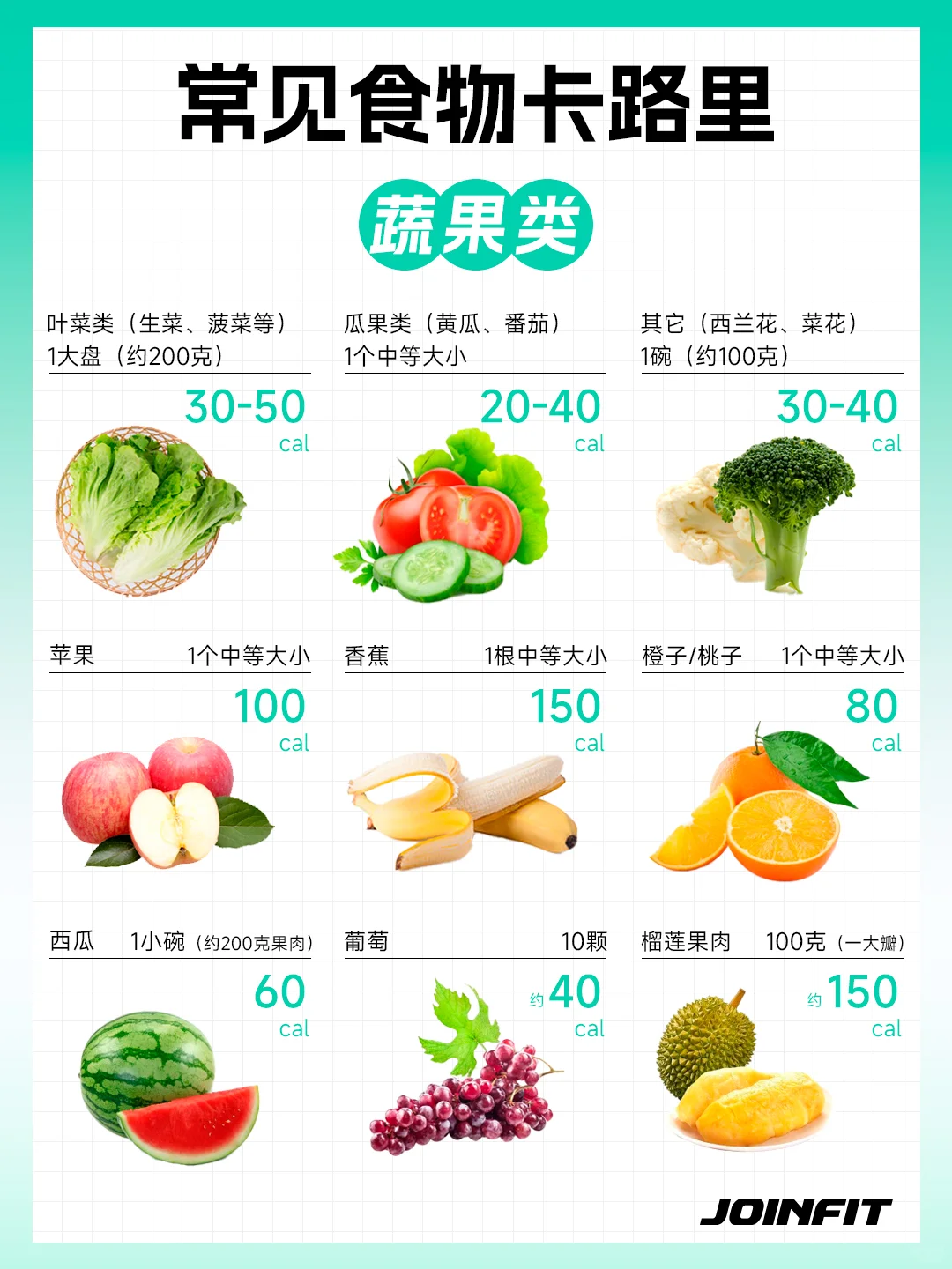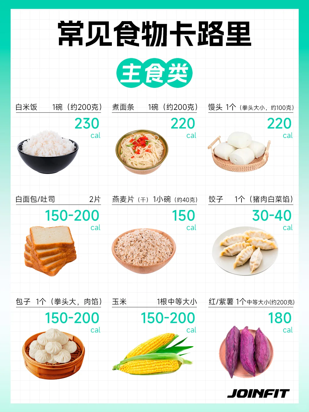 小JO把最常见的食物热量都给你整理好了,直接做成清晰表格!