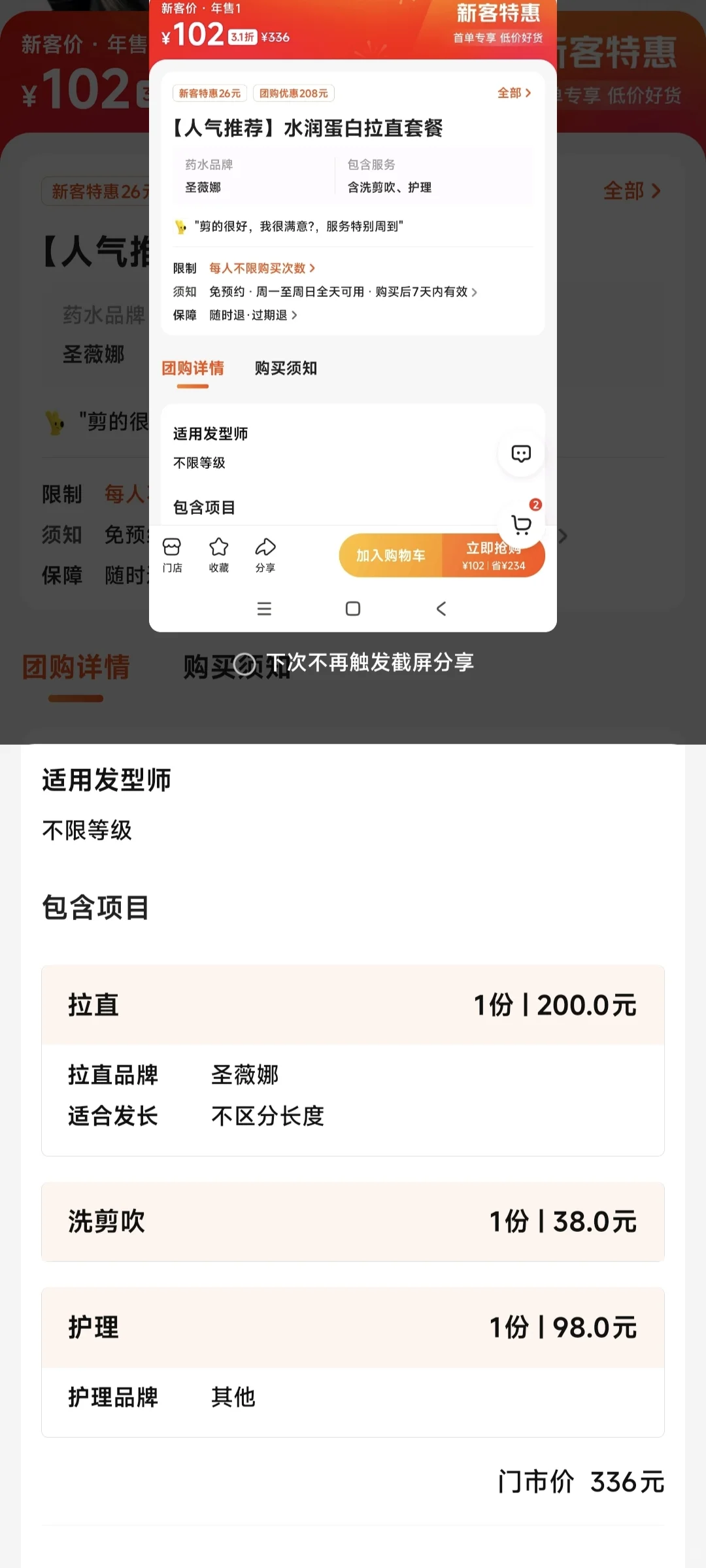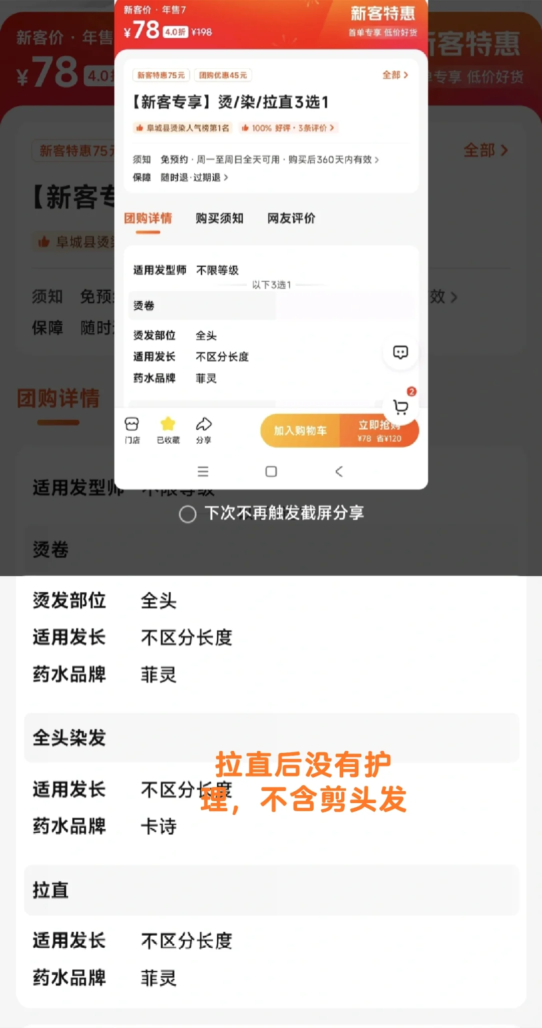 第一个是菲灵药水,那个套餐不含剪发,我头发长度还行可能有点厚,剪不剪都行;不含拉直后的护理,我不知道这个不护理行不行