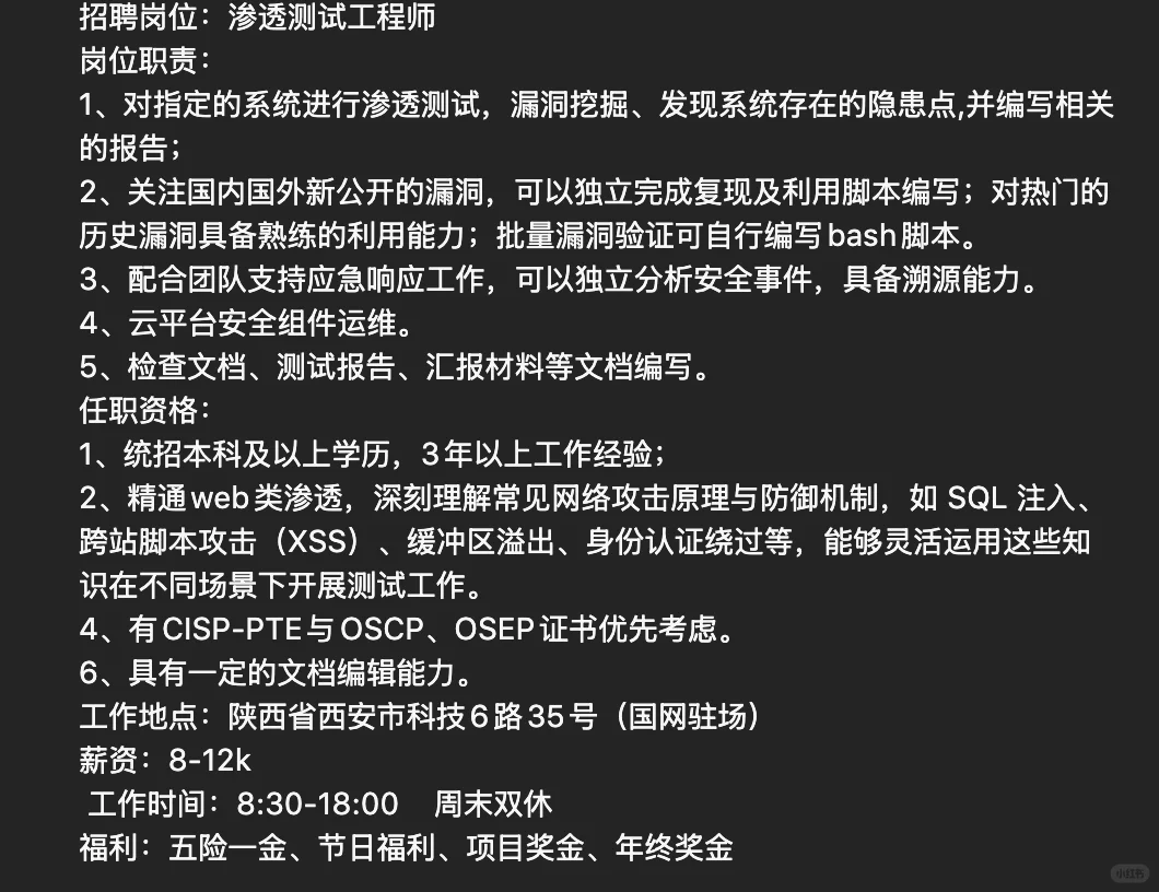 #网络安全 #信息安全 #渗透测试 #电网 #国企招聘 #就业前景广阔 #招聘 #岗位 #就业 #安全狮