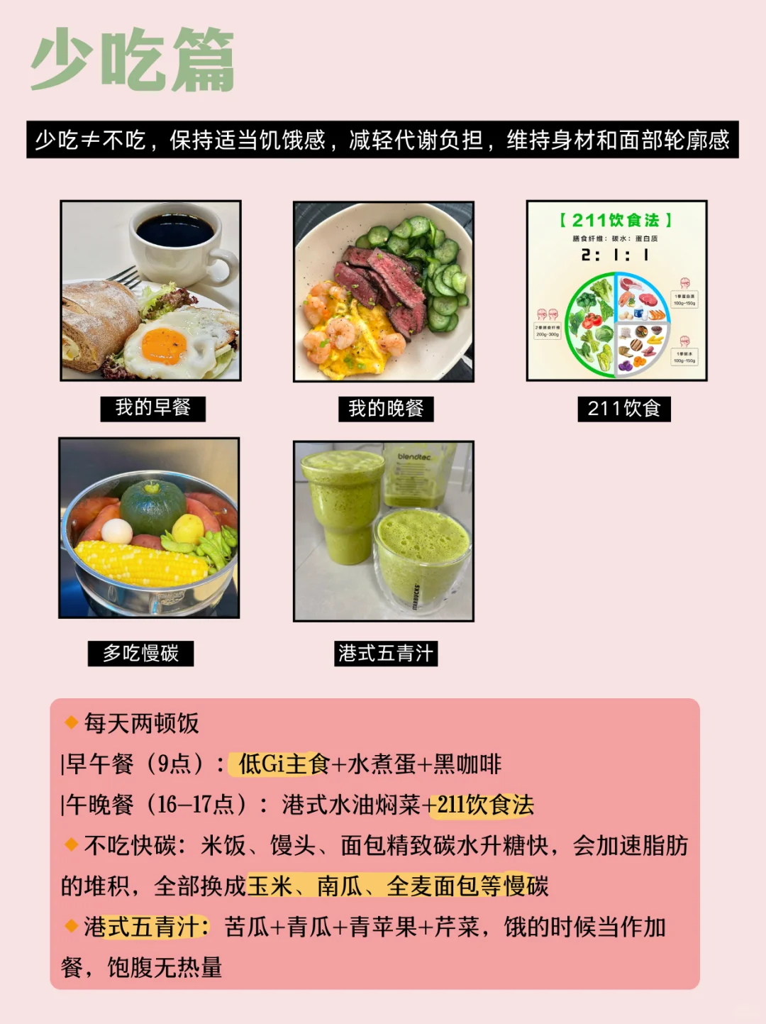 少吃≠不吃,保持适当饥饿感,减轻代谢负担,维持身材和面部轮廓感