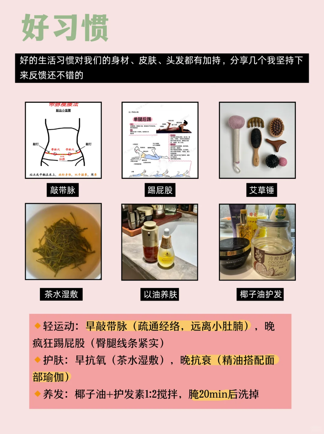 🔸轻运动:早敲带脉(疏通经络,远离小肚腩),晚疯狂踢屁股(臀腿线条紧实)