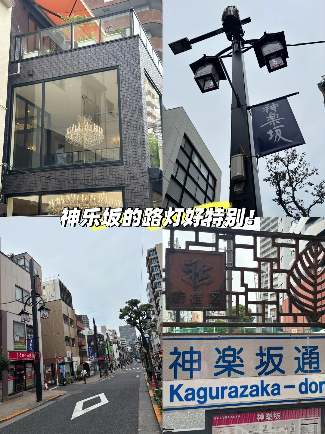 ⭐️图6️⃣ 从甜品店出来就是神乐坂的商业街主路啦,跟着江户时代复古的路灯慢慢走慢慢👀 松弛感~