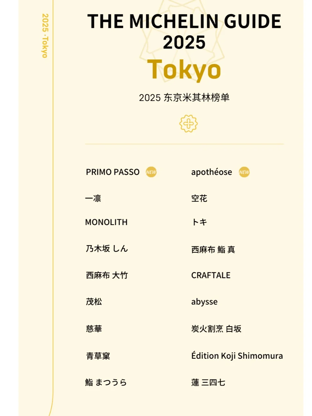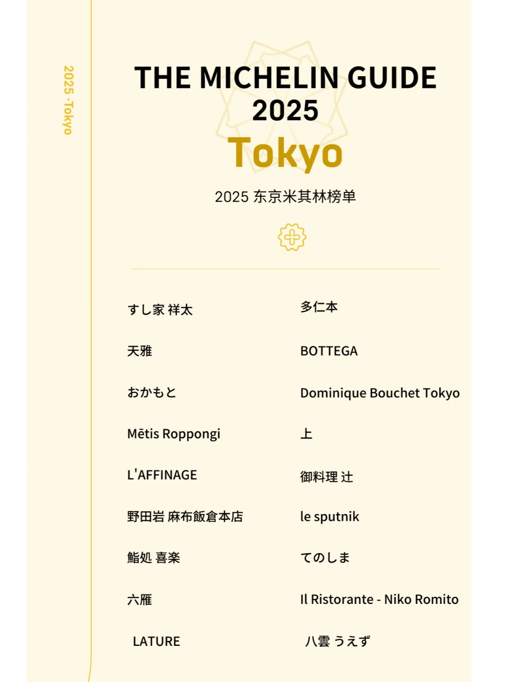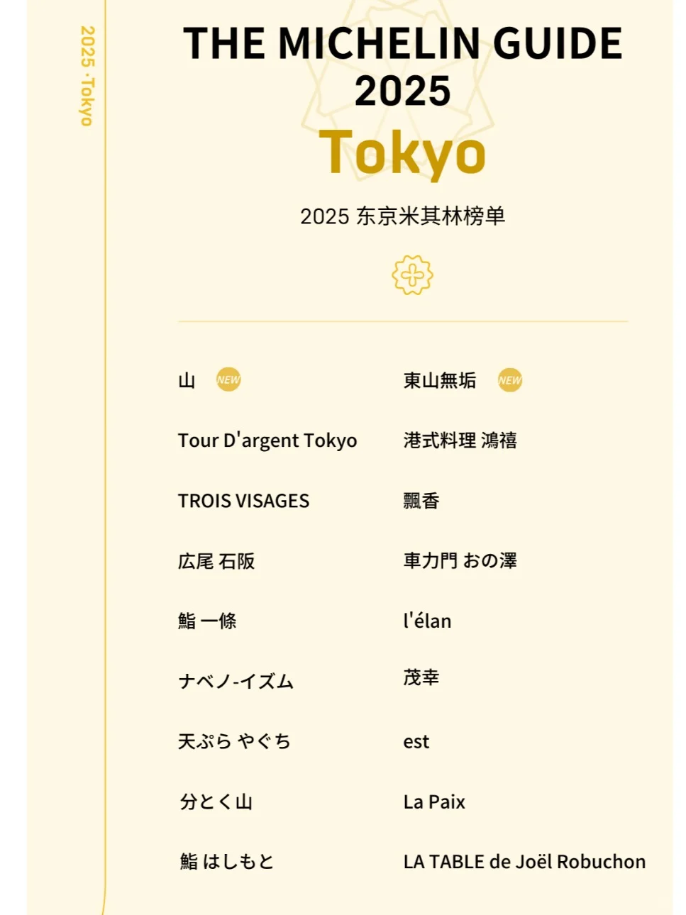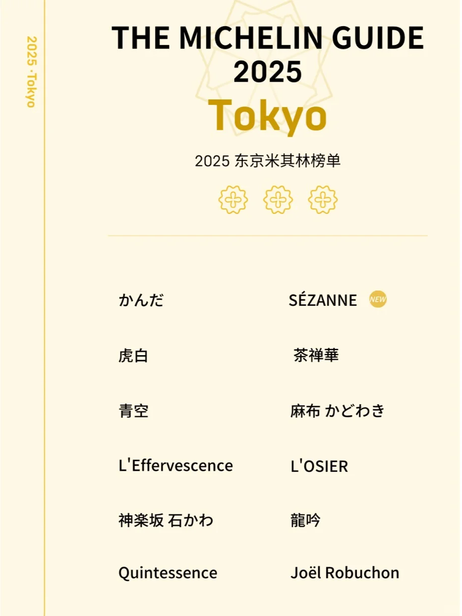 🎈 亲爱的小伙伴们,东京米其林指南2025年榜单新鲜出炉啦!作为全球米其林星级餐厅最多的城市,东京这次又给我们带来了哪些惊喜呢?今年的榜单变化剧烈,有1家餐厅荣升三星,还有多家新上榜的餐厅,让我们一起来看看吧!👀