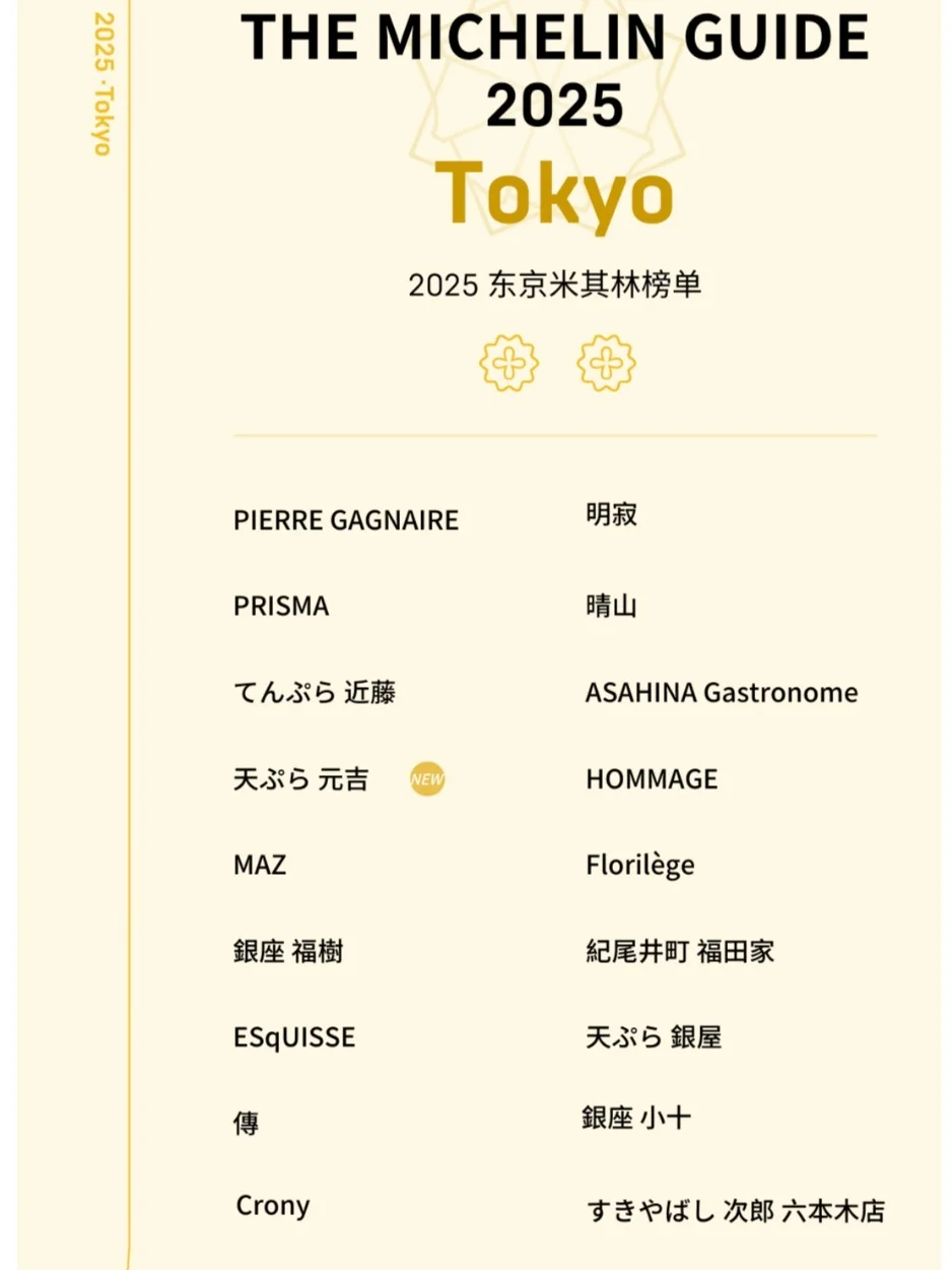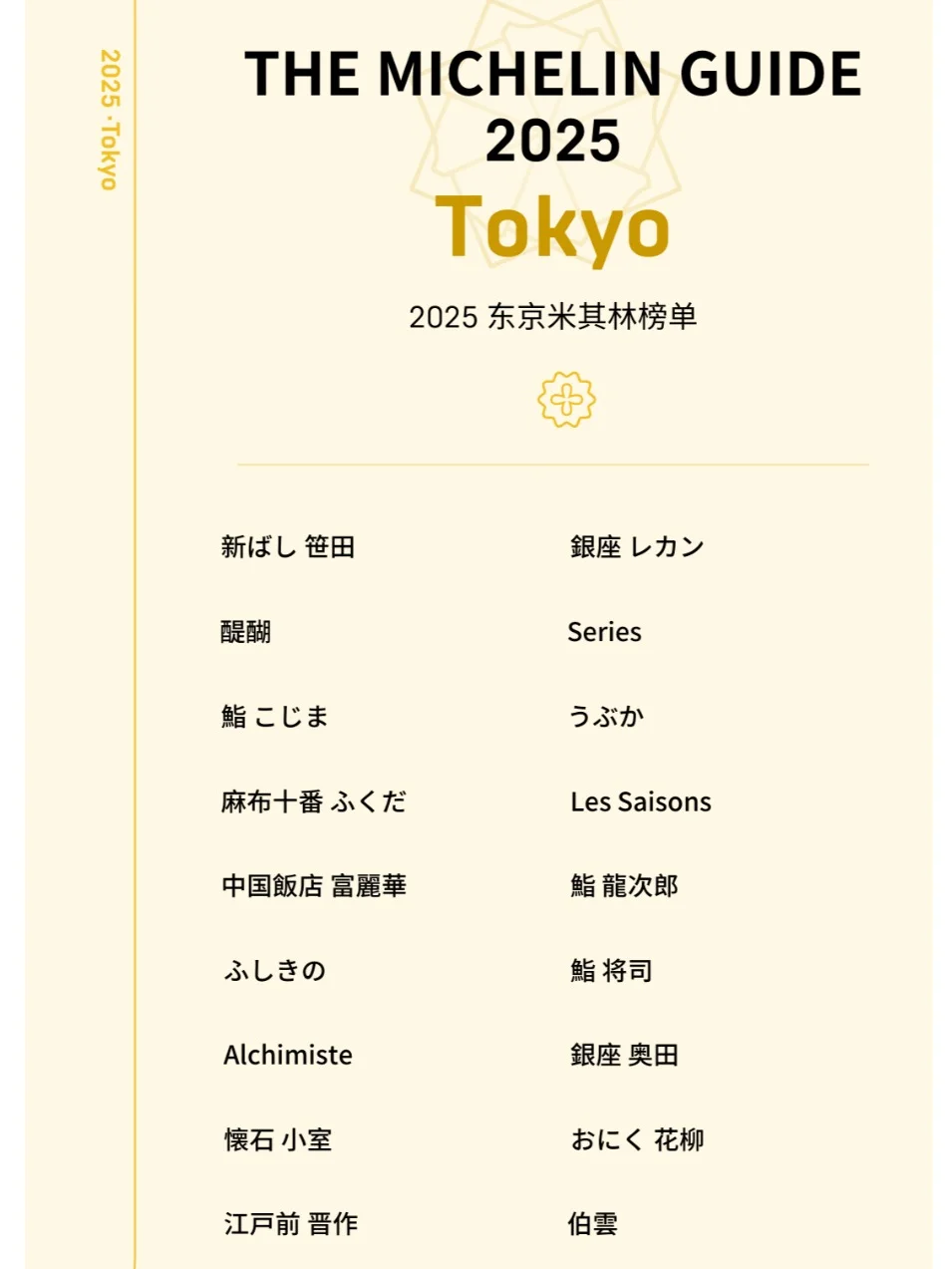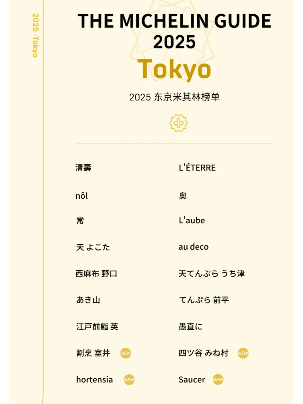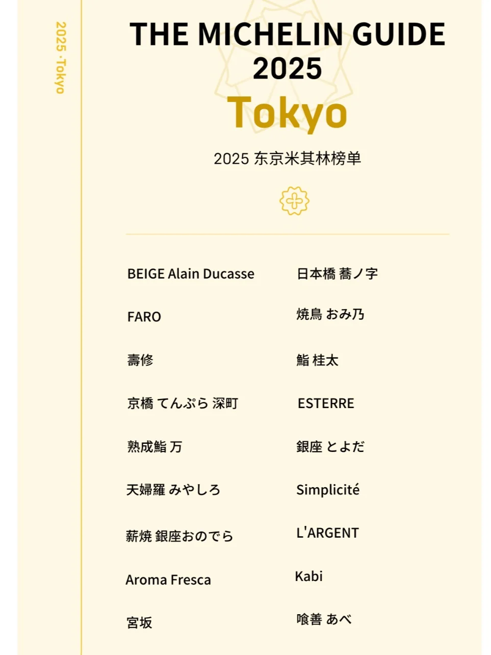 🎈 亲爱的小伙伴们,东京米其林指南2025年榜单新鲜出炉啦!作为全球米其林星级餐厅最多的城市,东京这次又给我们带来了哪些惊喜呢?今年的榜单变化剧烈,有1家餐厅荣升三星,还有多家新上榜的餐厅,让我们一起来看看吧!👀