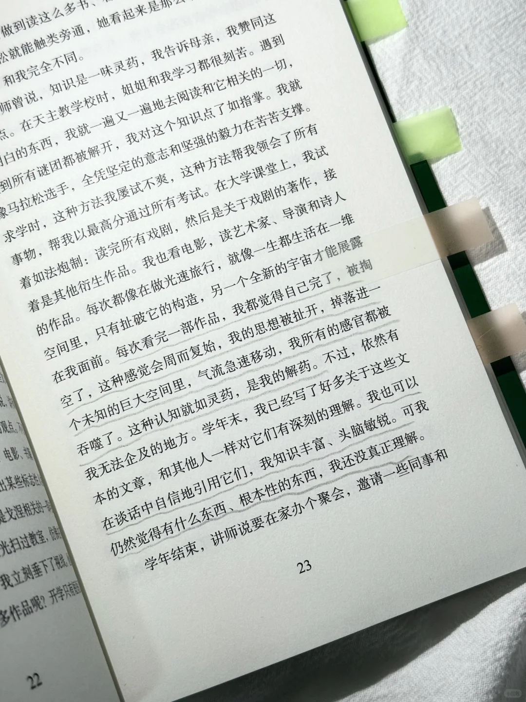 很简短的一本书,认真阅读一俩小时就能读完,勾画了很多被触动的文笔,她在写她,也在写我。