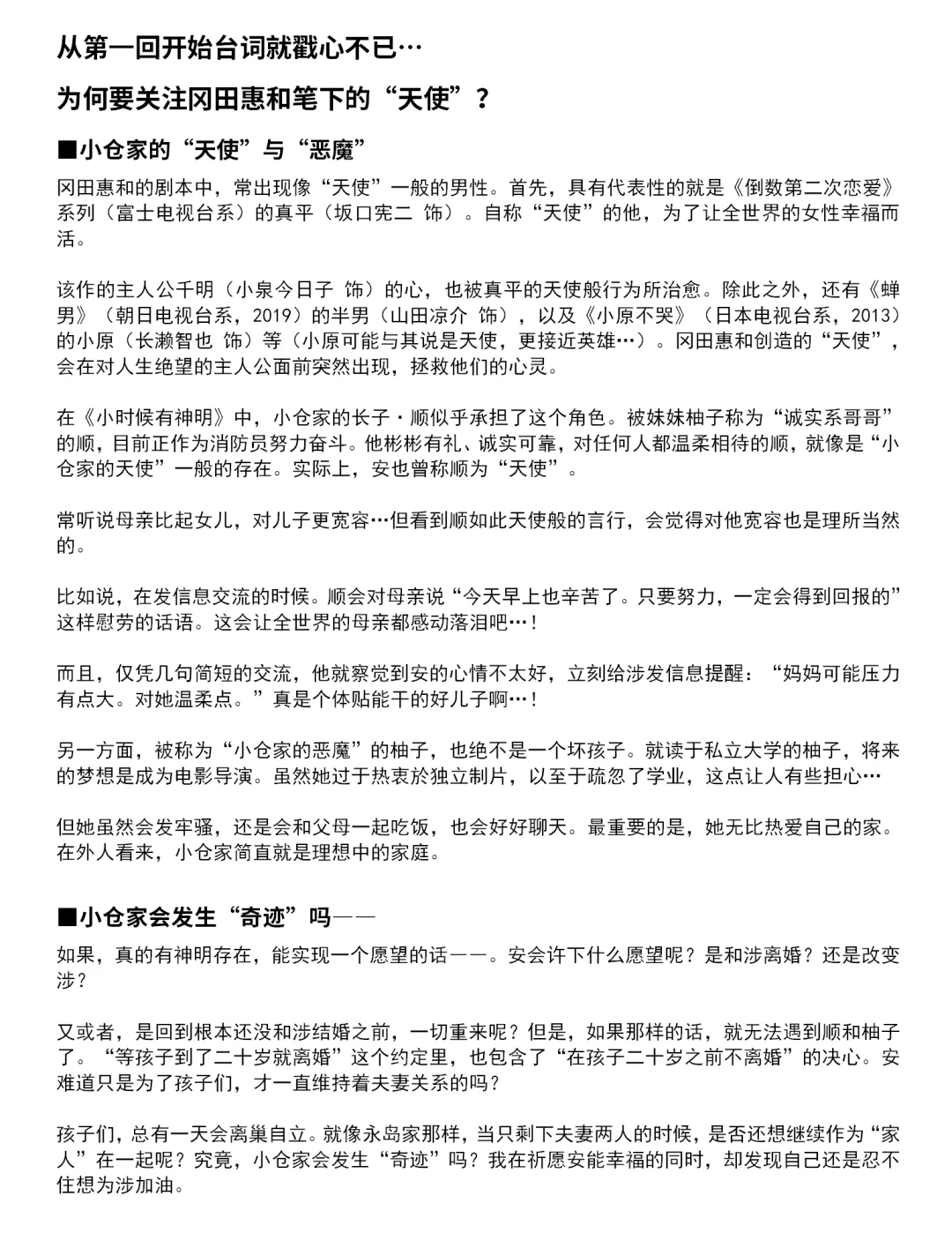 《#小时候有神明 》是凭借《#倒数第二次恋爱 》等作品为人熟知的编剧#冈田惠和 最新作。这部完全原创的作品,以育有两个孩子的小仓涉(#北村有起哉 饰)及其妻子安(#仲间由纪惠 饰)为中心,是一部幽默而温暖呈现人生百态的家庭喜剧。