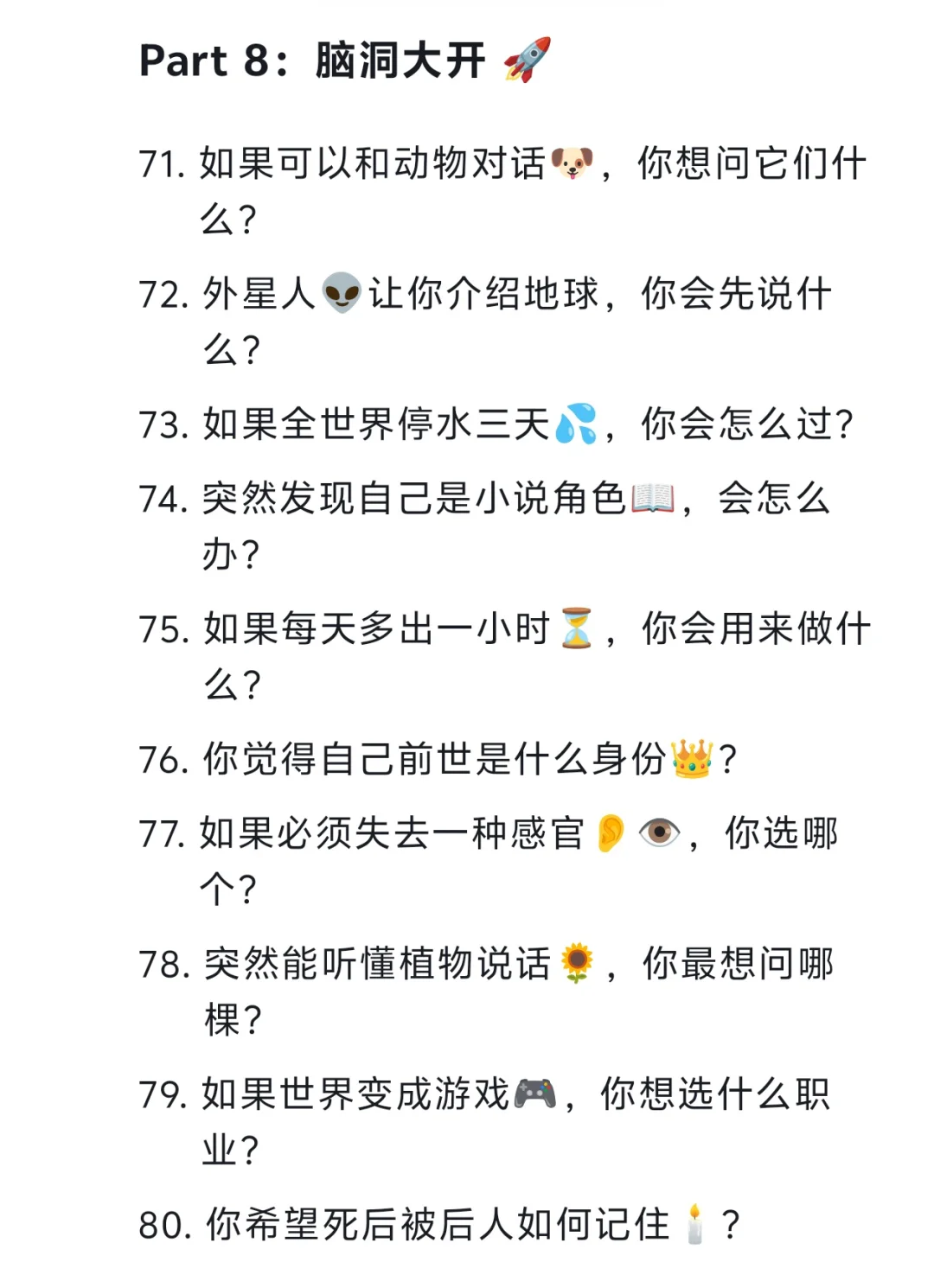 聊到TA凌晨三点不肯睡,100个直球话题清单