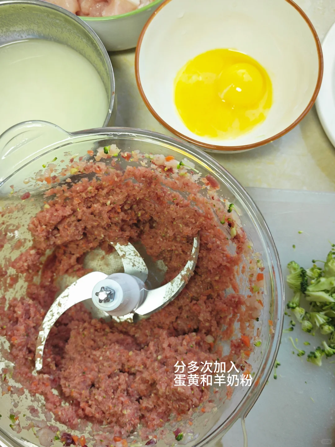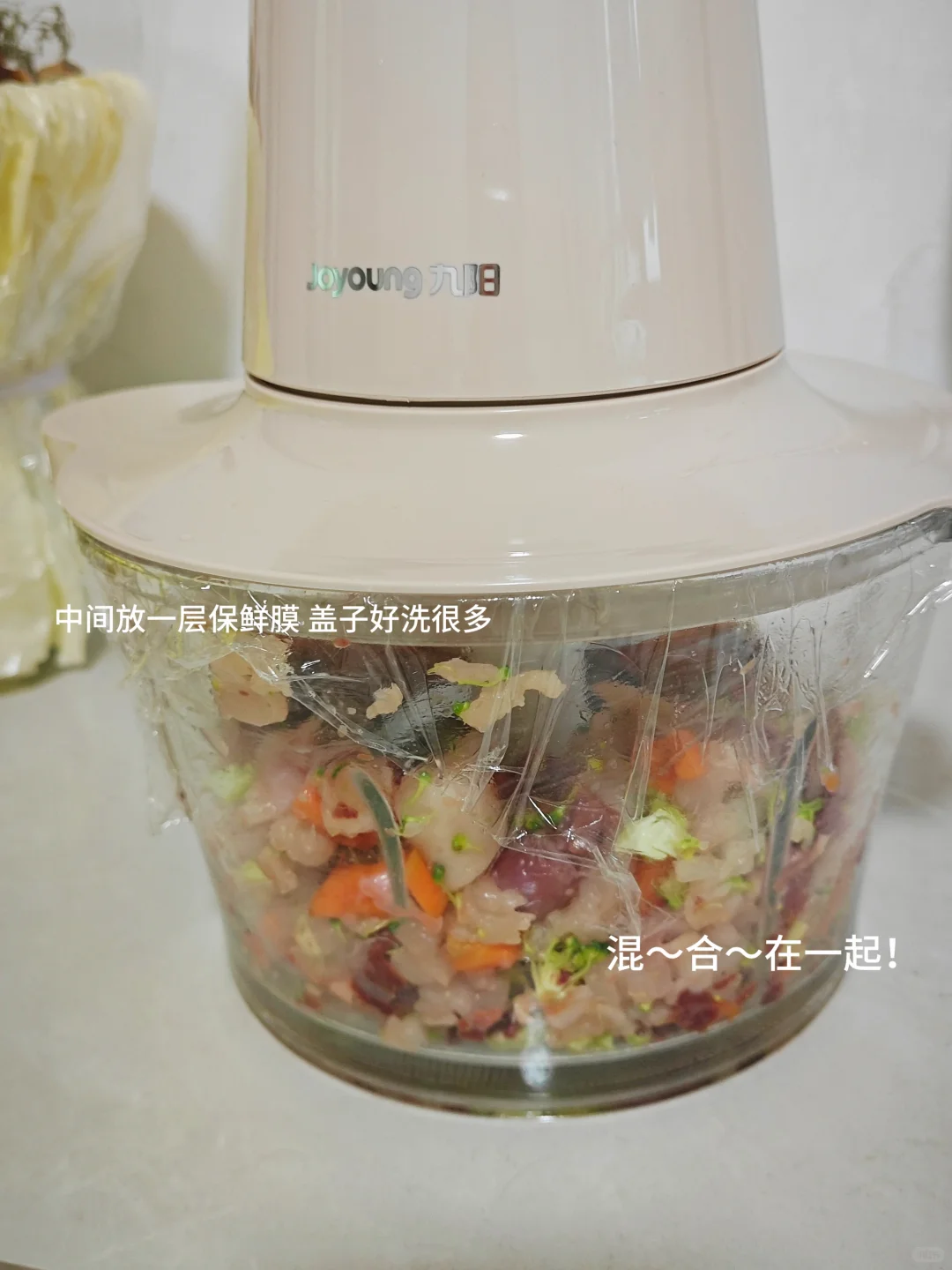 2. 把切好的所有食材放进绞肉机里,搅打成细腻的肉糜。
