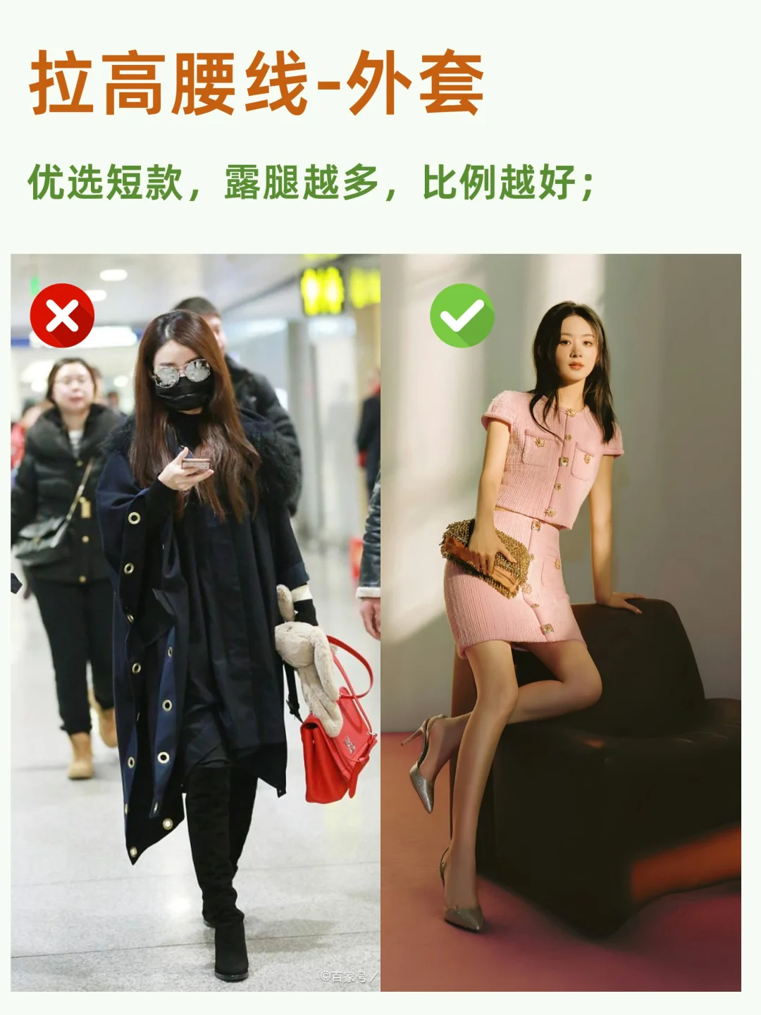 🥼外套:外套尽量选择短款,腰线越上,露腿越长,比例越好看;