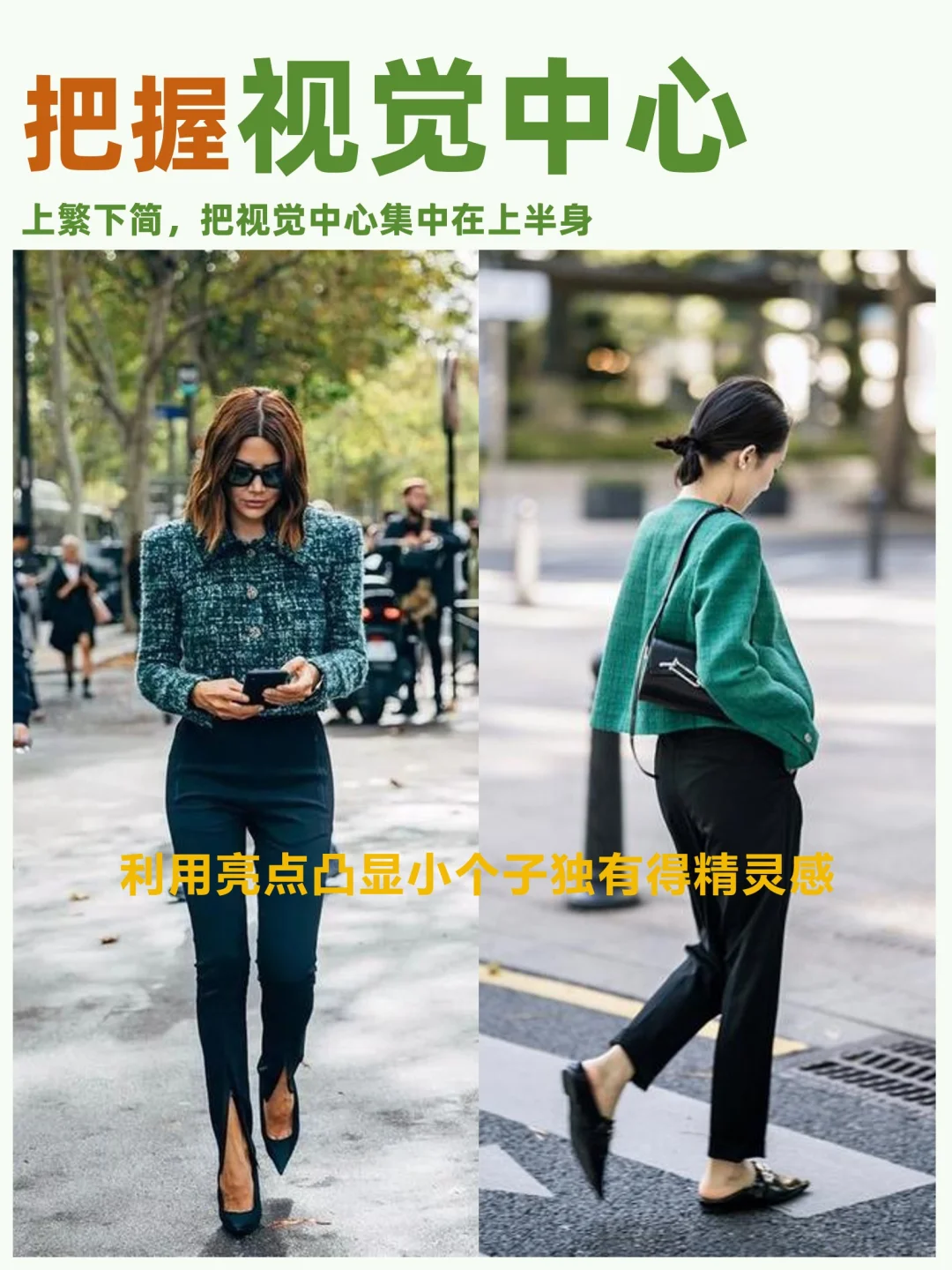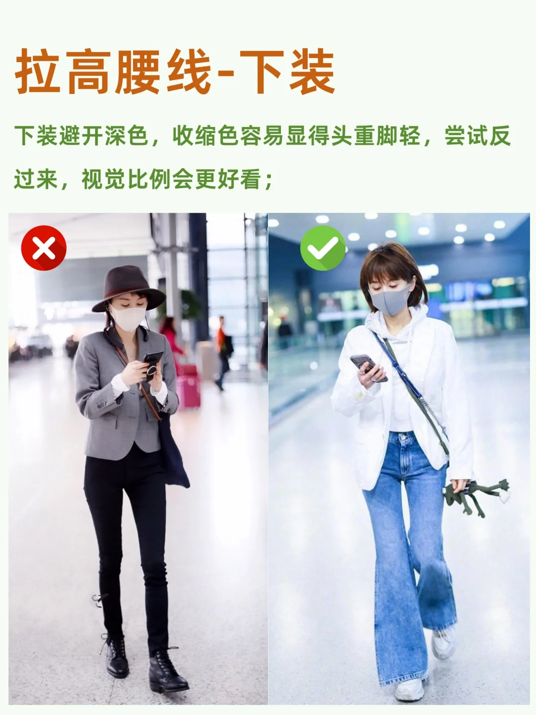 ②配饰上移:如包包👜,尽量选择包带偏短的,小个子女生背包带太长的包会拉低⬇️视觉中心;